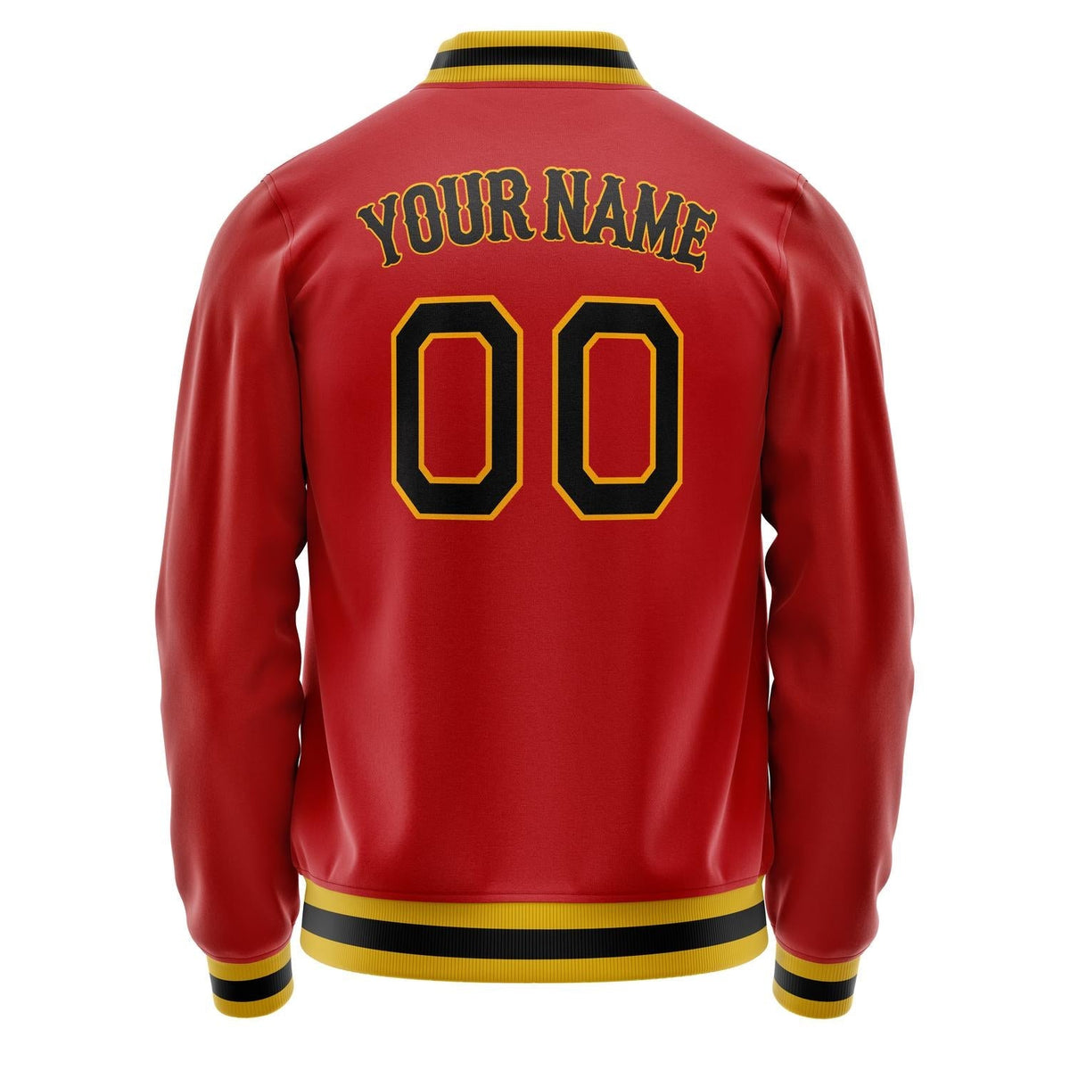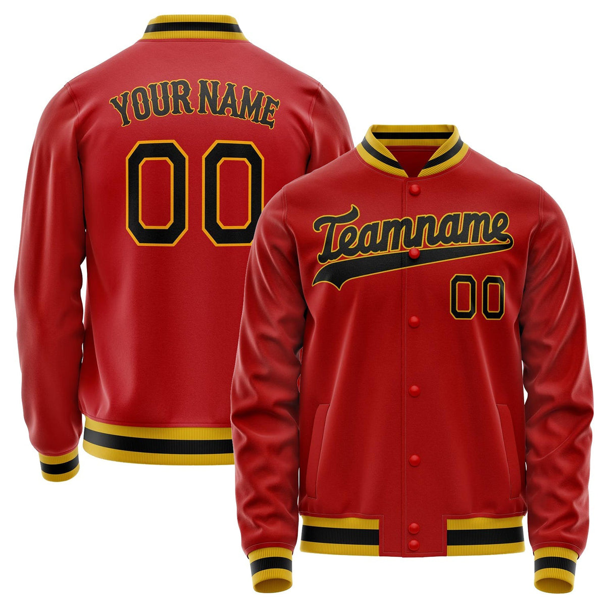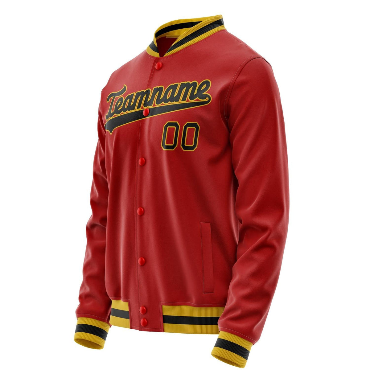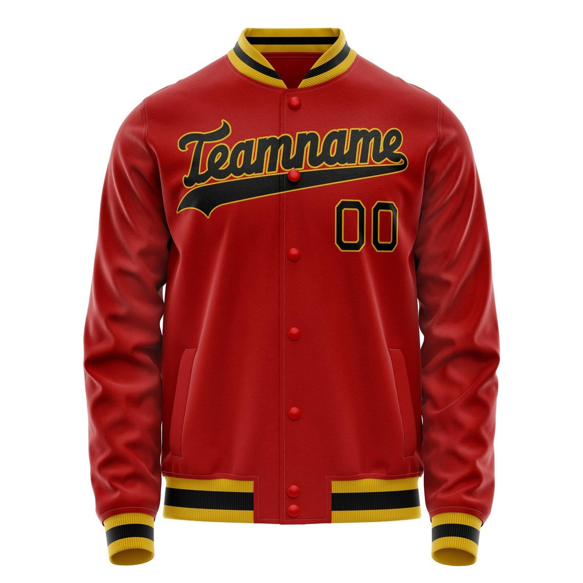 Custom Red Black Solid Color Varsity Letterman Jacket