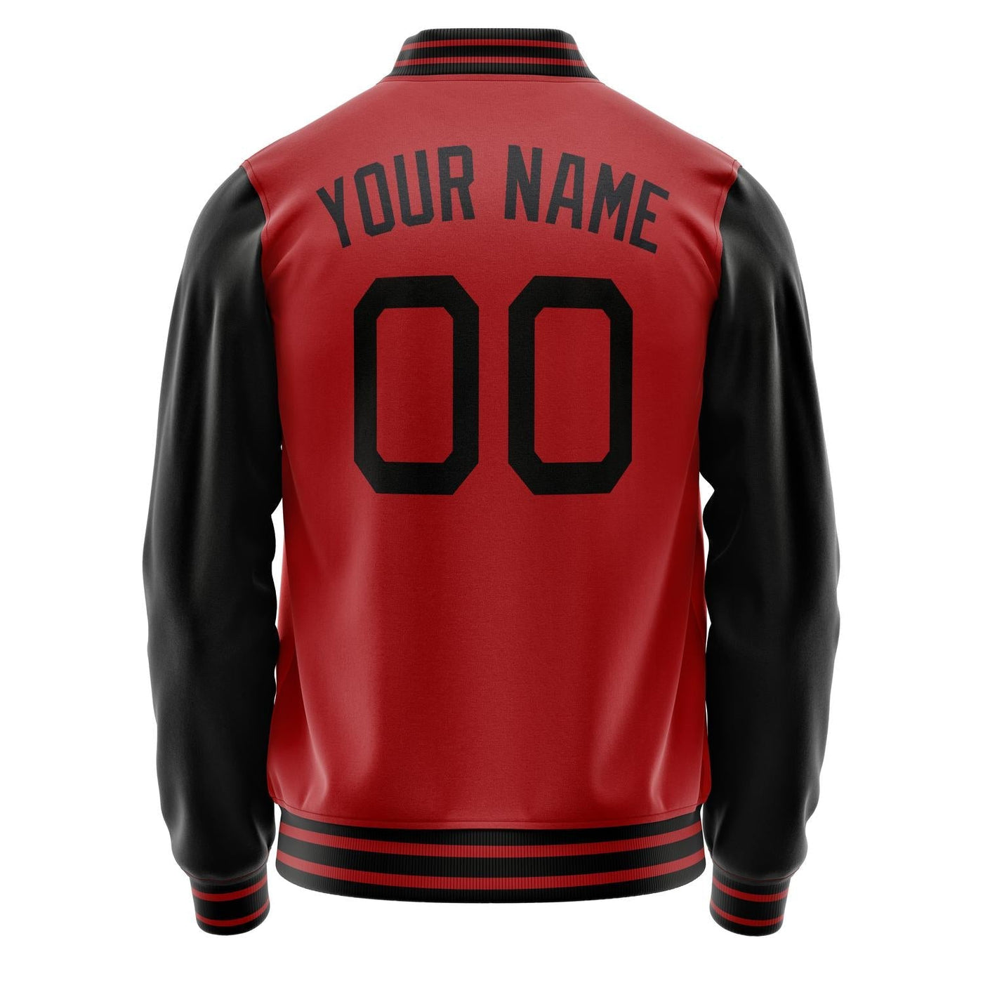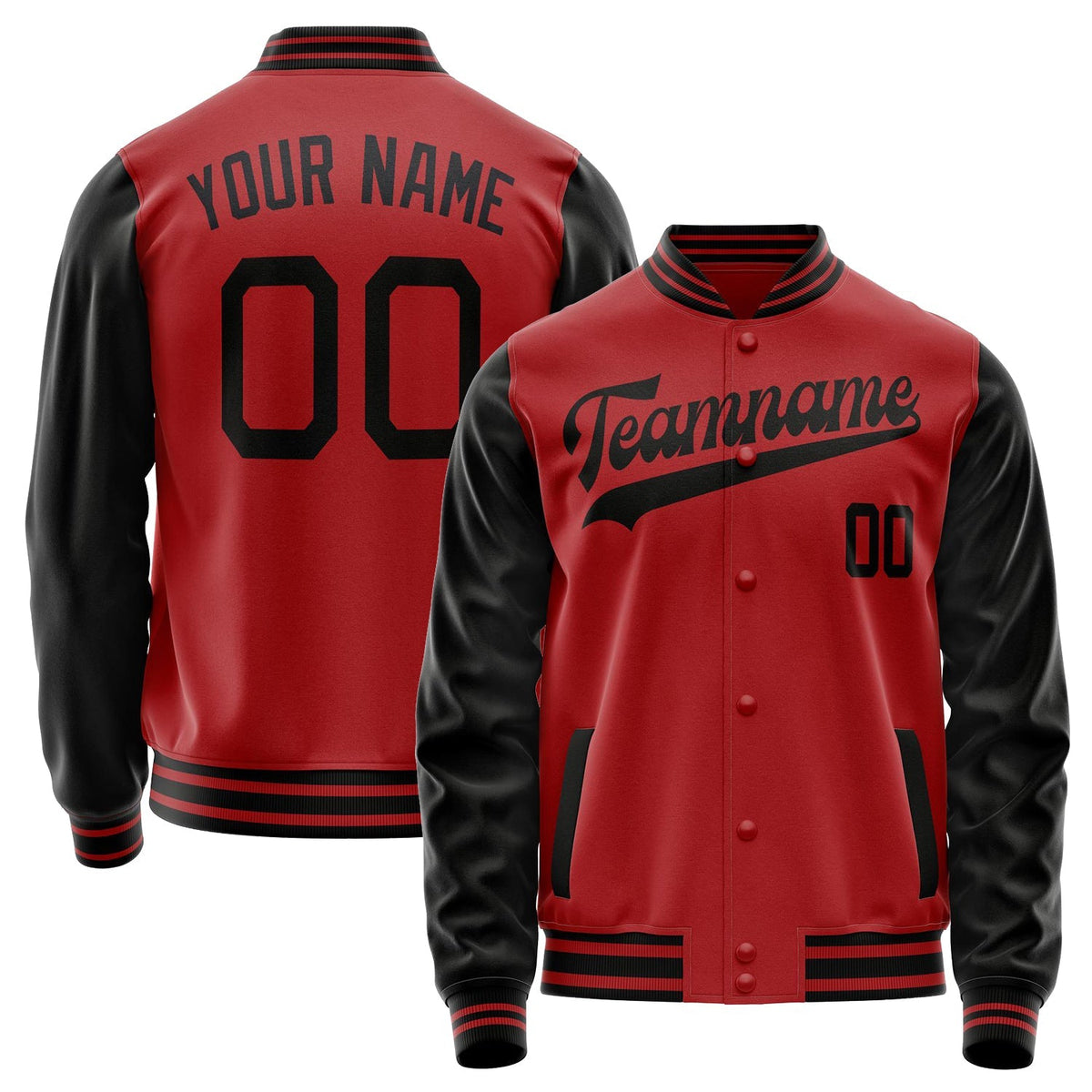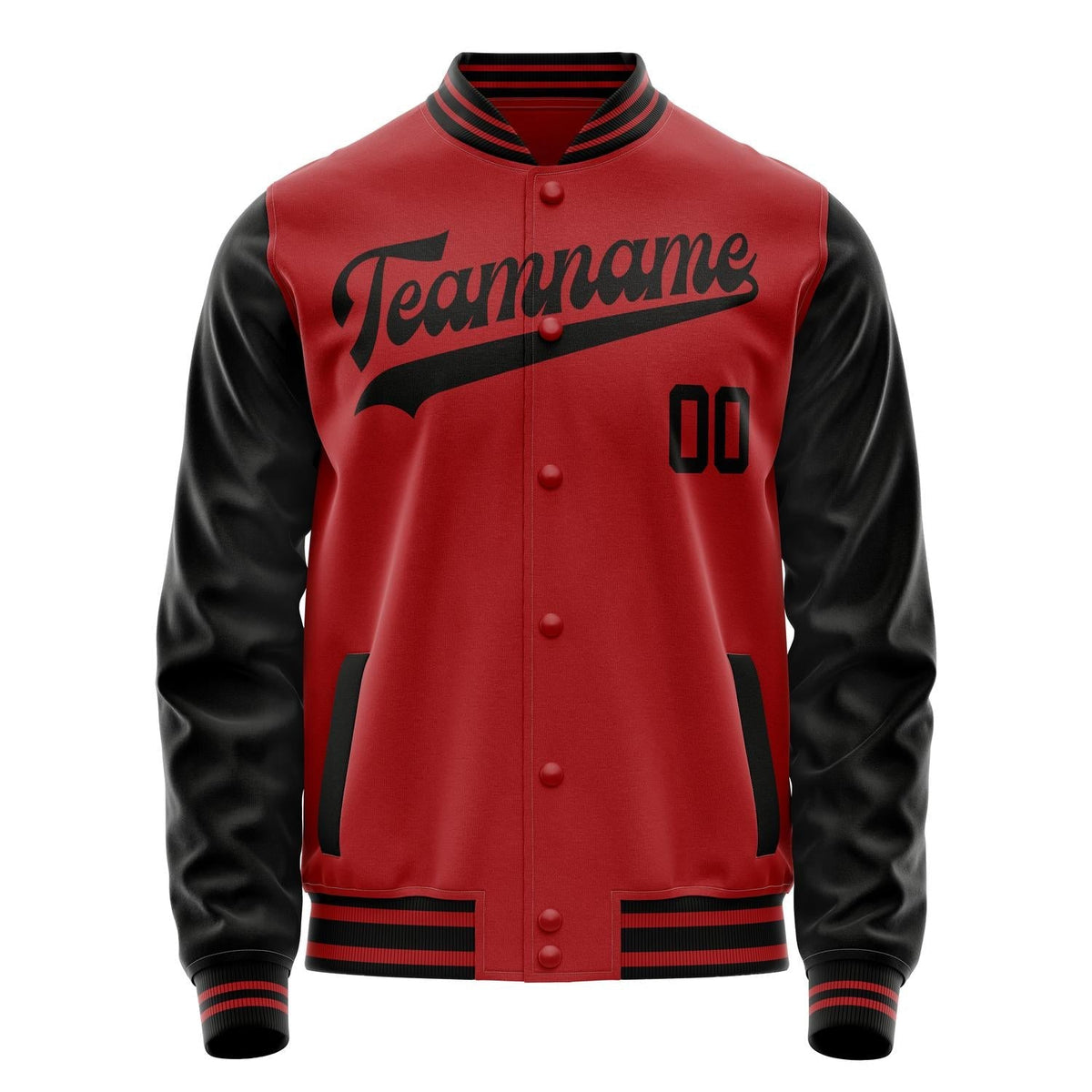 Custom Red Black Solid Color Varsity Letterman Jacket