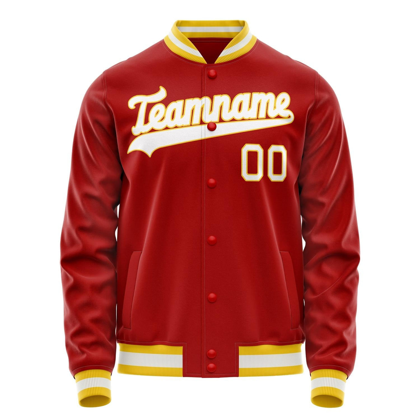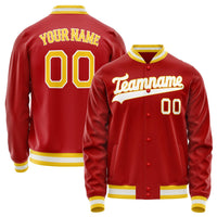 Custom Red Gold Solid Color Varsity Letterman Jacket