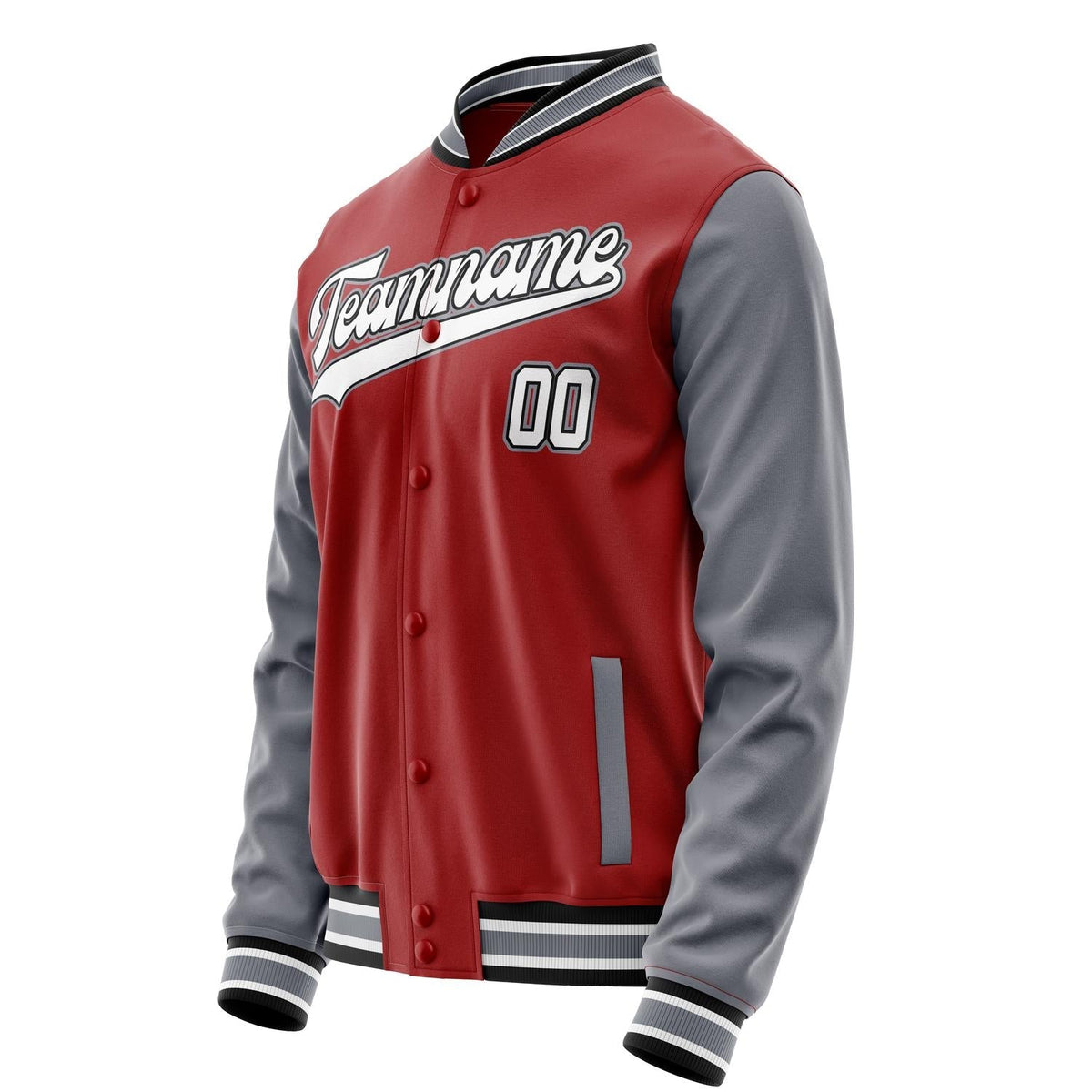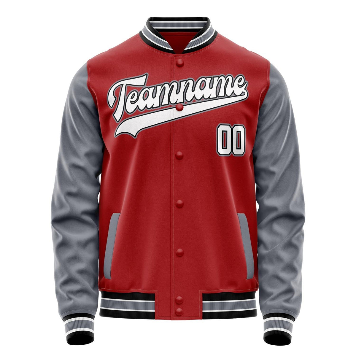 Custom Red Gray Solid Color Varsity Letterman Jacket