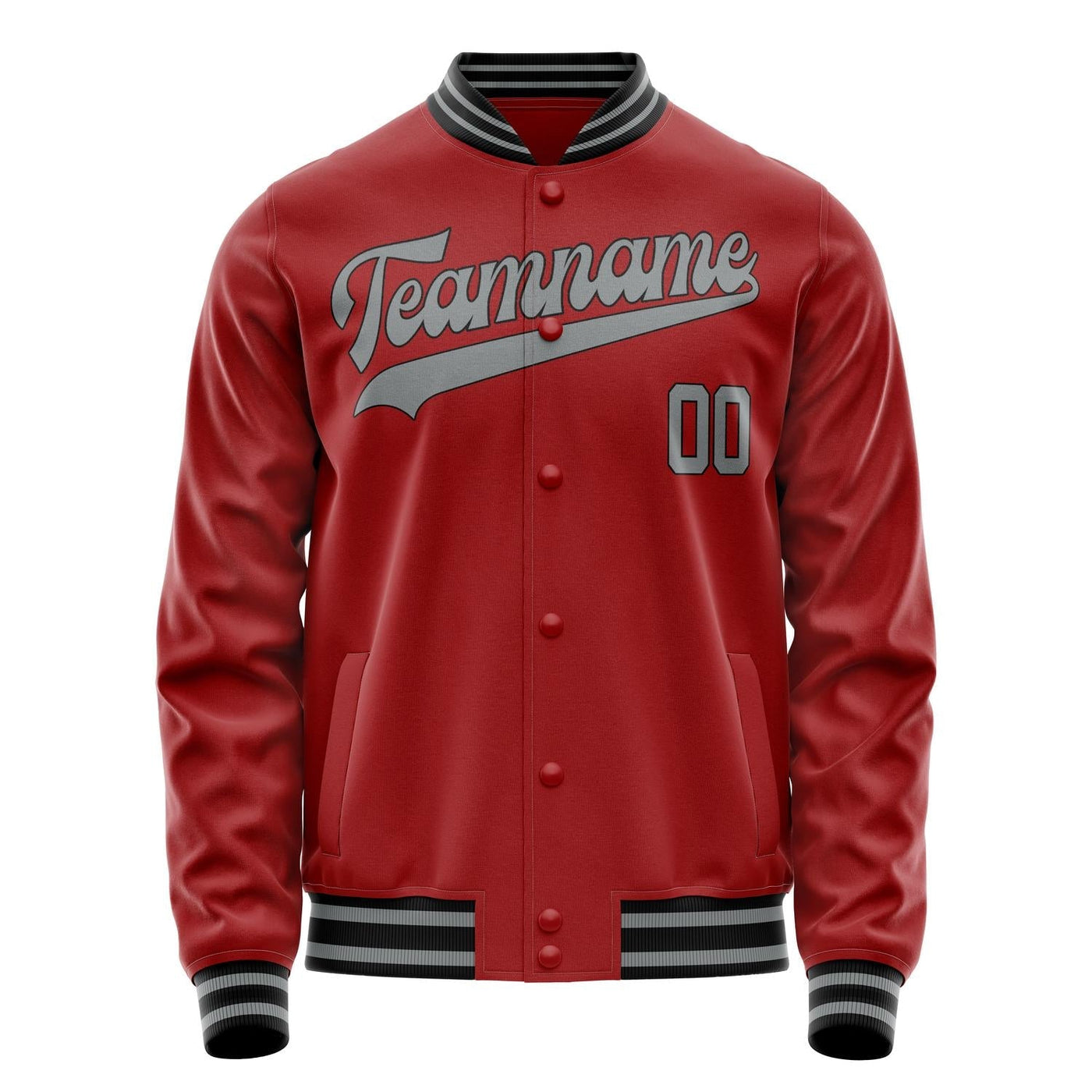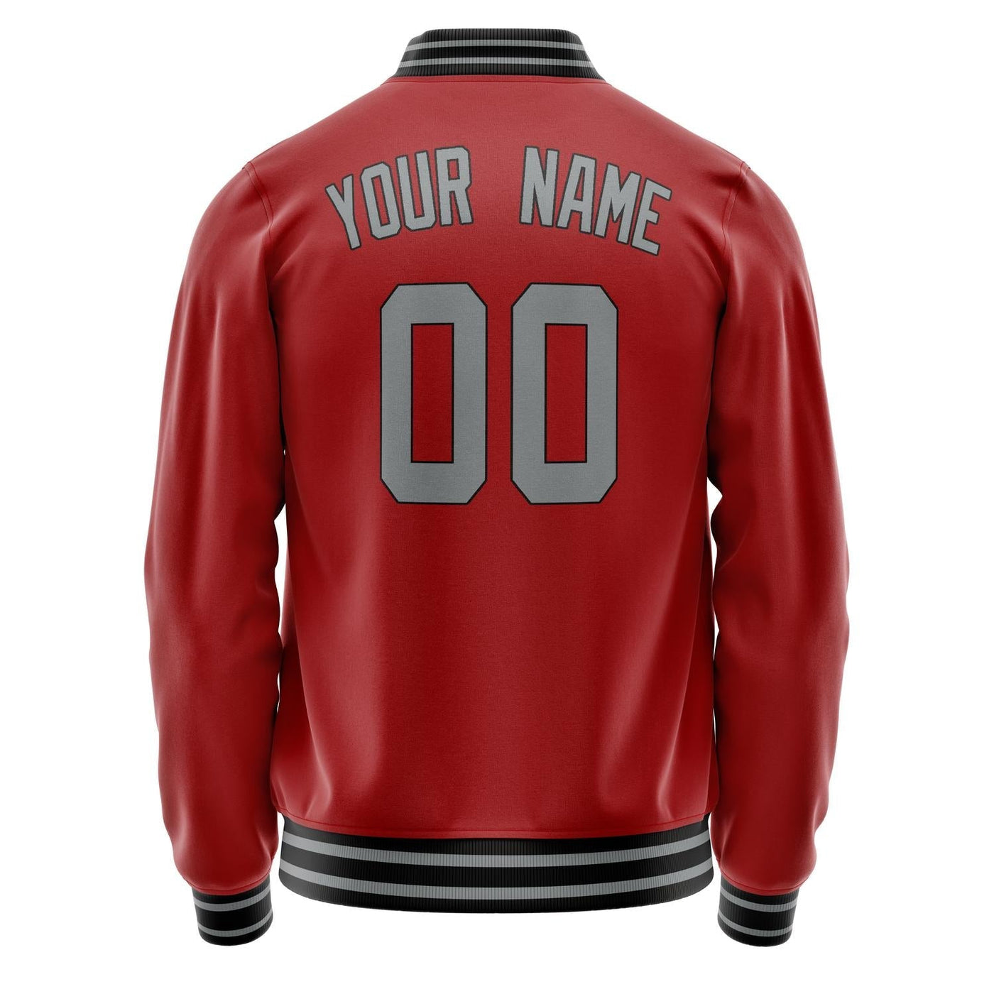 Custom Red Gray Solid Color Varsity Letterman Jacket