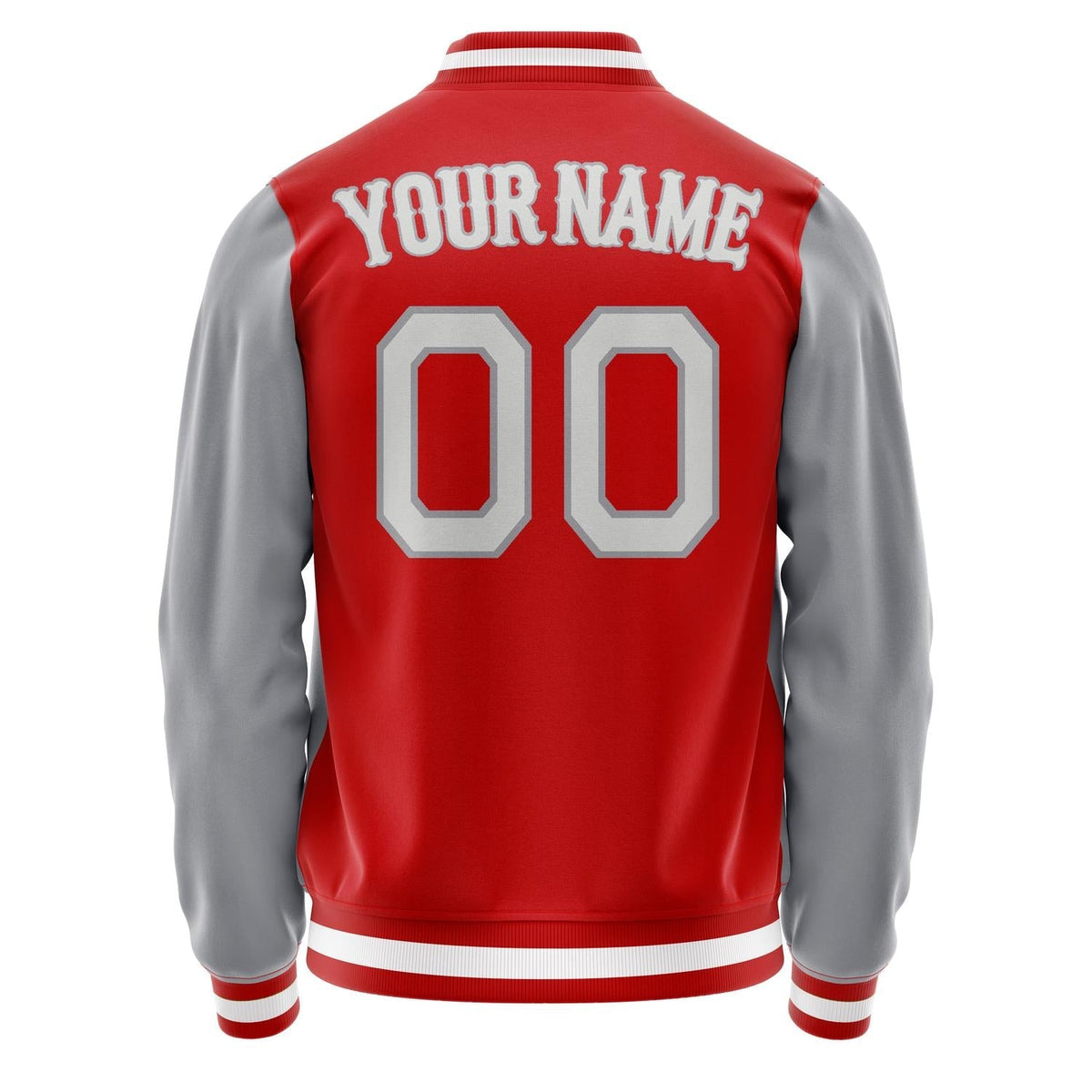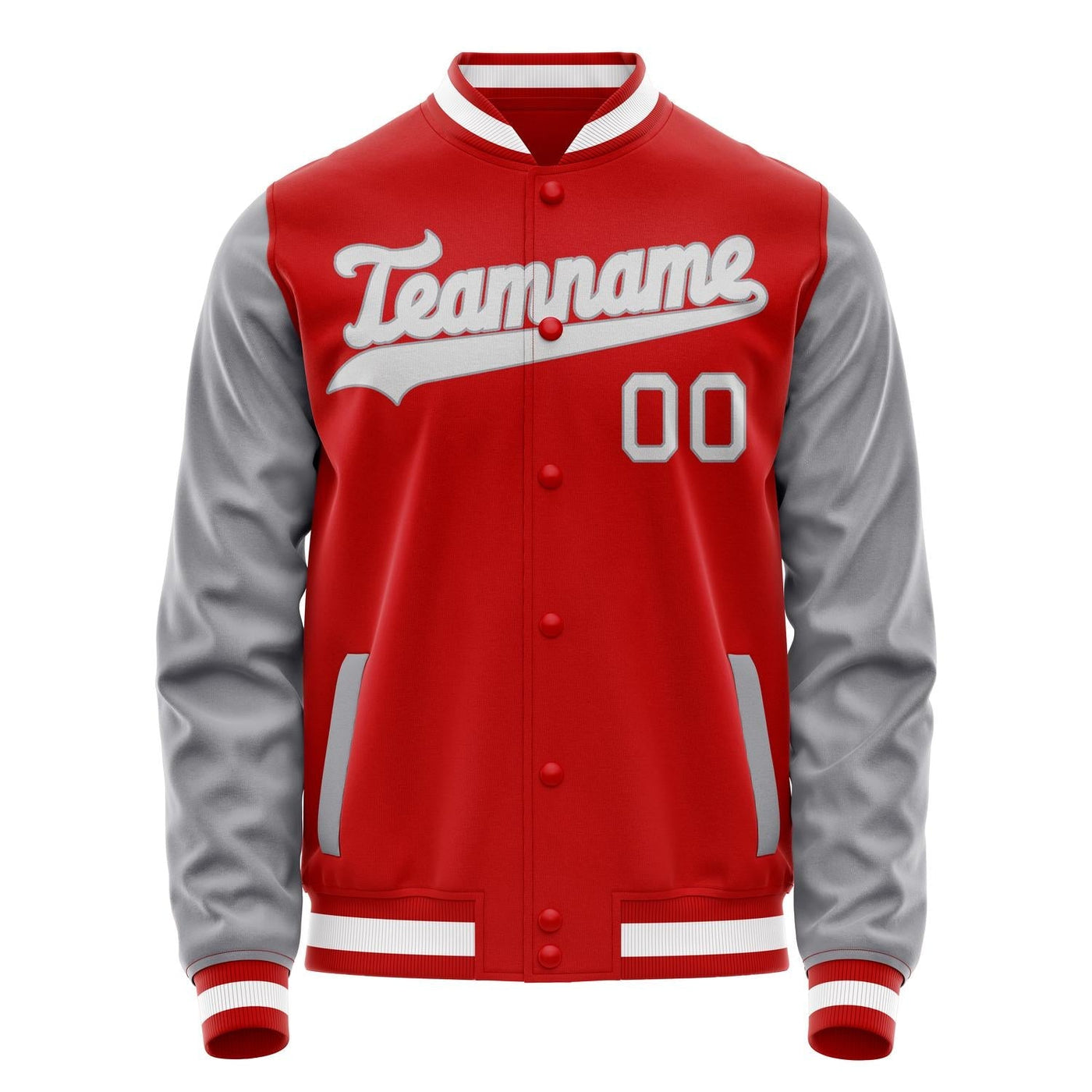 Custom Red Gray Solid Color Varsity Letterman Jacket