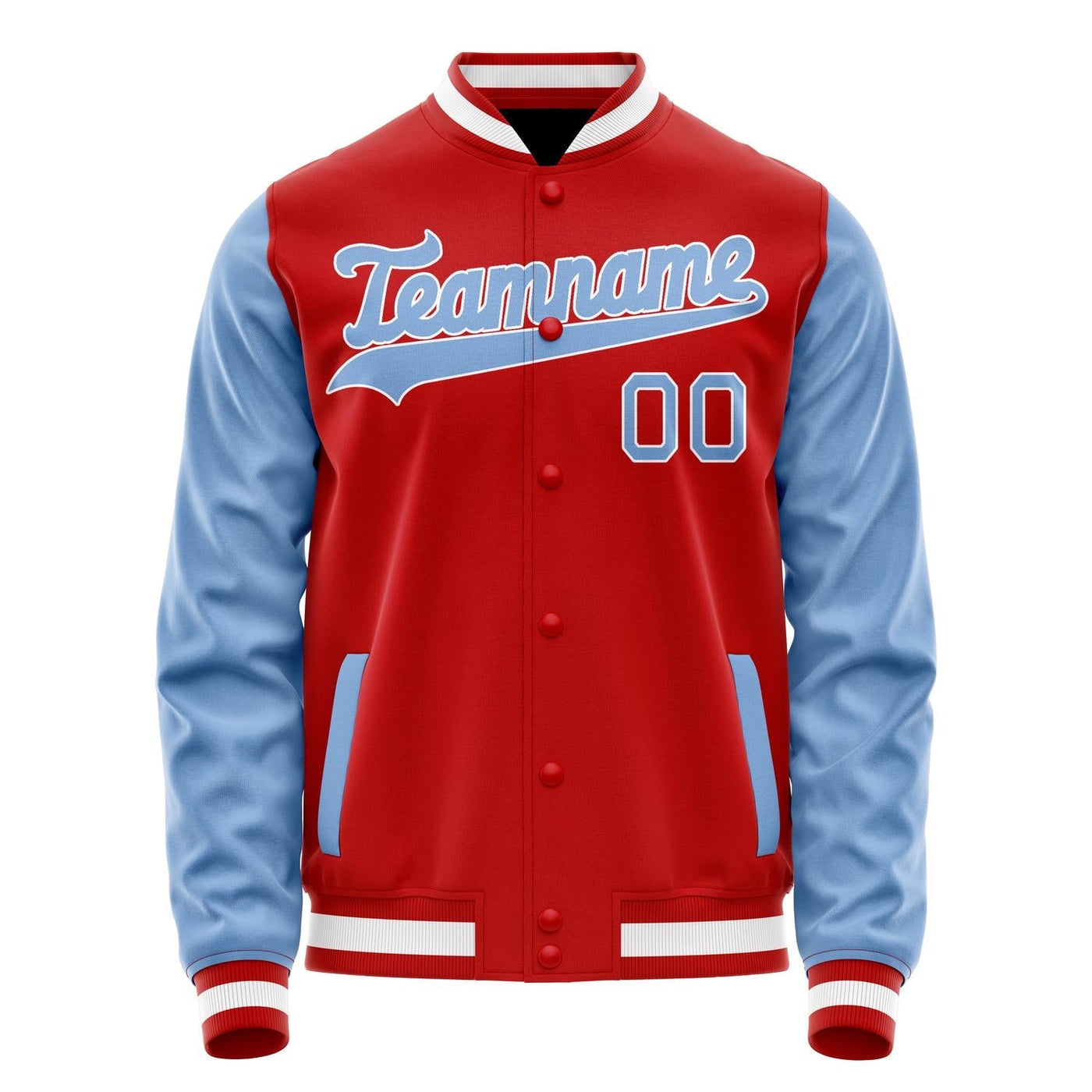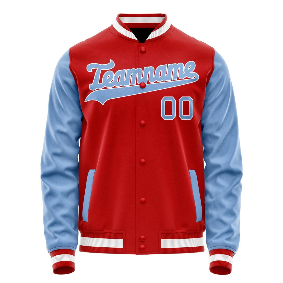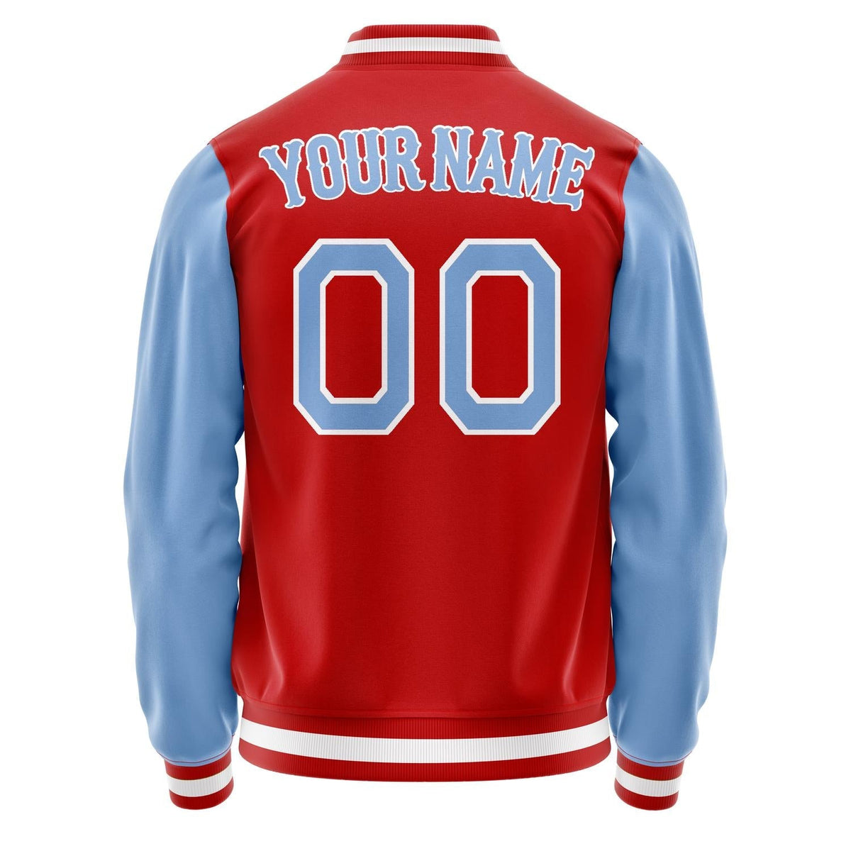 Custom Red Light-Blue Solid Color Varsity Letterman Jacket