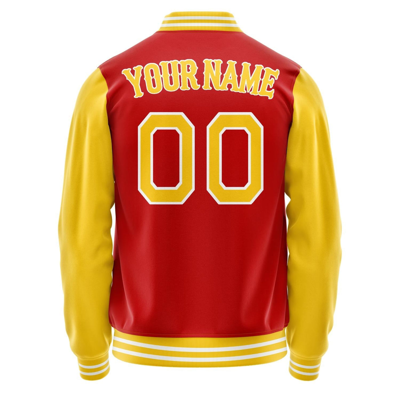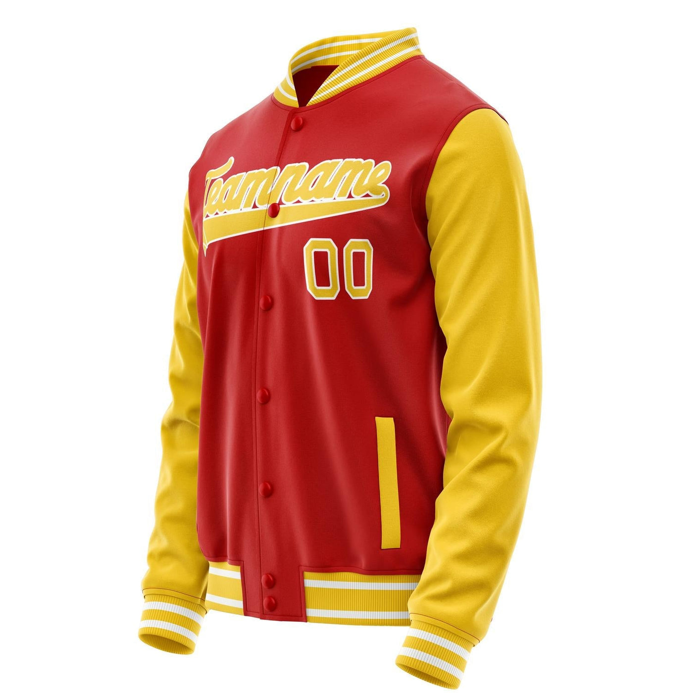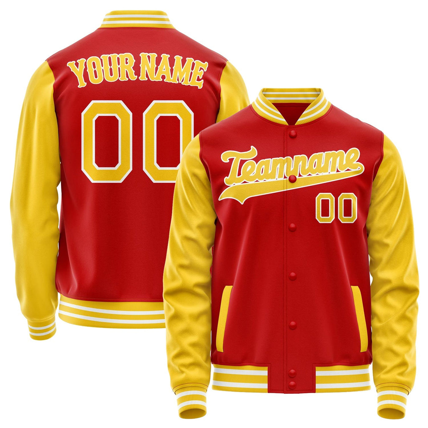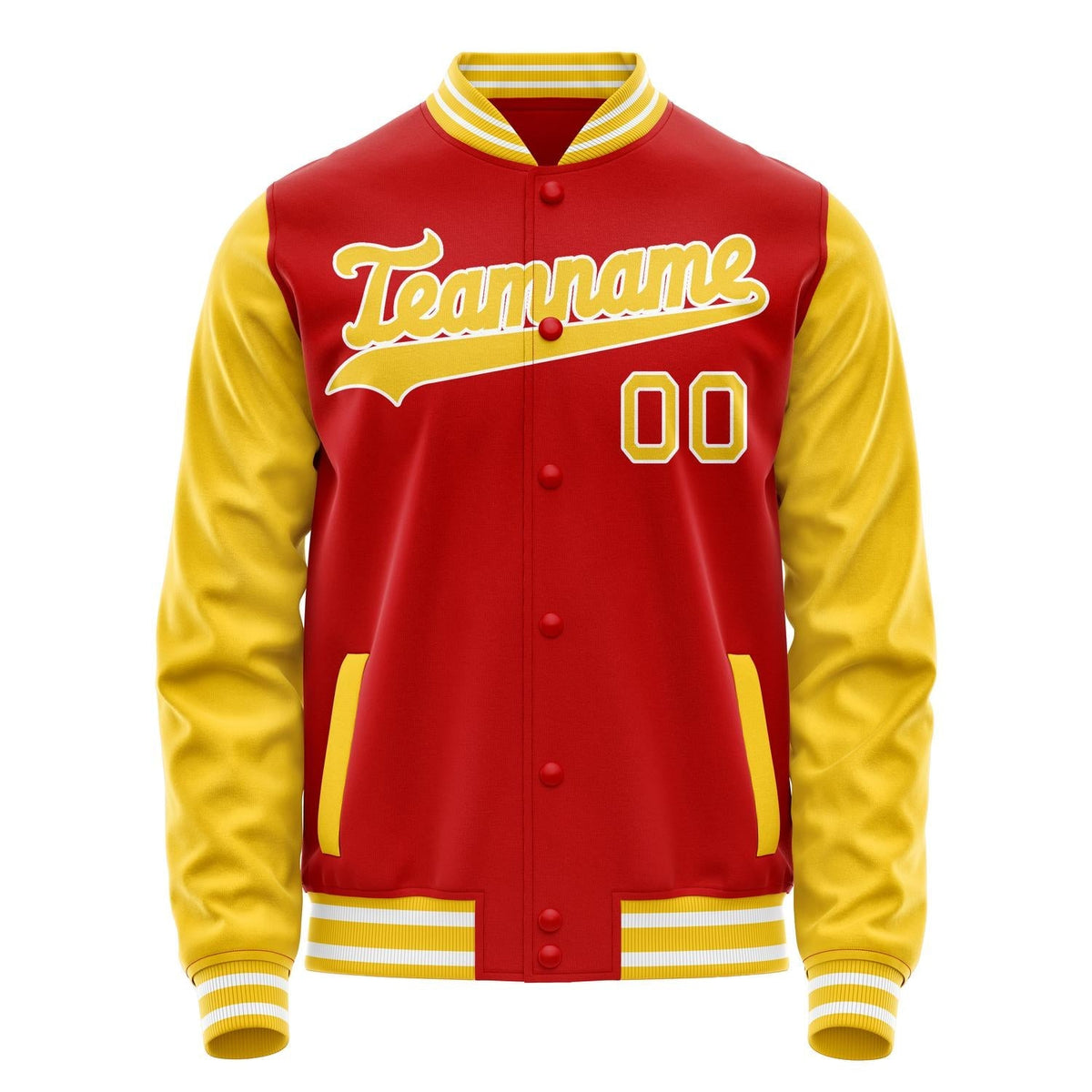 Custom Red Yellow Solid Color Varsity Letterman Jacket