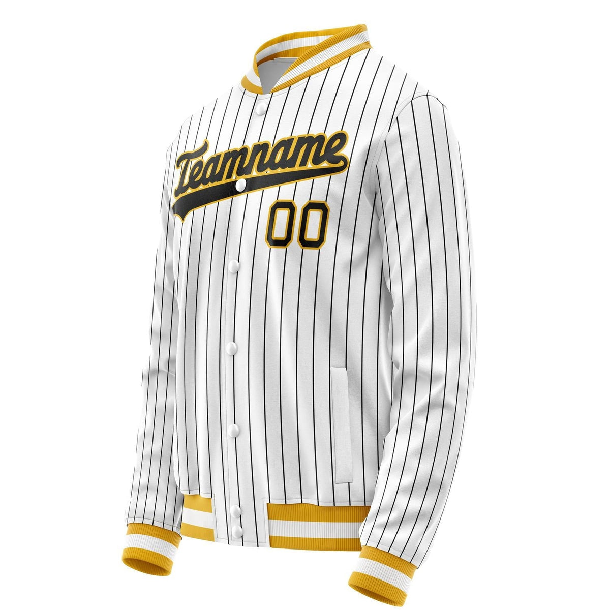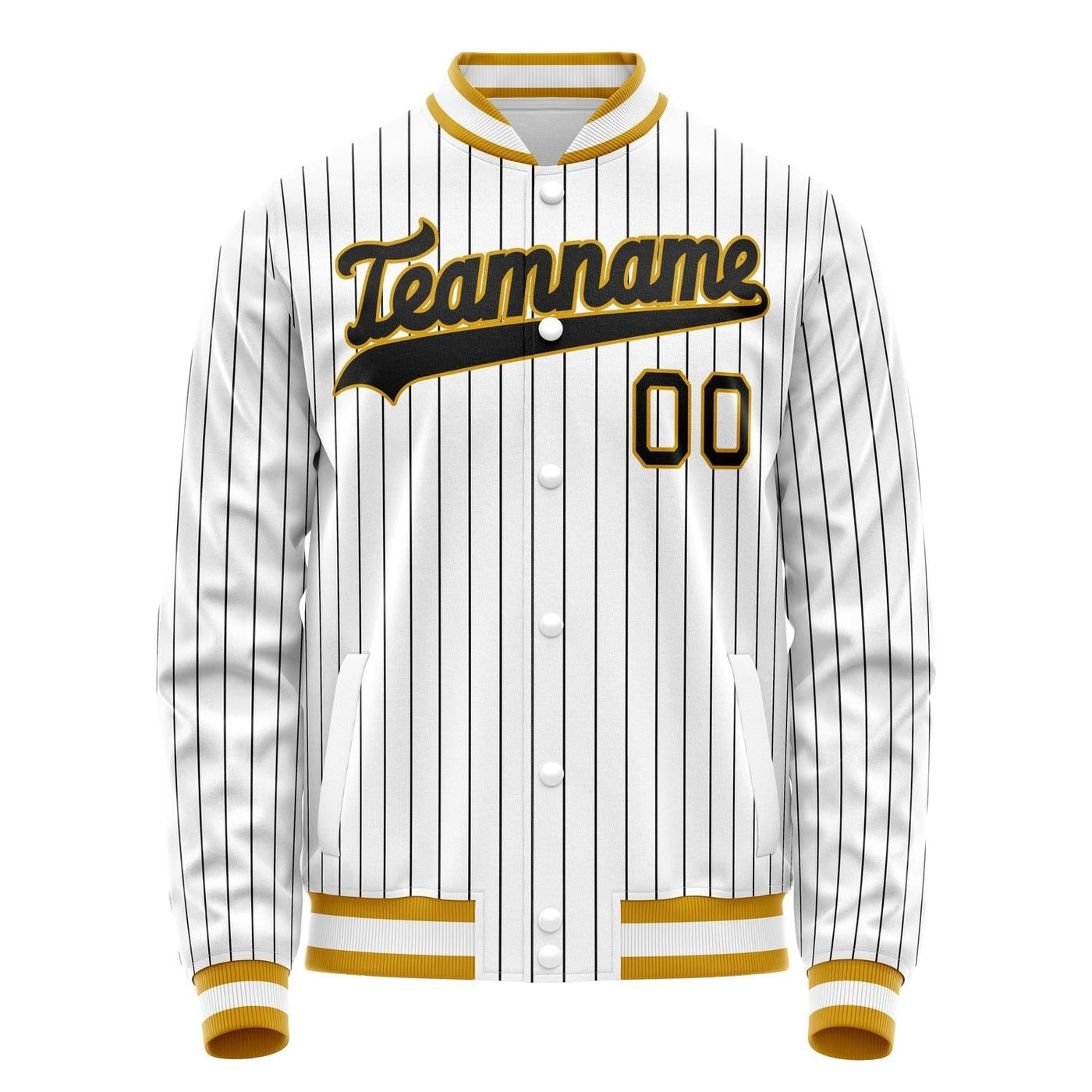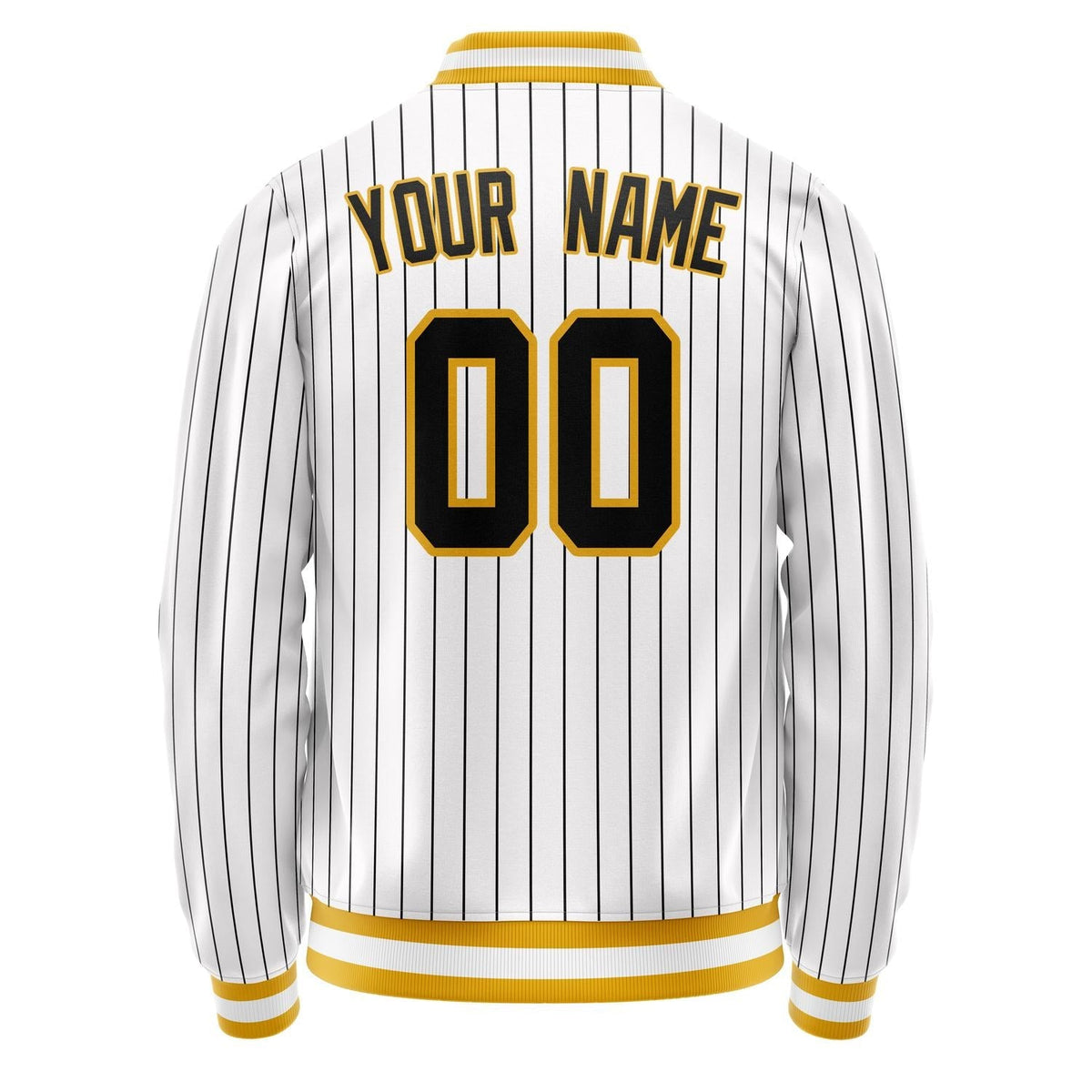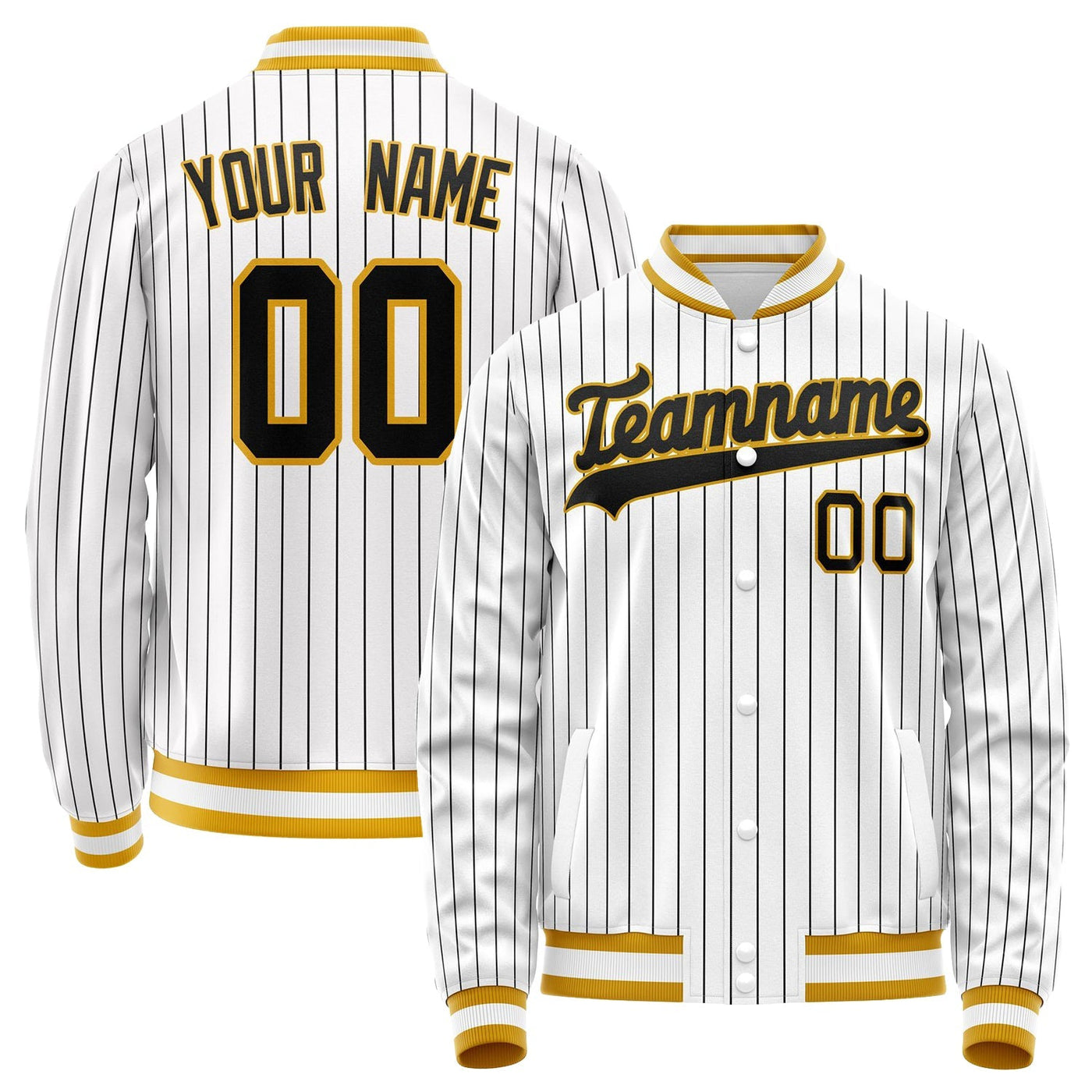 Custom White Black Black Pinstripe Varsity Letterman Jacket
