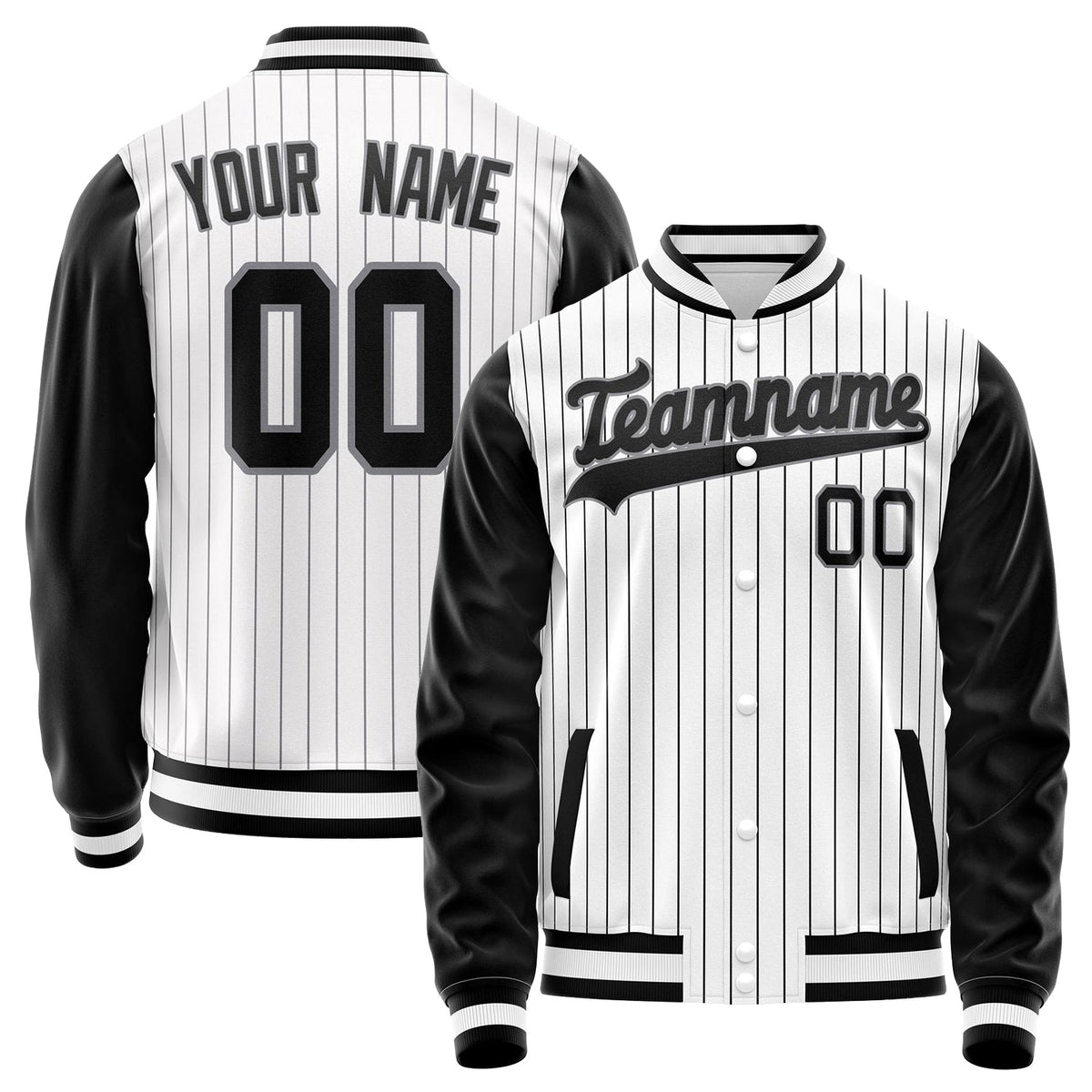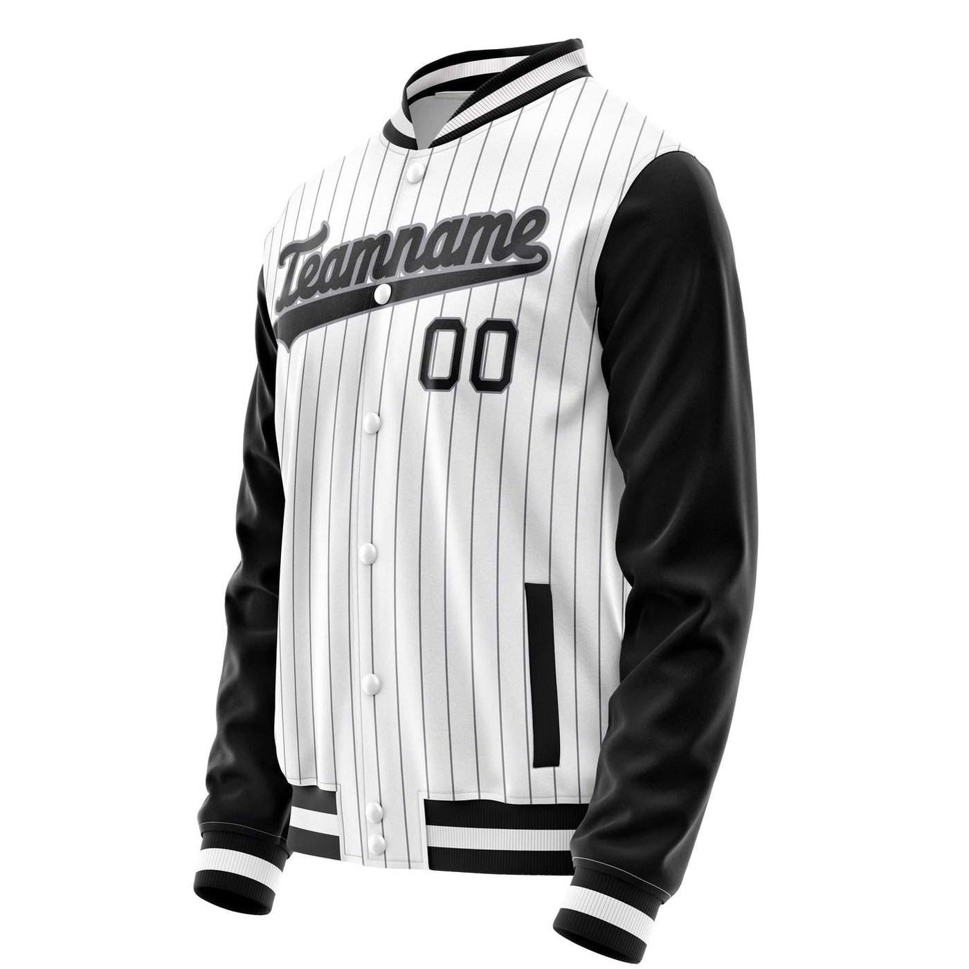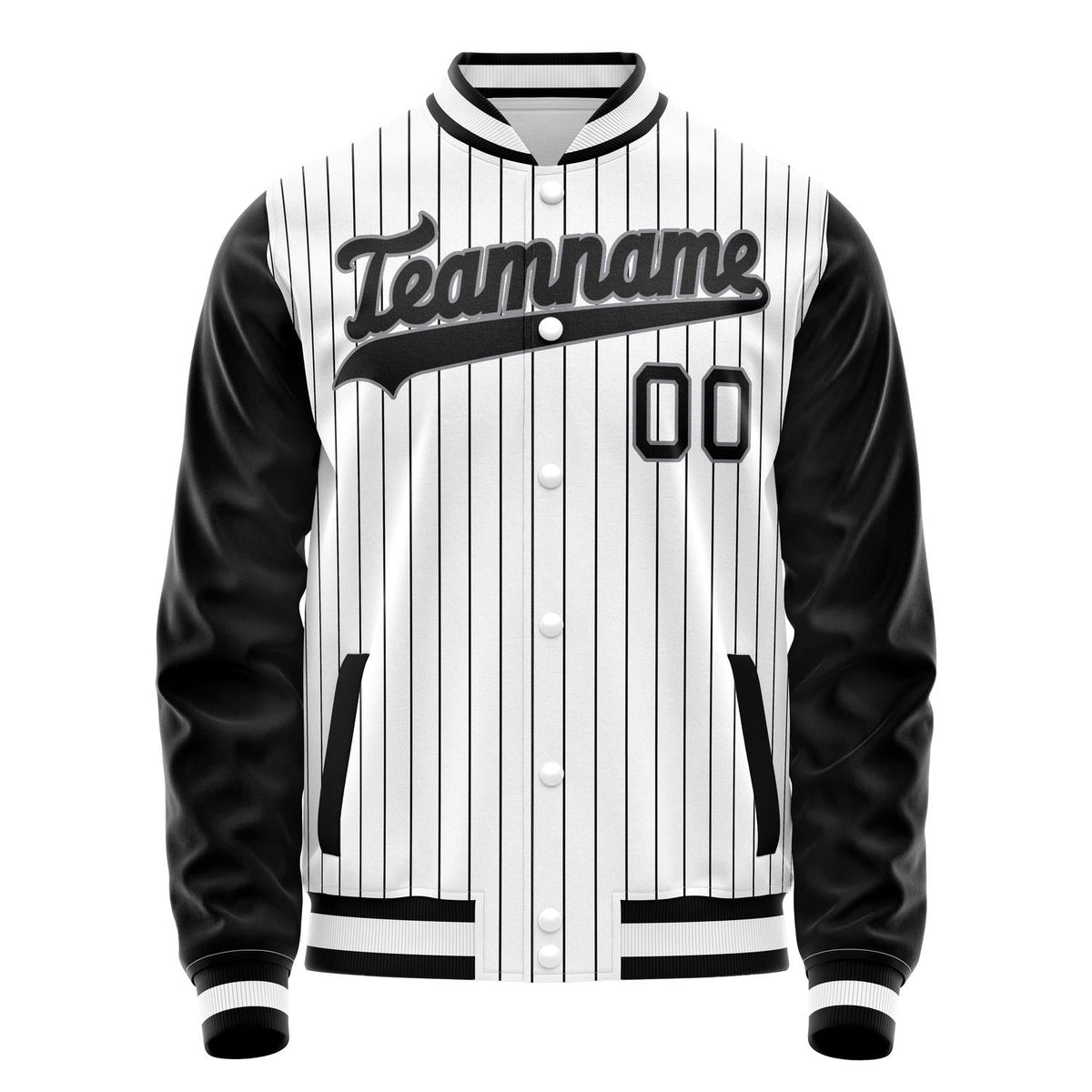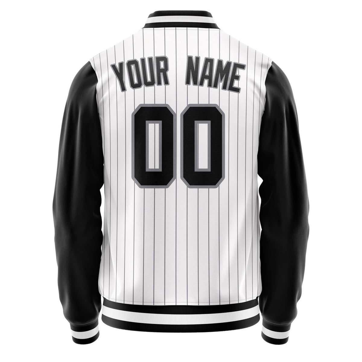 Custom White Black Gray Pinstripe Varsity Letterman Jacket
