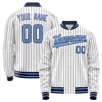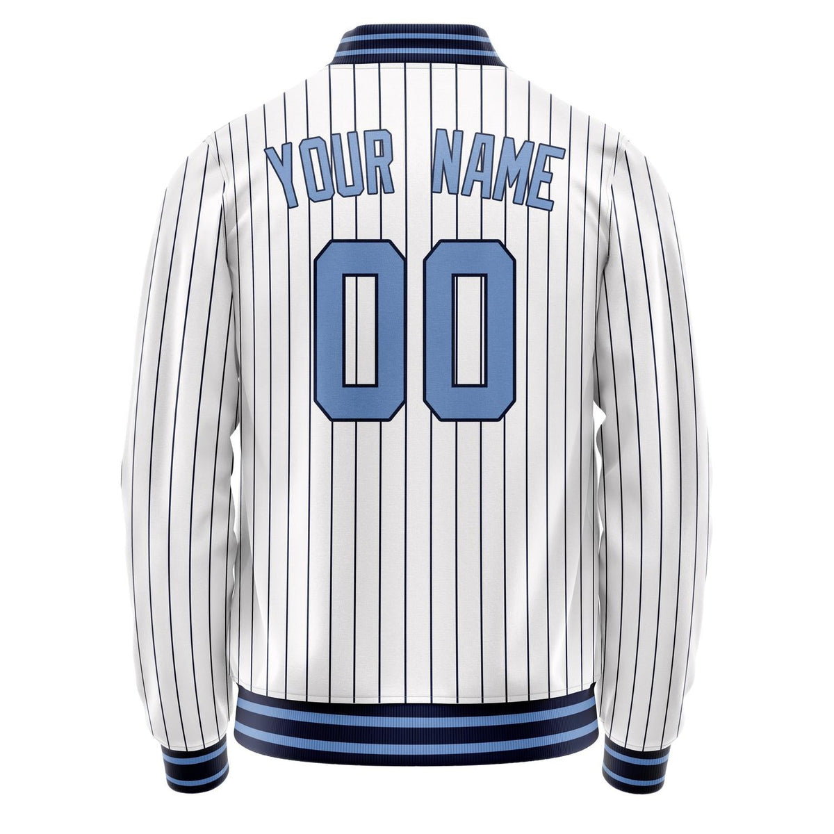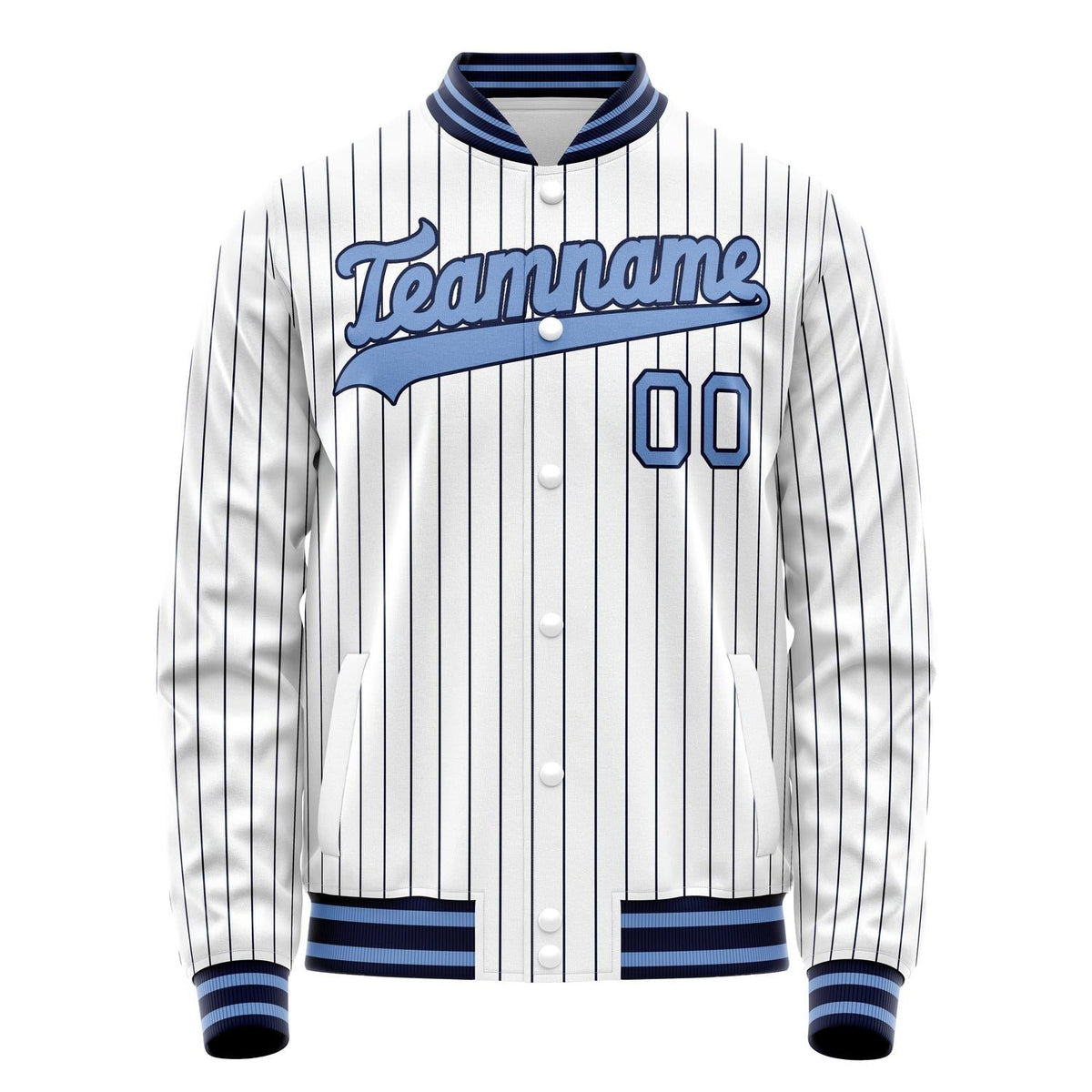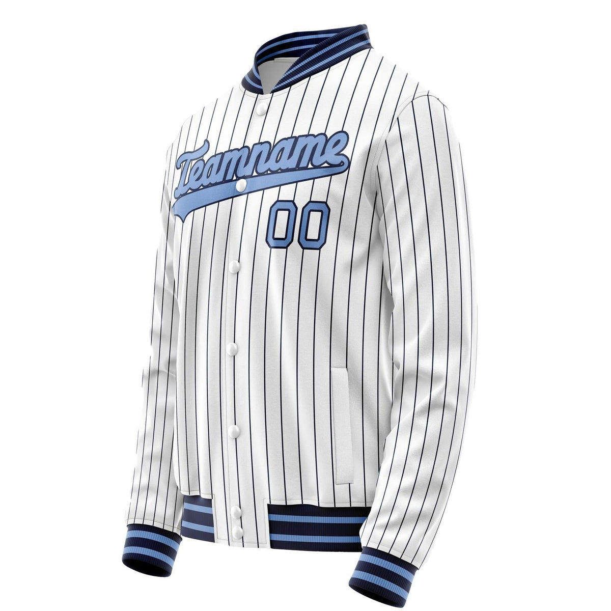 Custom White Light-Blue Navy Pinstripe Varsity Letterman Jacket
