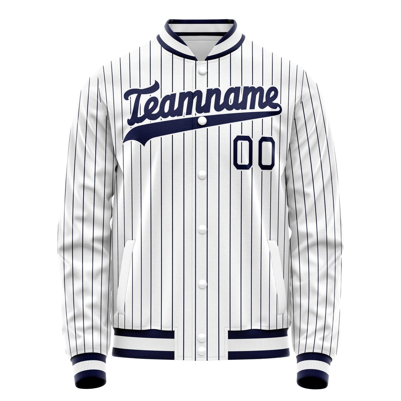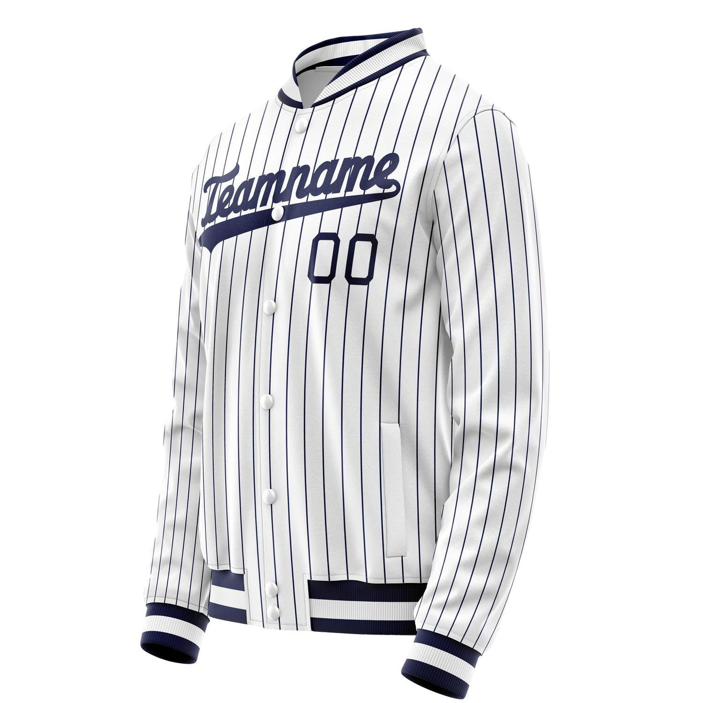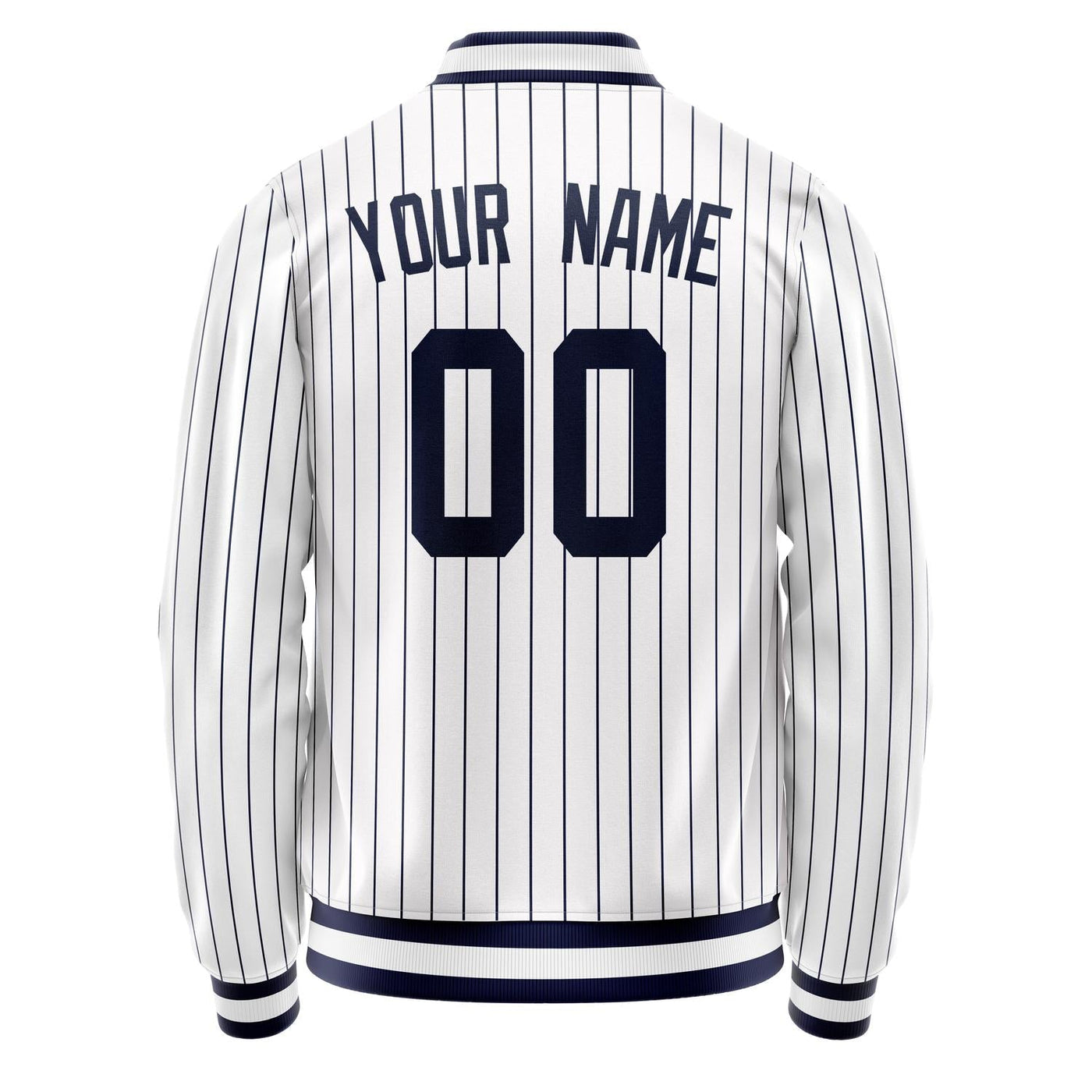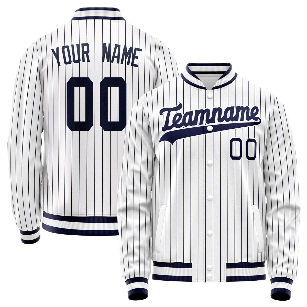 Custom White Navy Navy Pinstripe Varsity Letterman Jacket