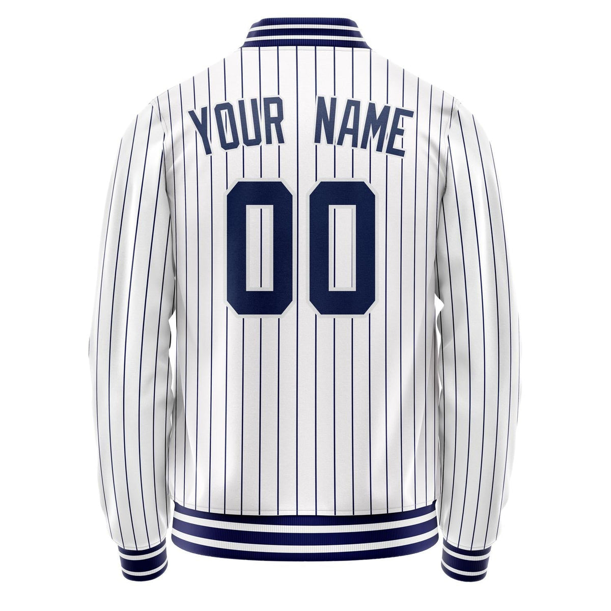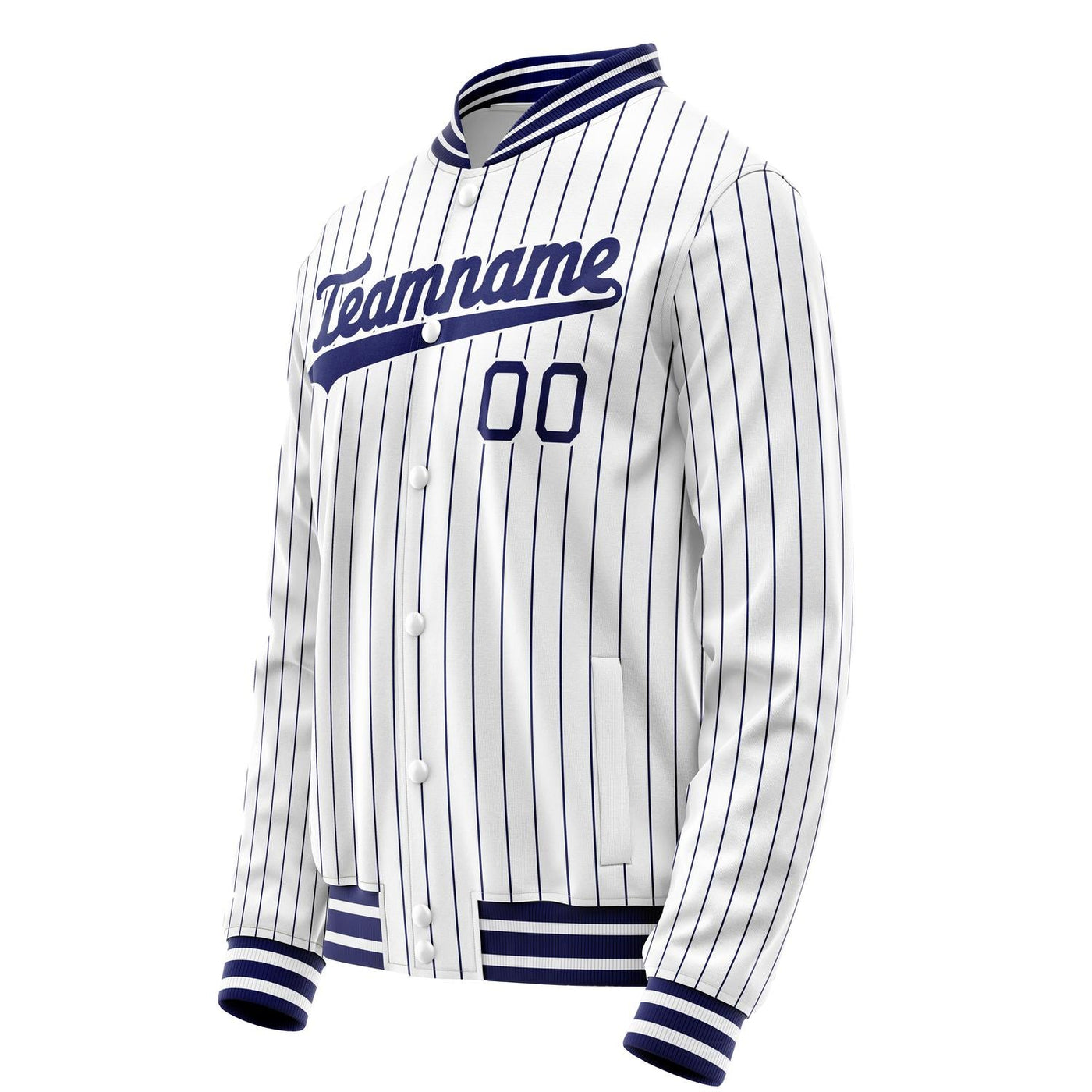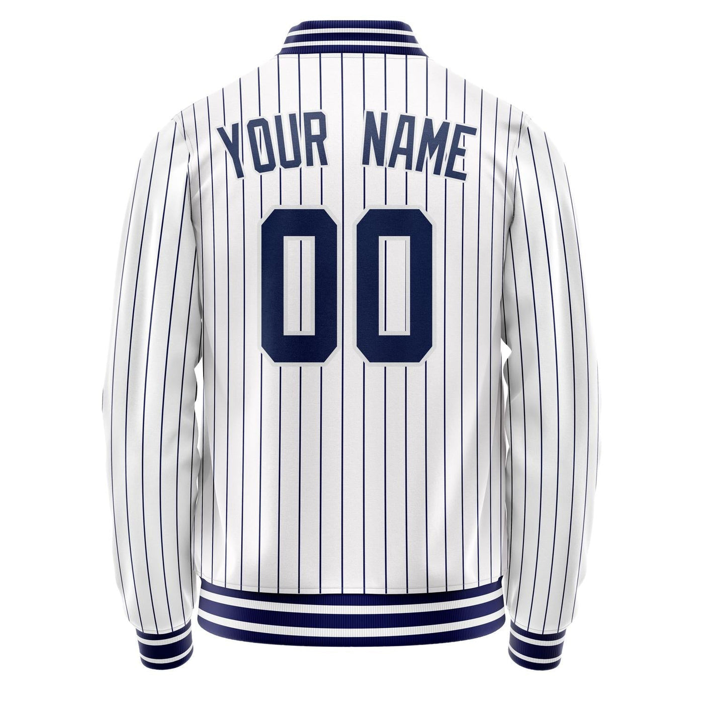 Custom White Navy Navy Pinstripe Varsity Letterman Jacket