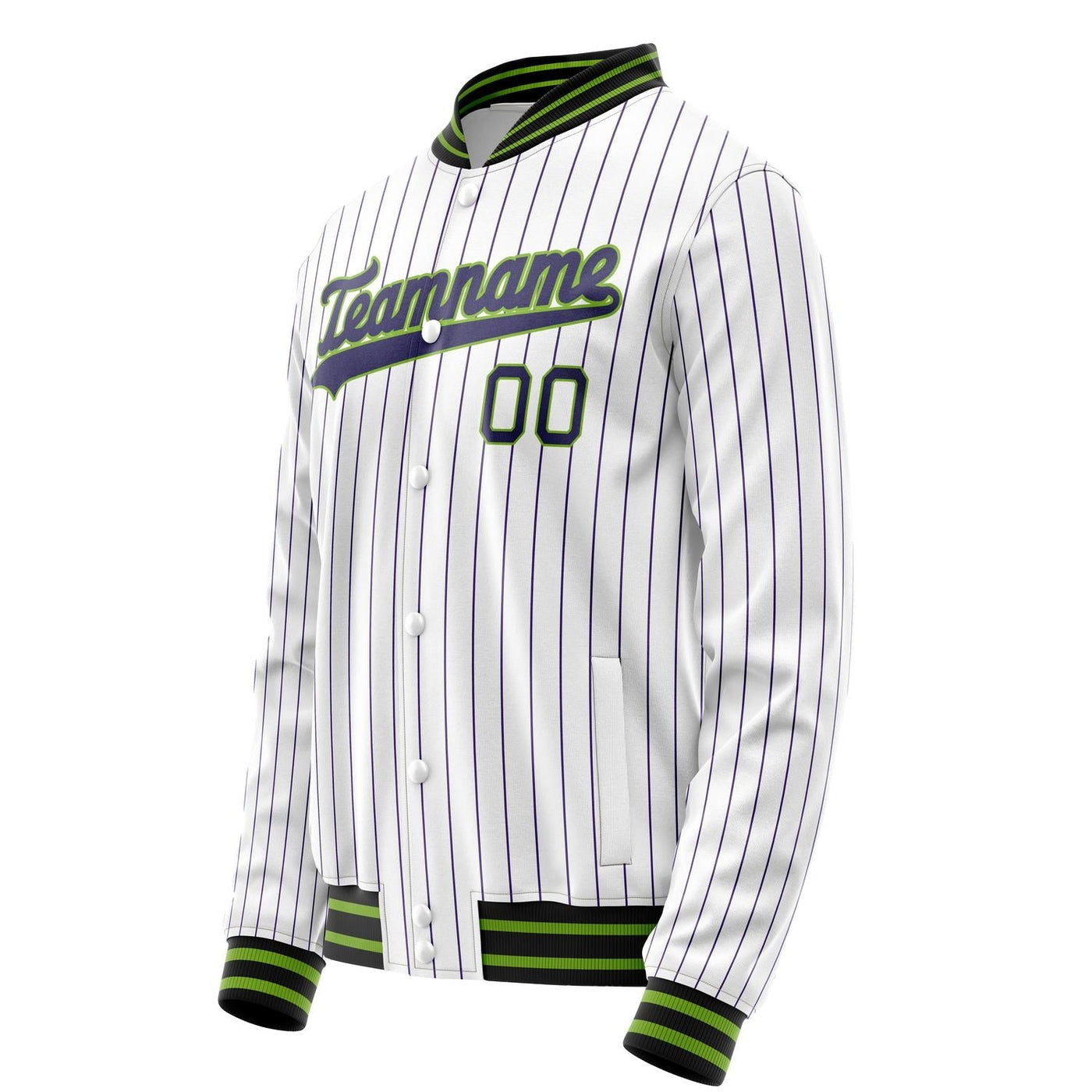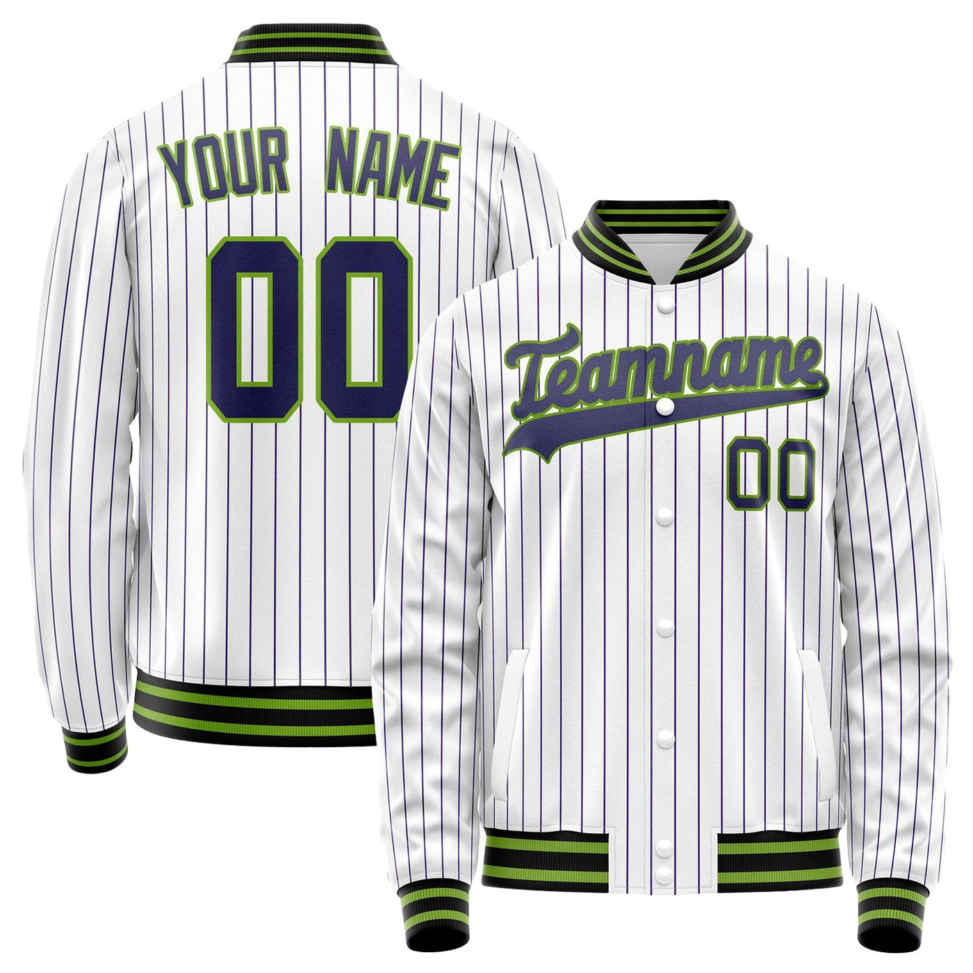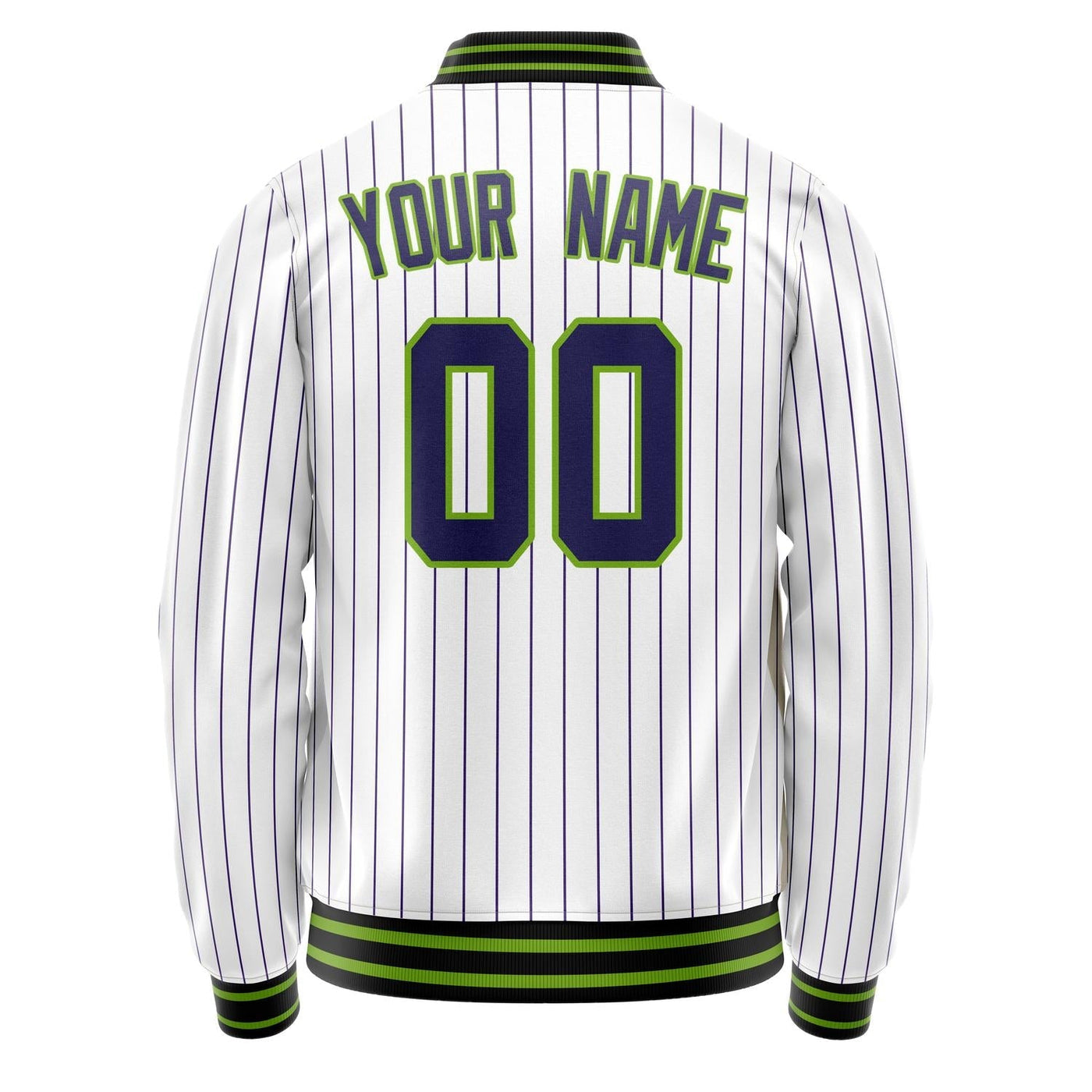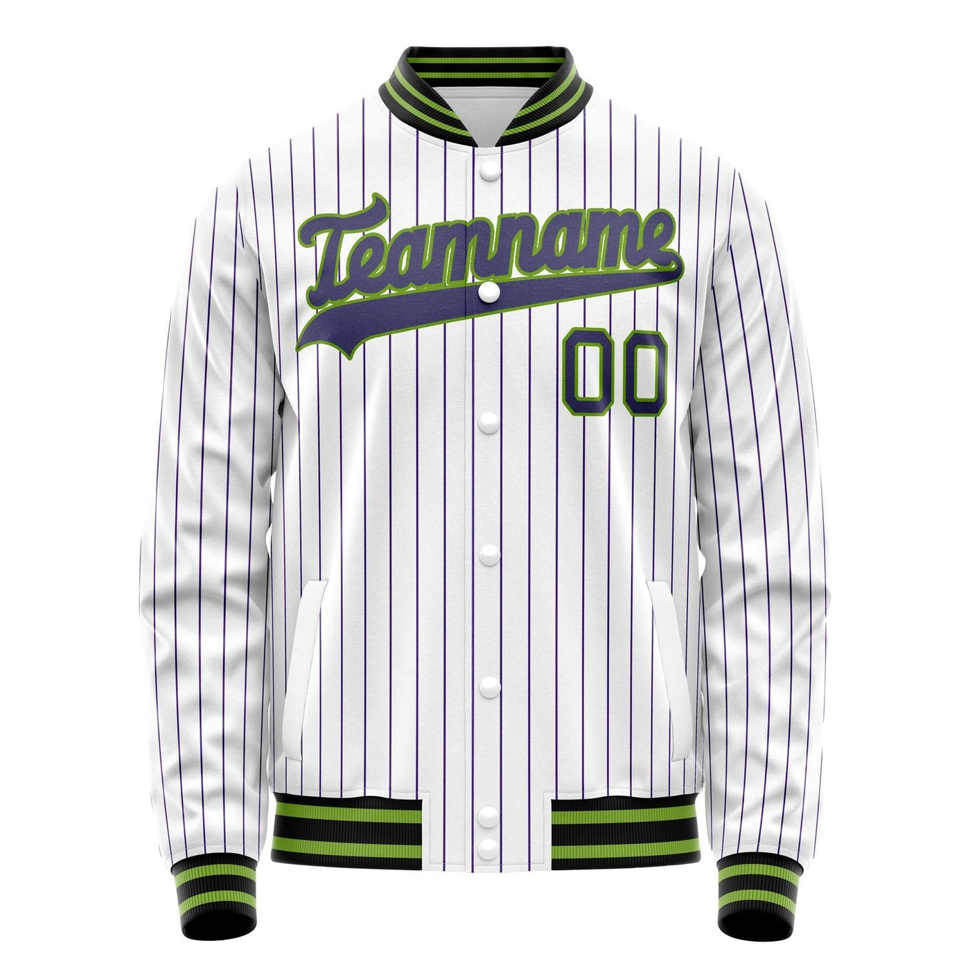 Custom White Navy Purple Pinstripe Varsity Letterman Jacket
