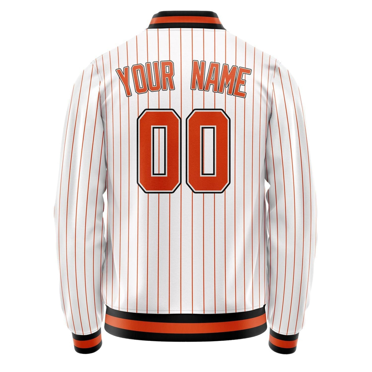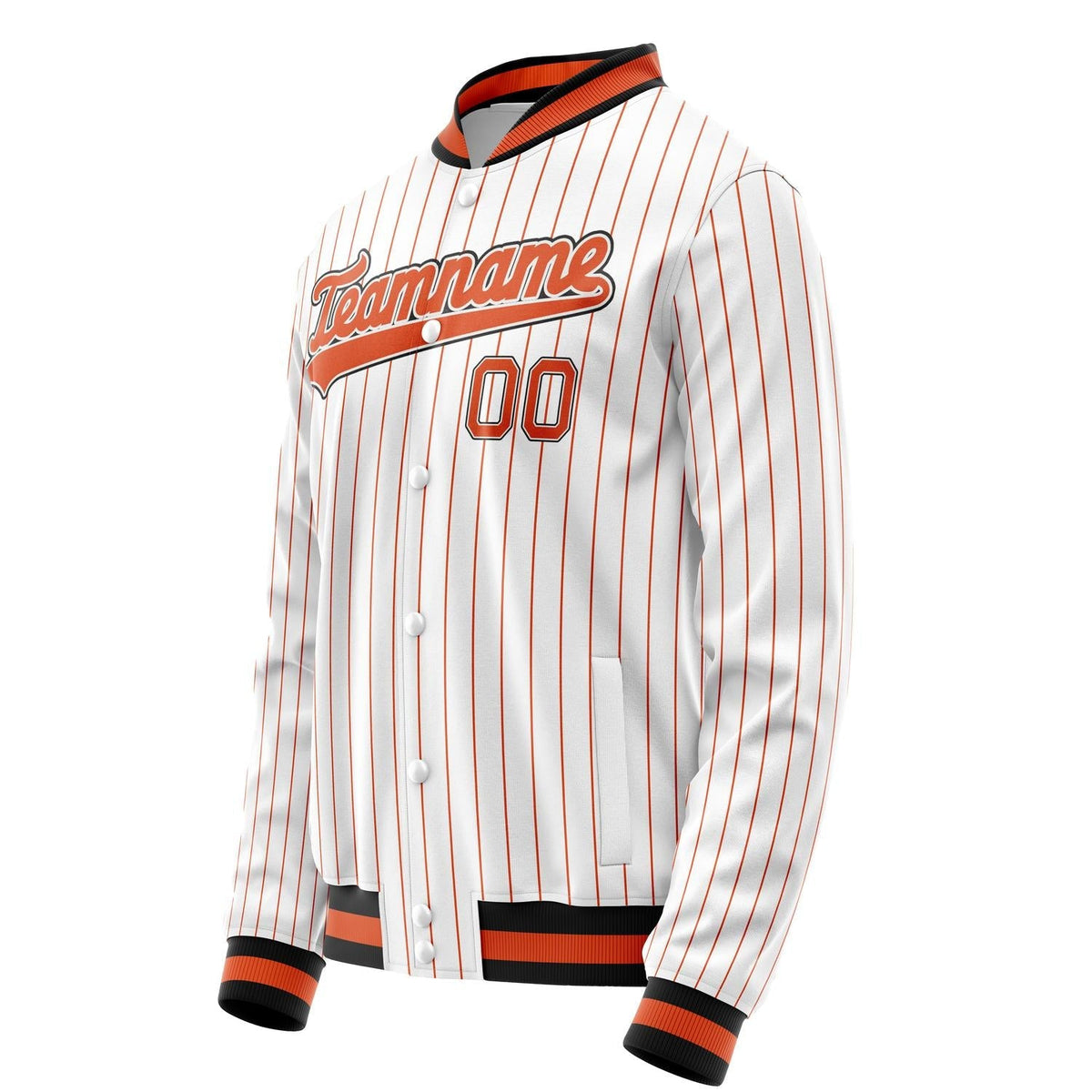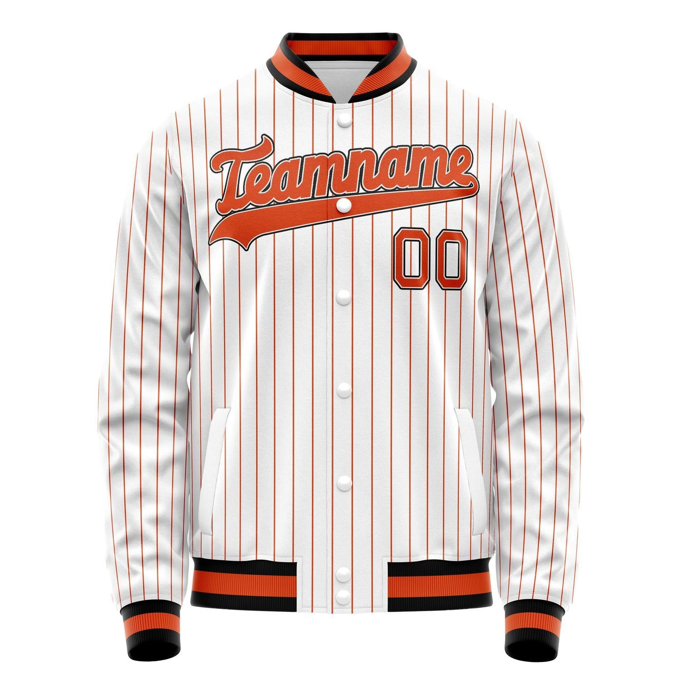 Custom White Orange Orange Pinstripe Varsity Letterman Jacket