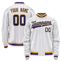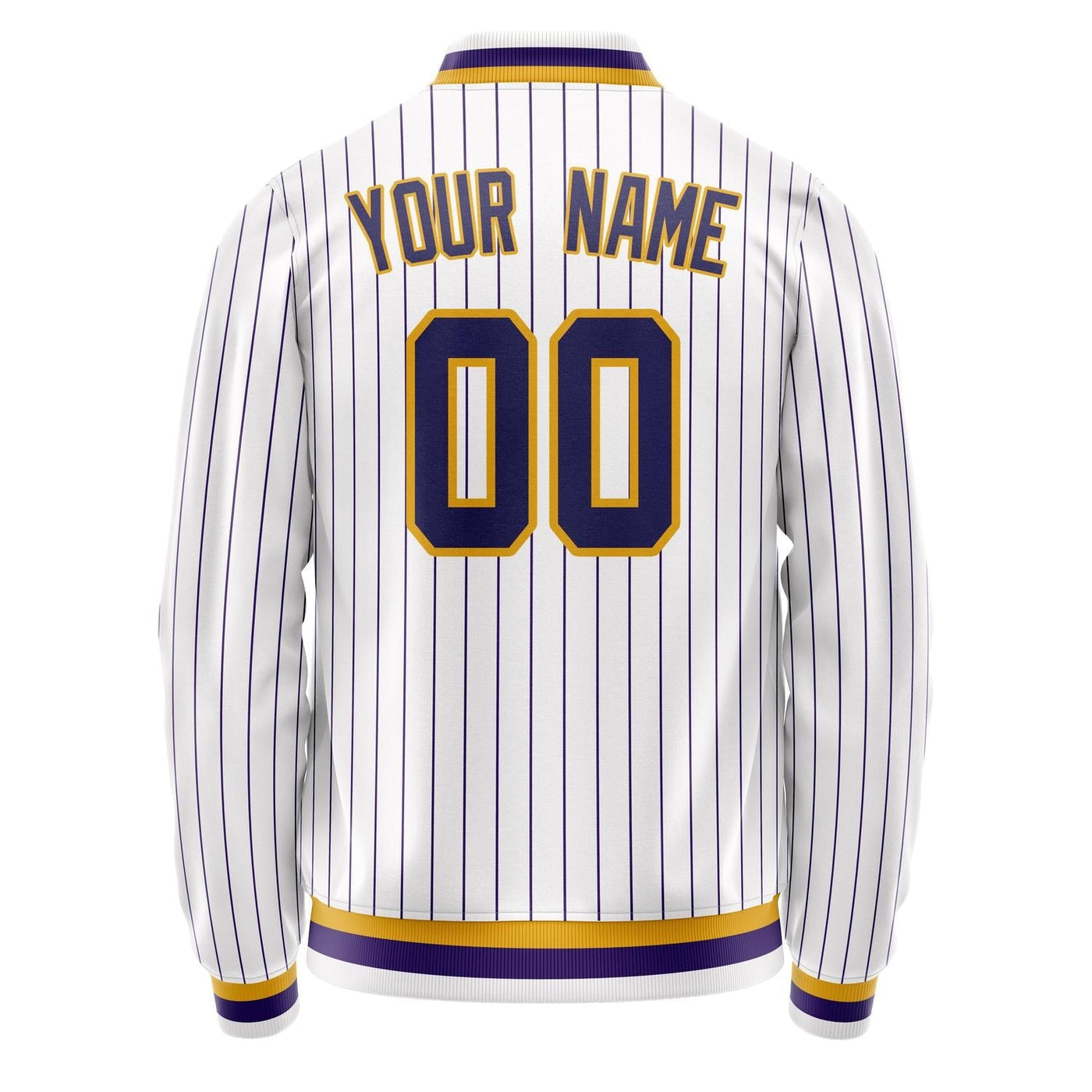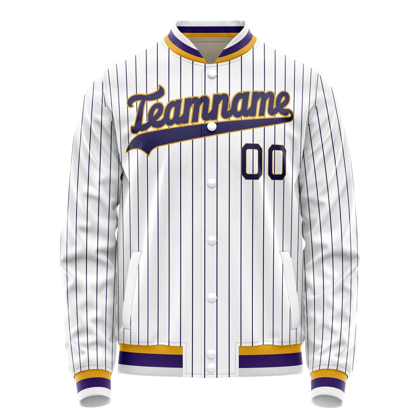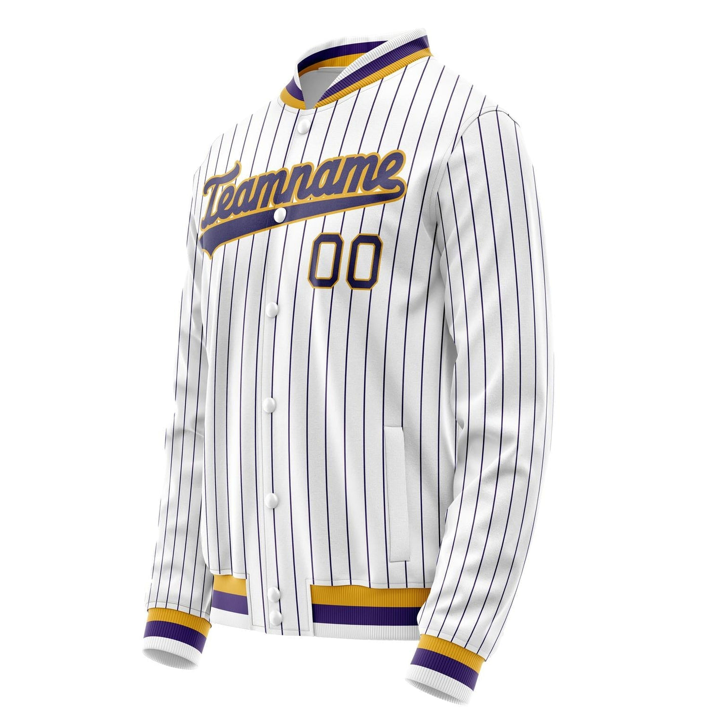 Custom White Purple Purple Pinstripe Varsity Letterman Jacket