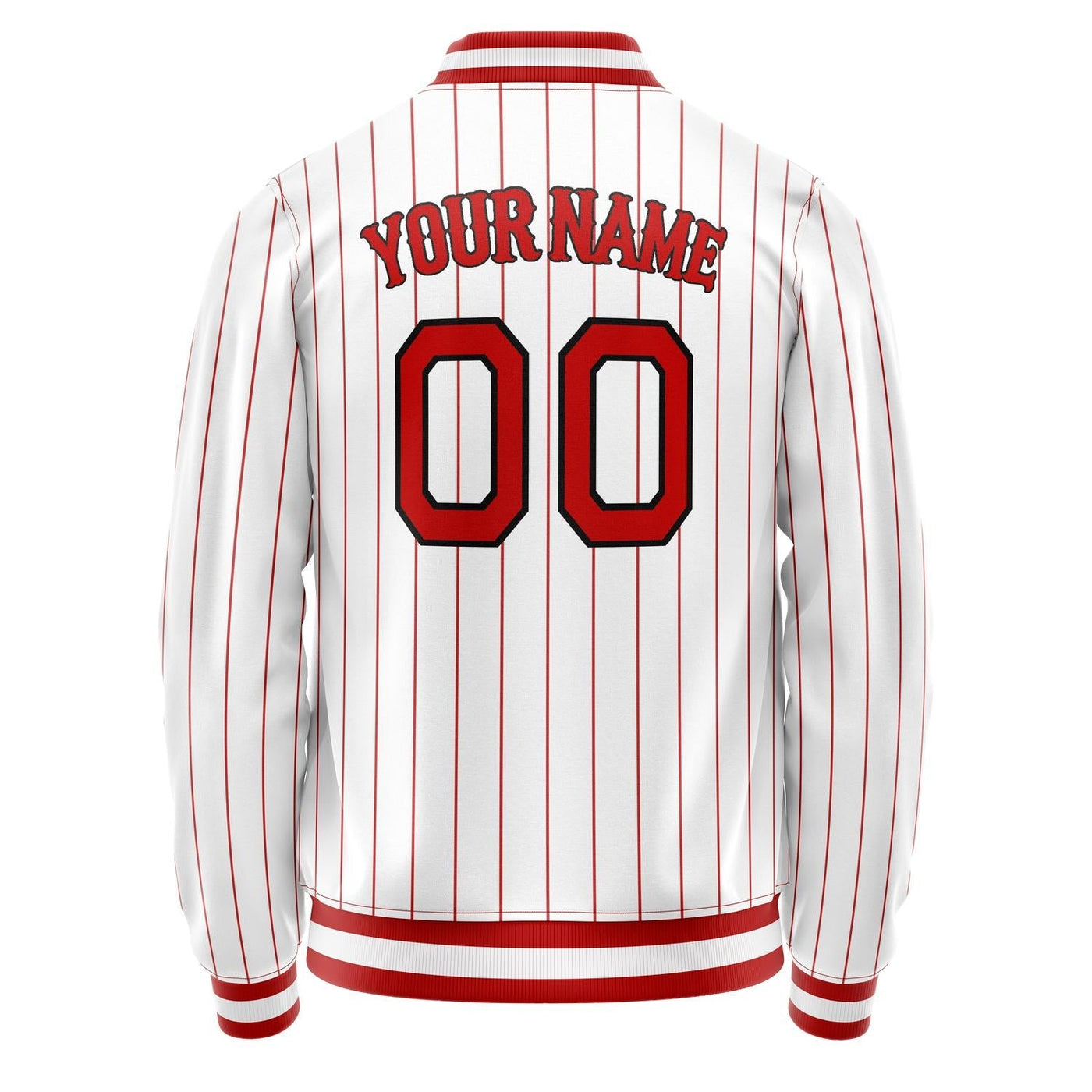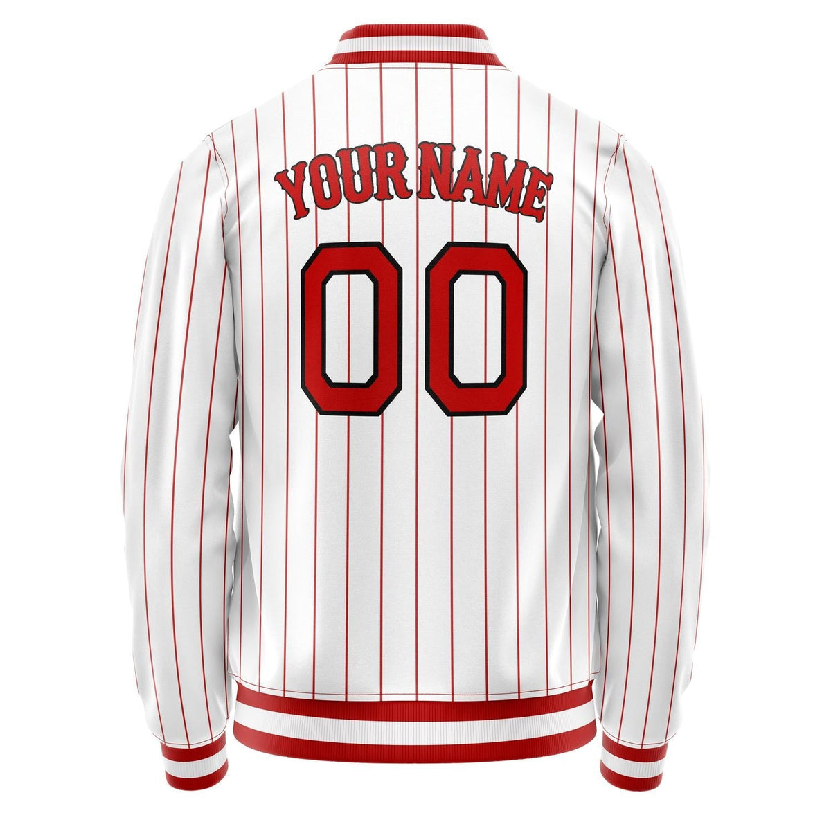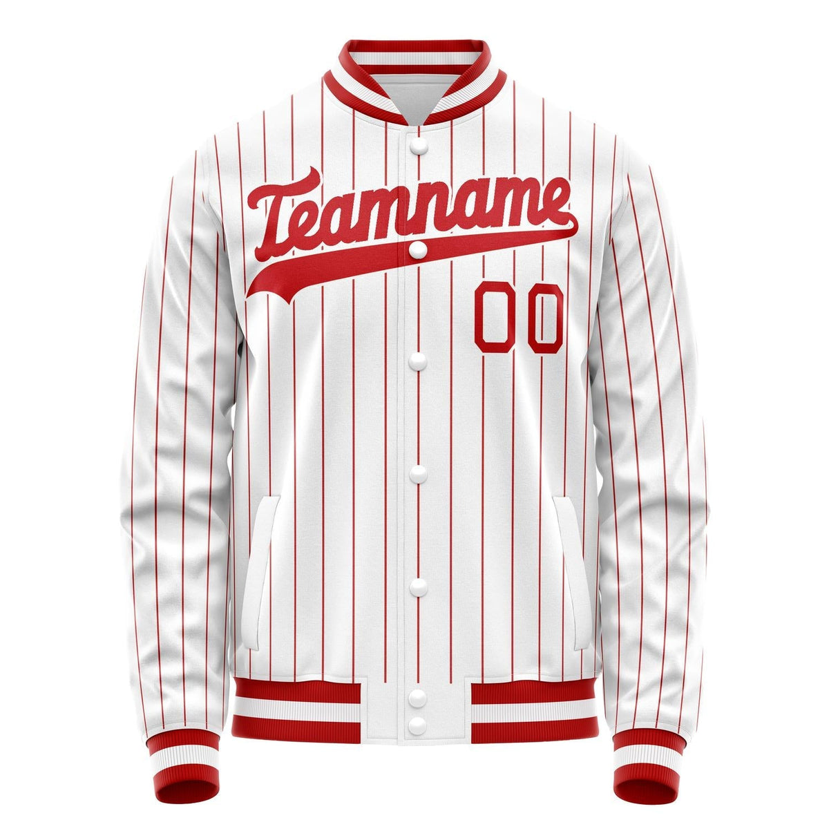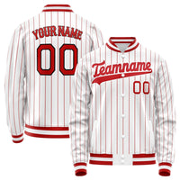 Custom White Red Red Pinstripe Varsity Letterman Jacket