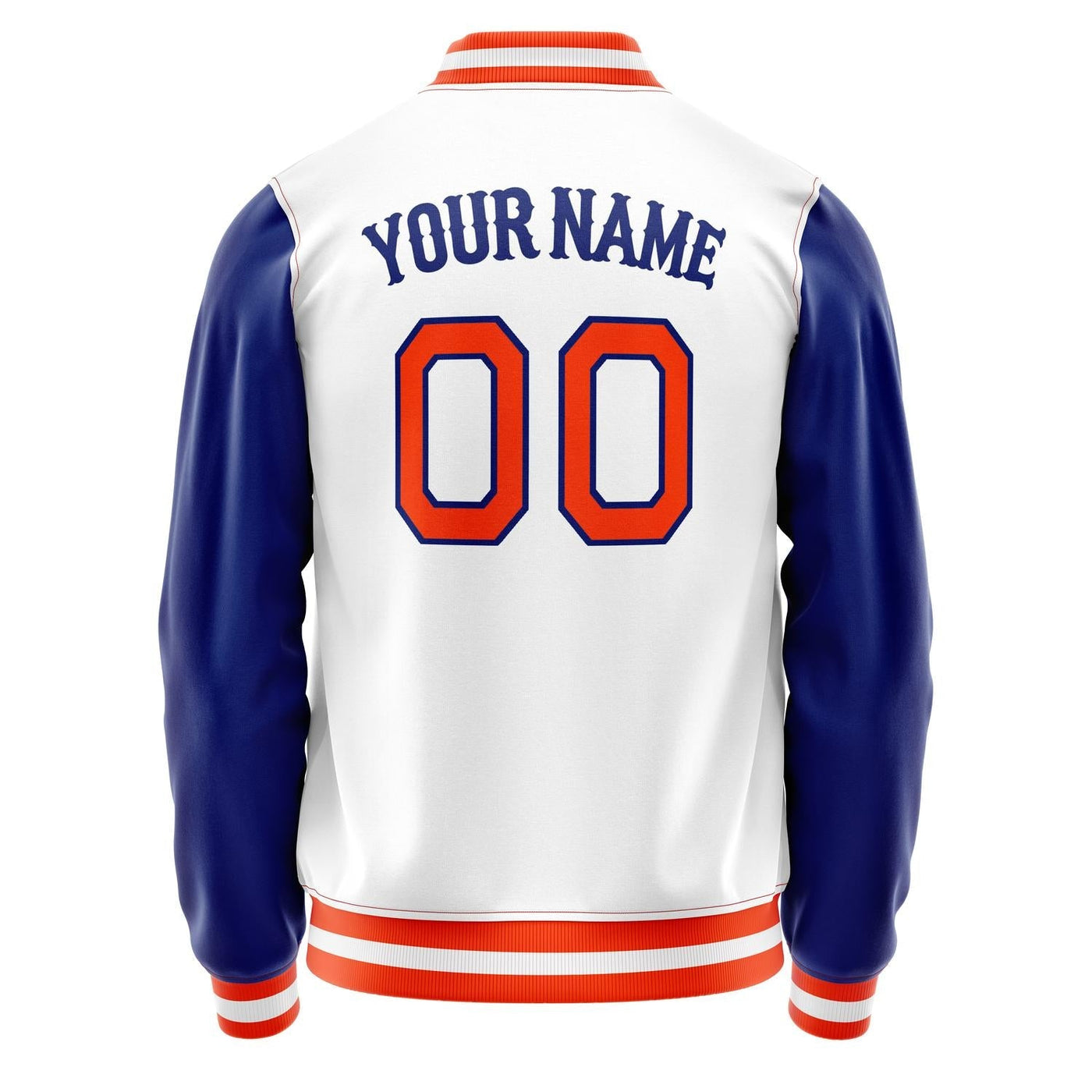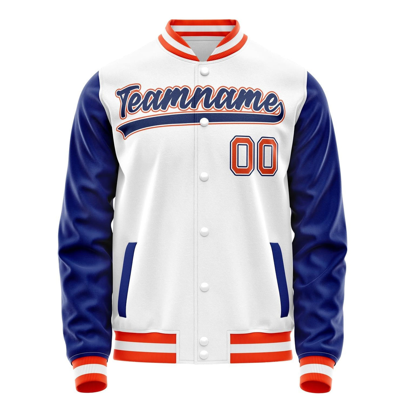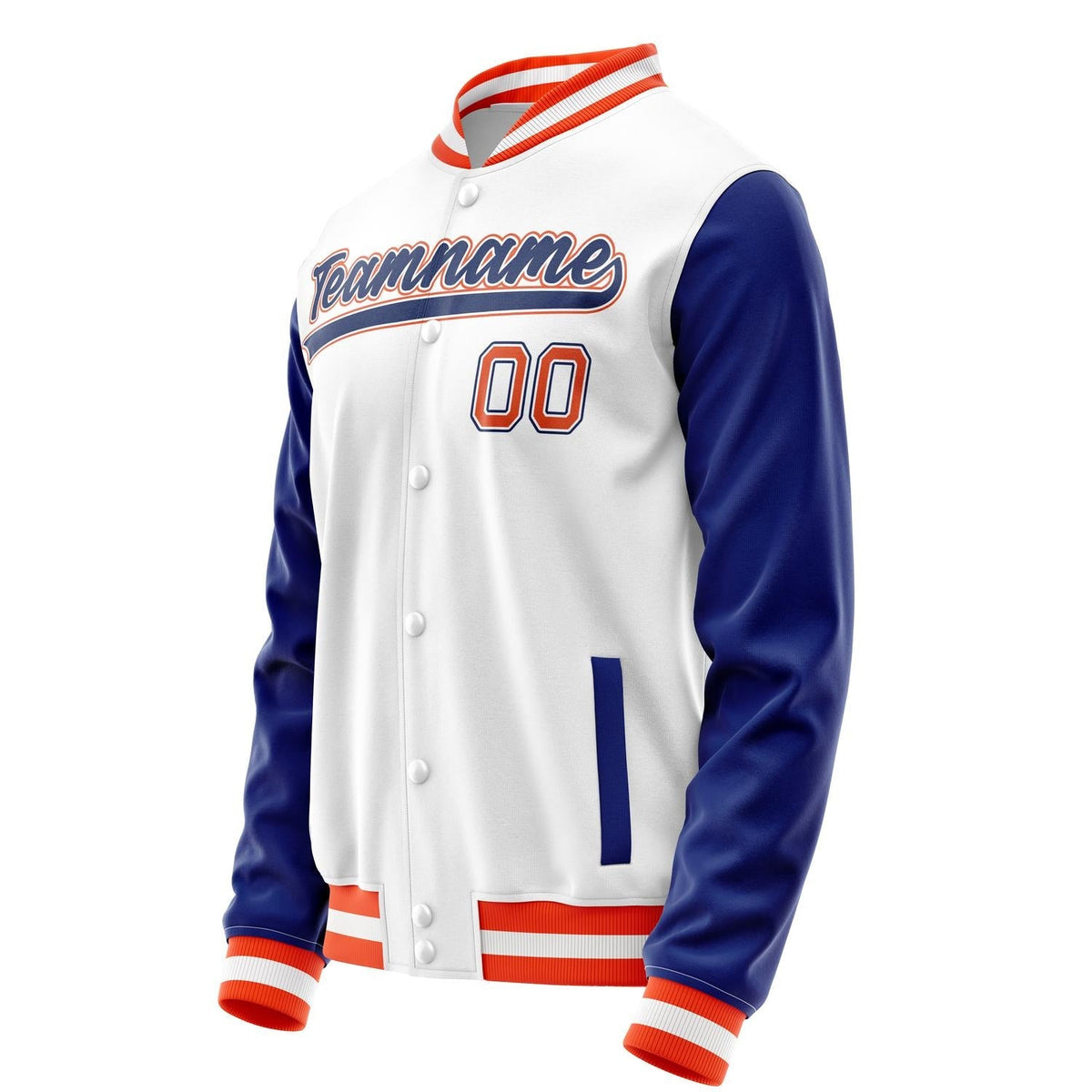 Custom White Royal Solid Color Varsity Letterman Jacket