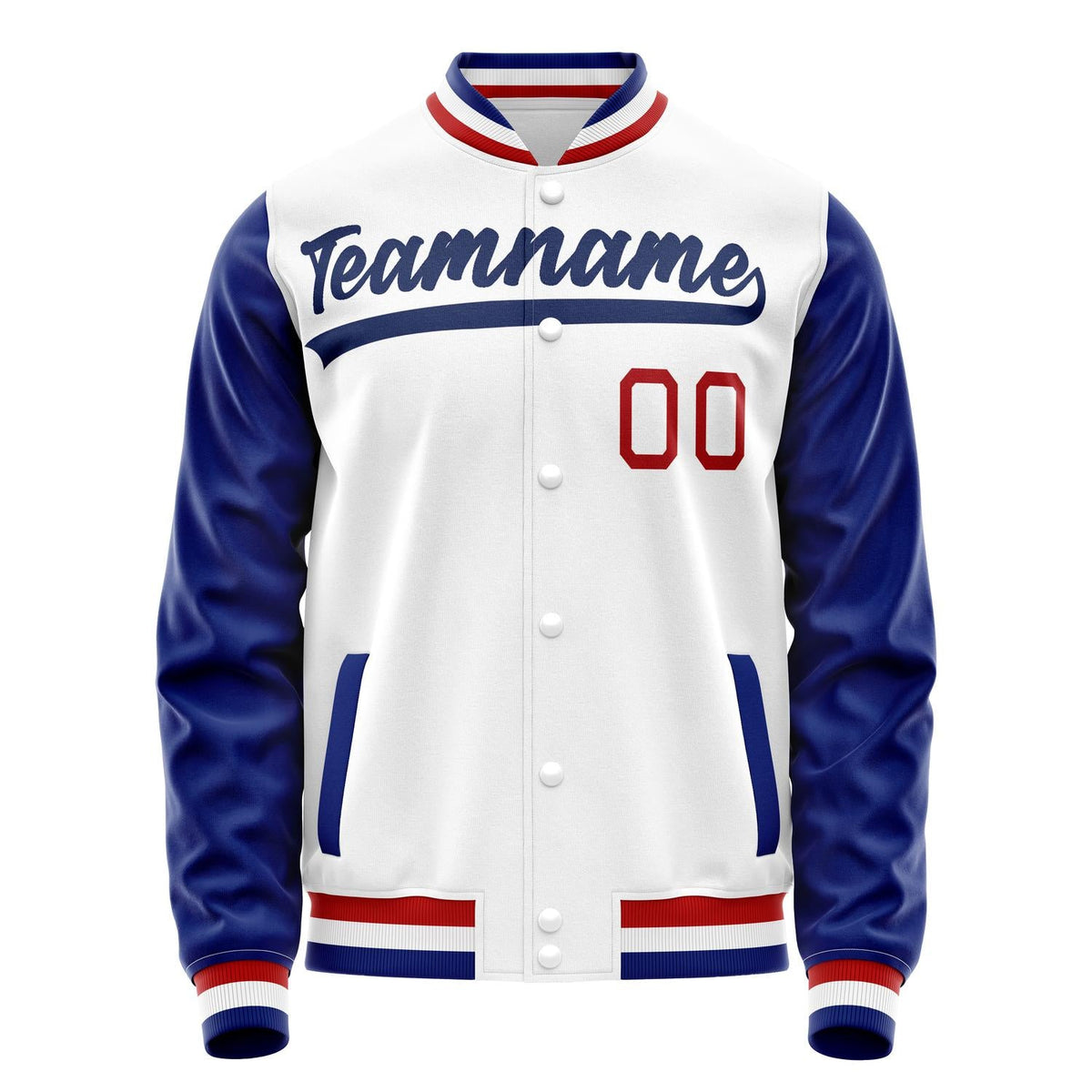 Custom White Royal Solid Color Varsity Letterman Jacket