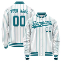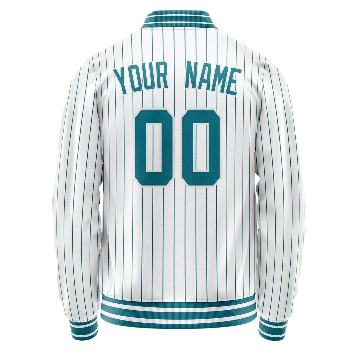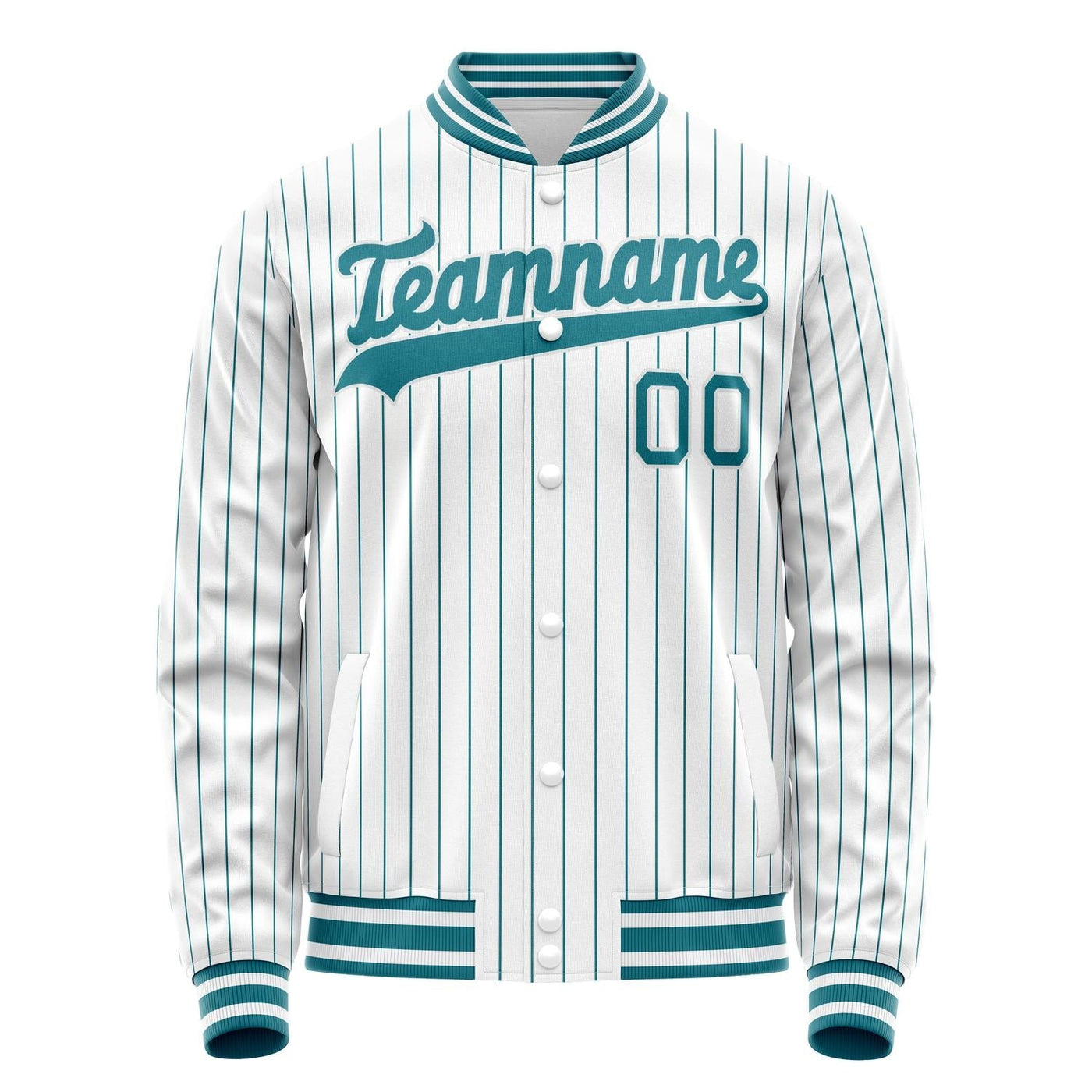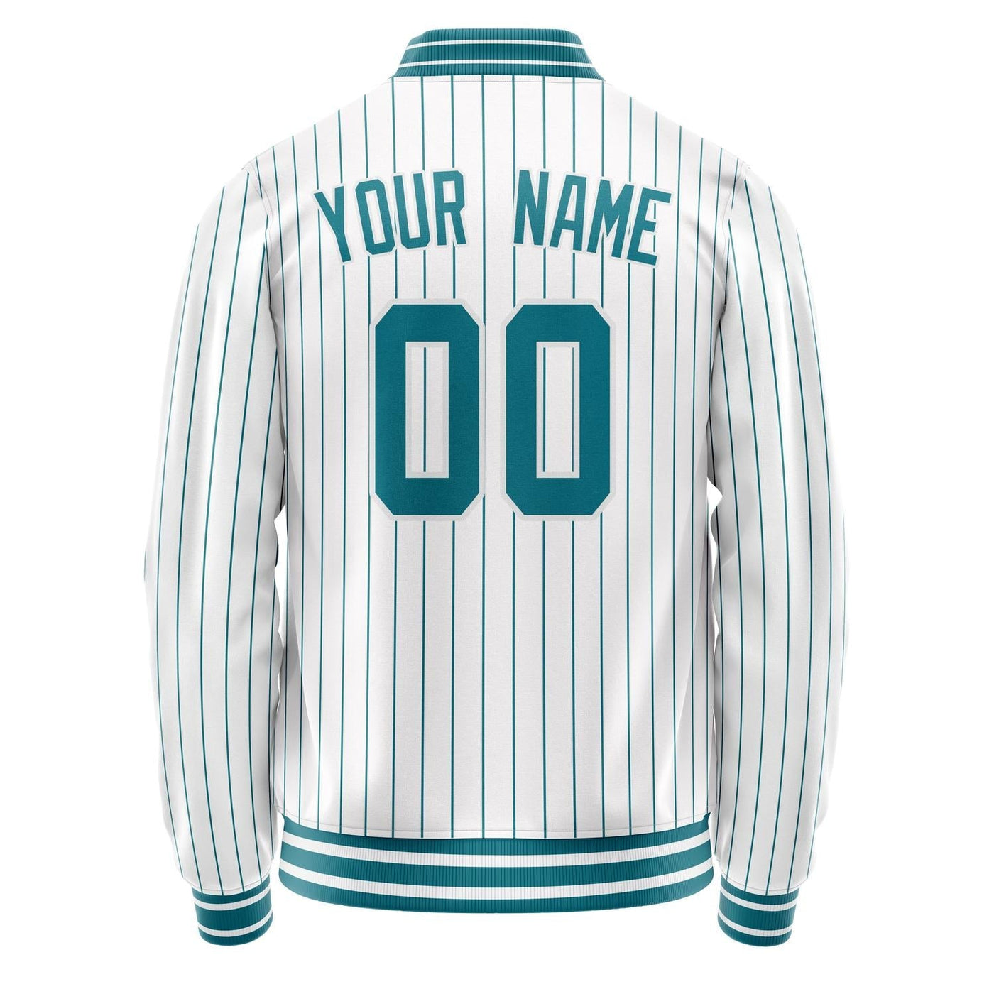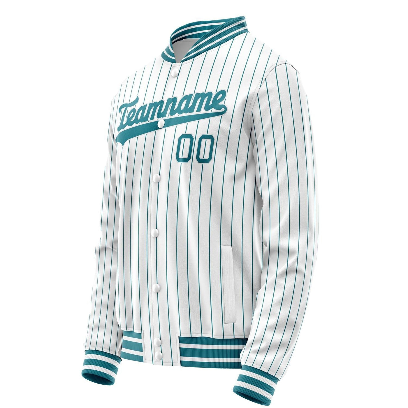 Custom White Teal Teal Pinstripe Varsity Letterman Jacket