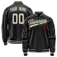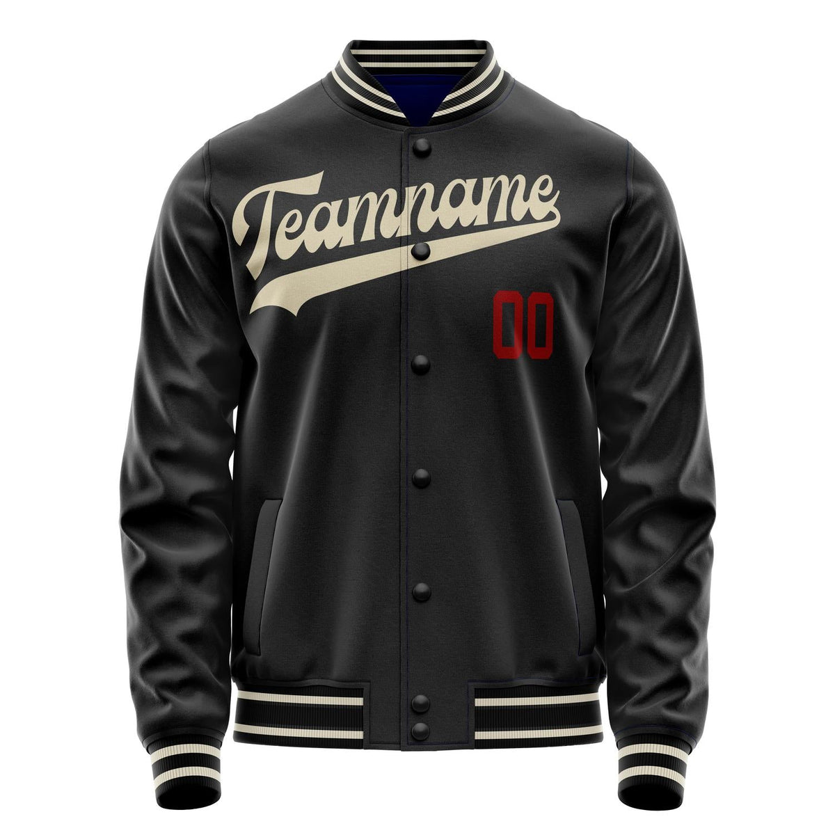 Custom Black Cream Solid Color Varsity Letterman Jacket