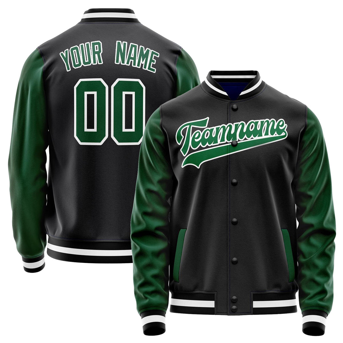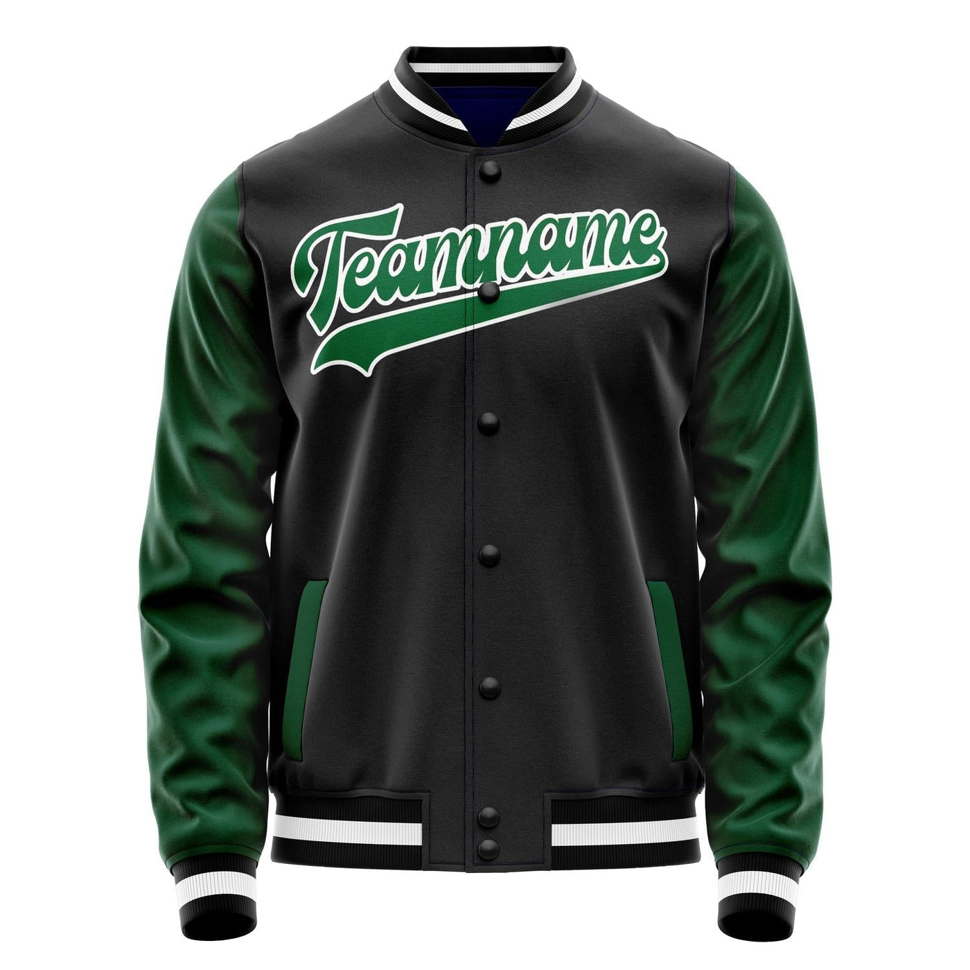 Custom Black Kelly-Green Solid Color Varsity Letterman Jacket