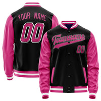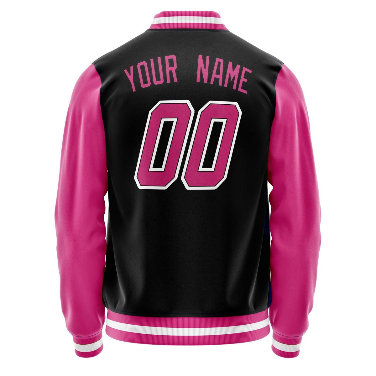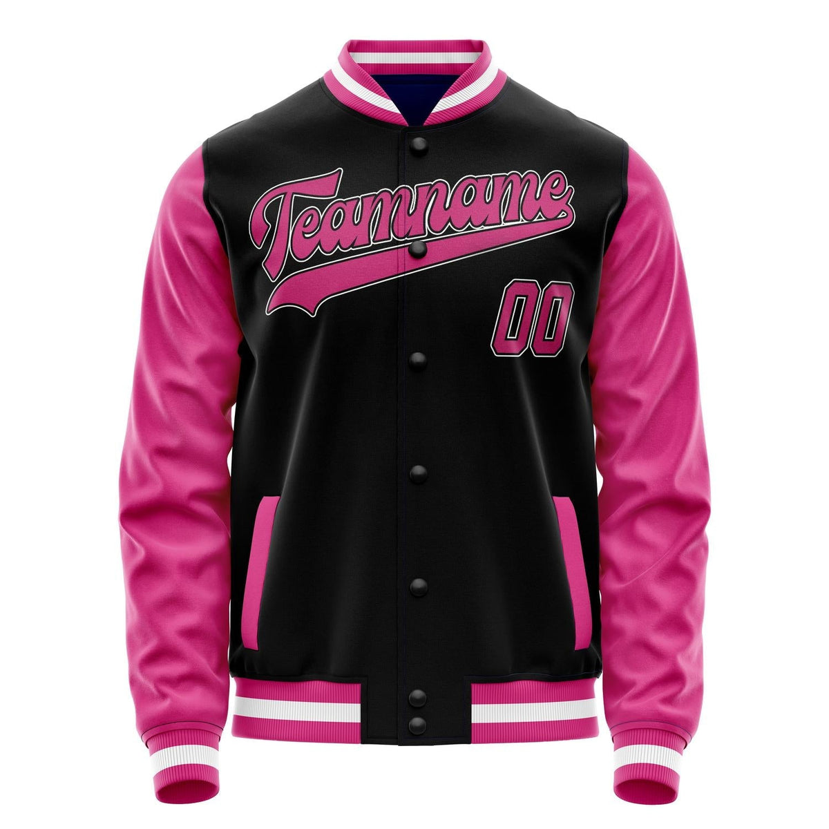 Custom Black Pink Solid Color Varsity Letterman Jacket