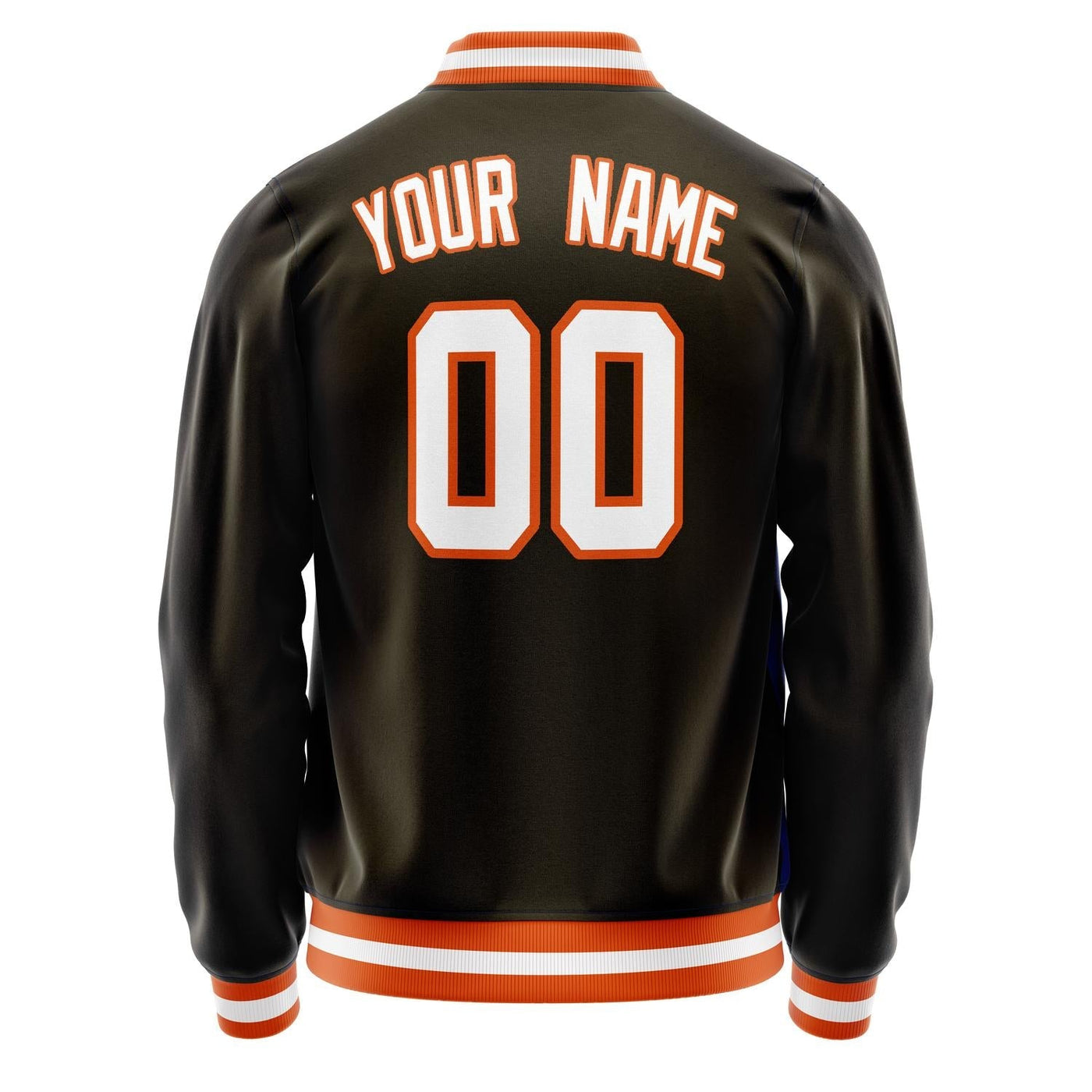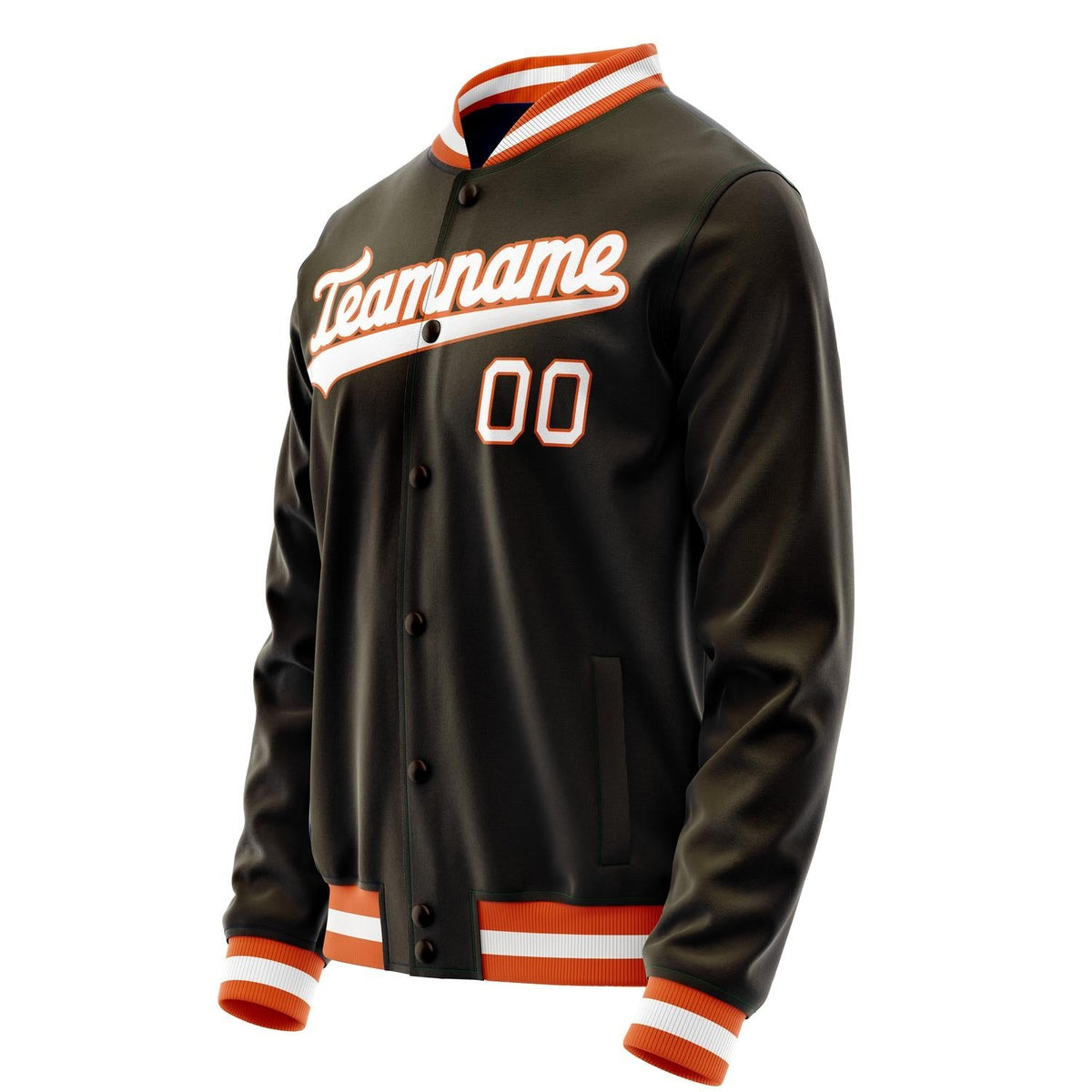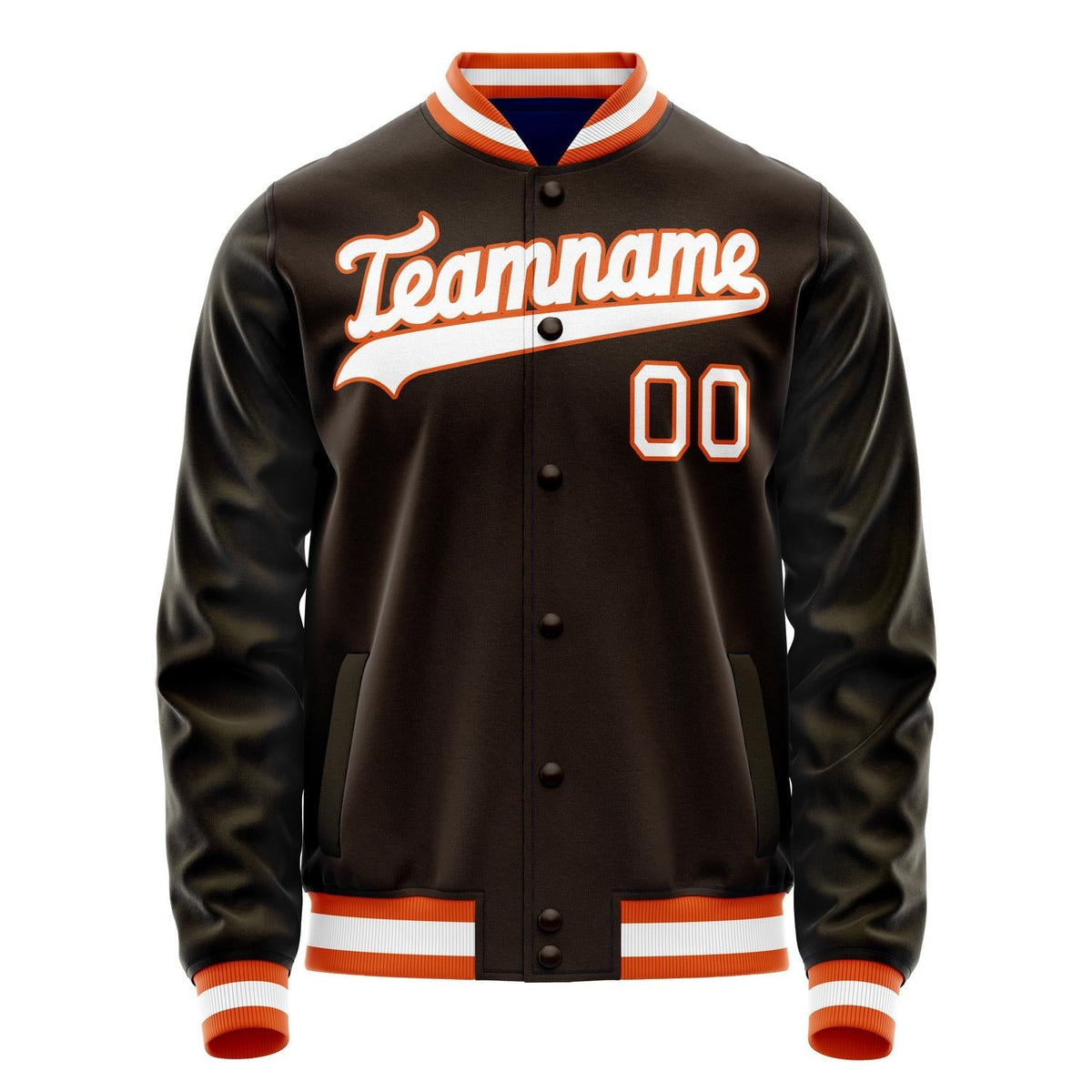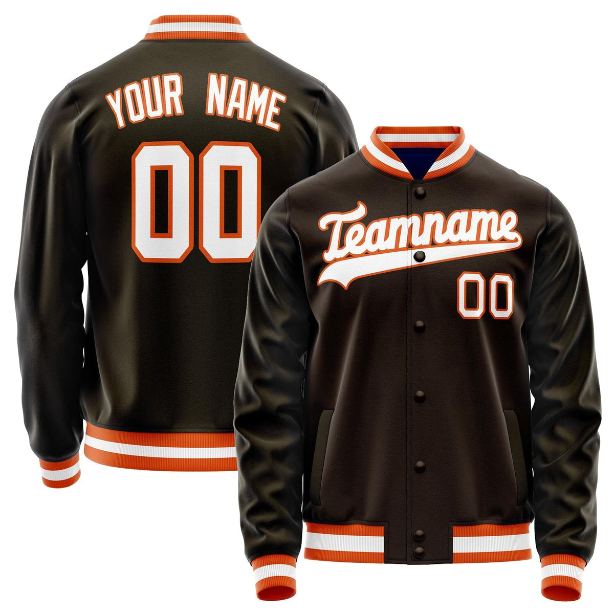 Custom Brown White Solid Color Varsity Letterman Jacket