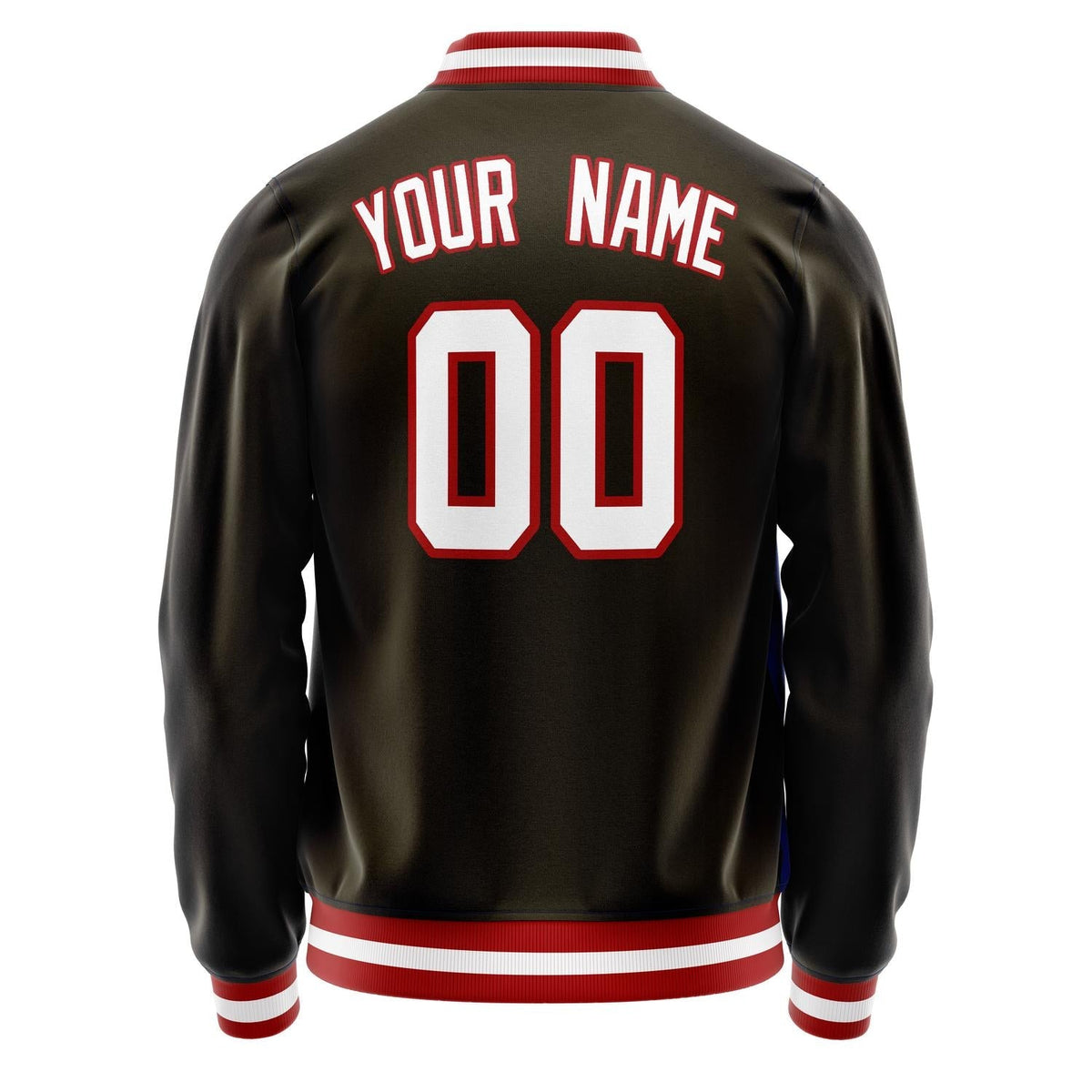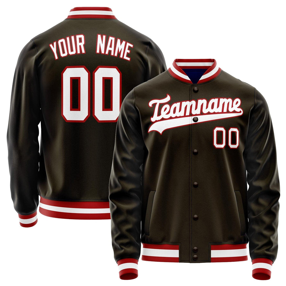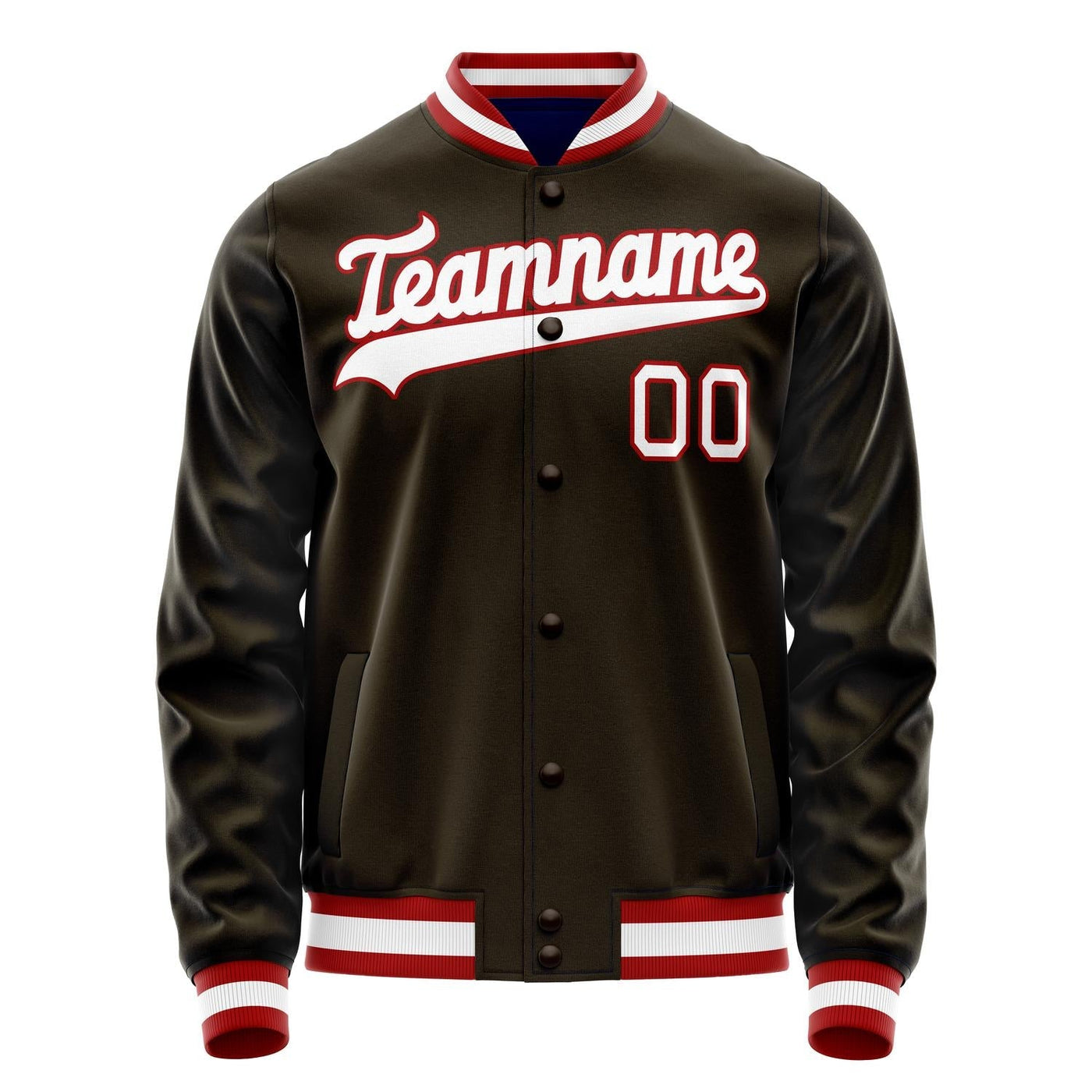Custom Brown White Solid Color Varsity Letterman Jacket