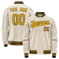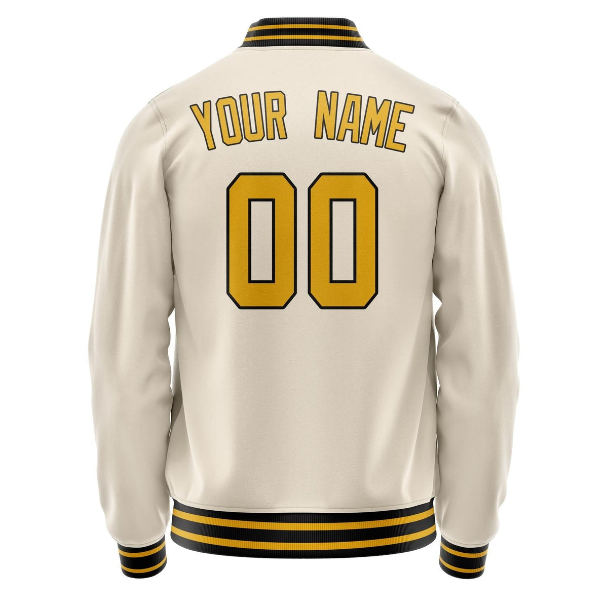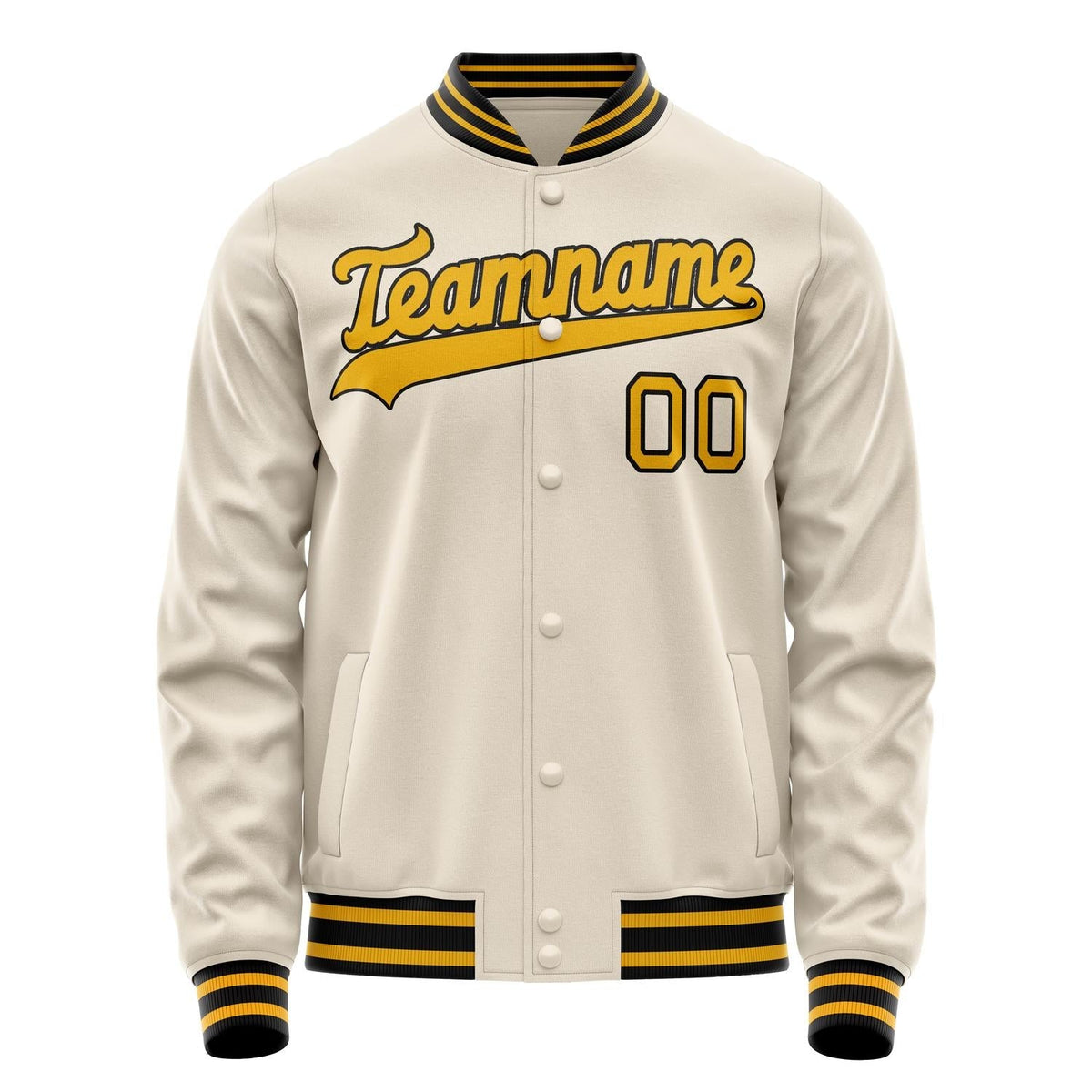 Custom Cream Gold Solid Color Varsity Letterman Jacket