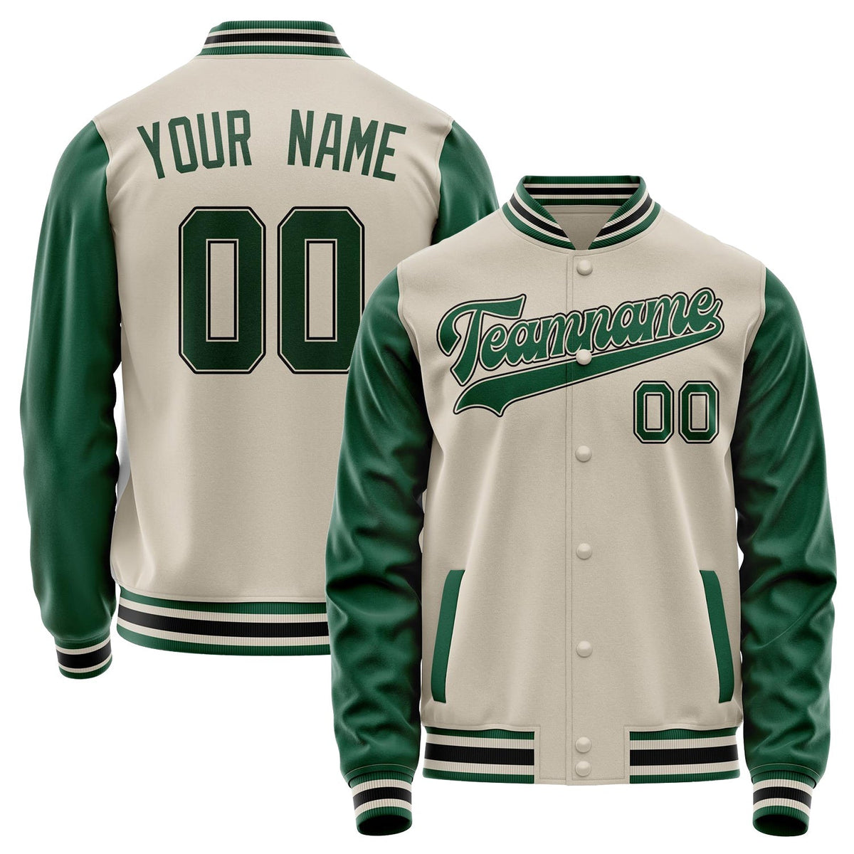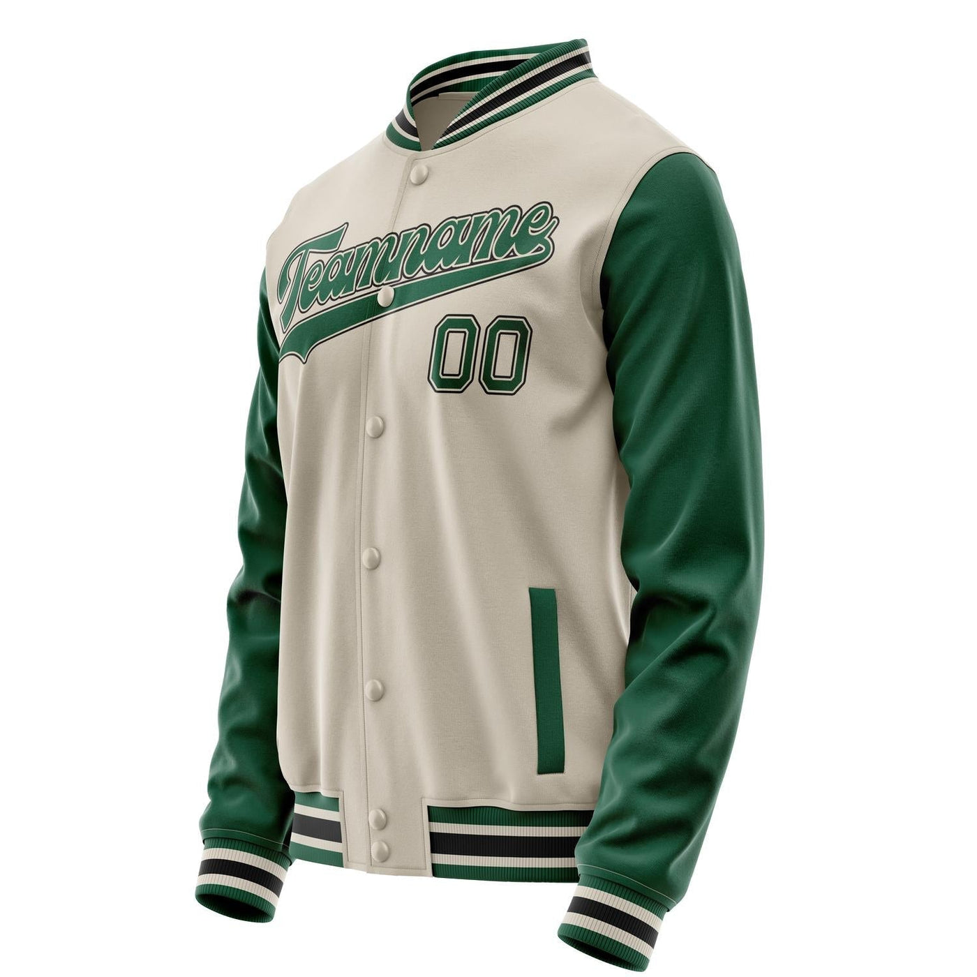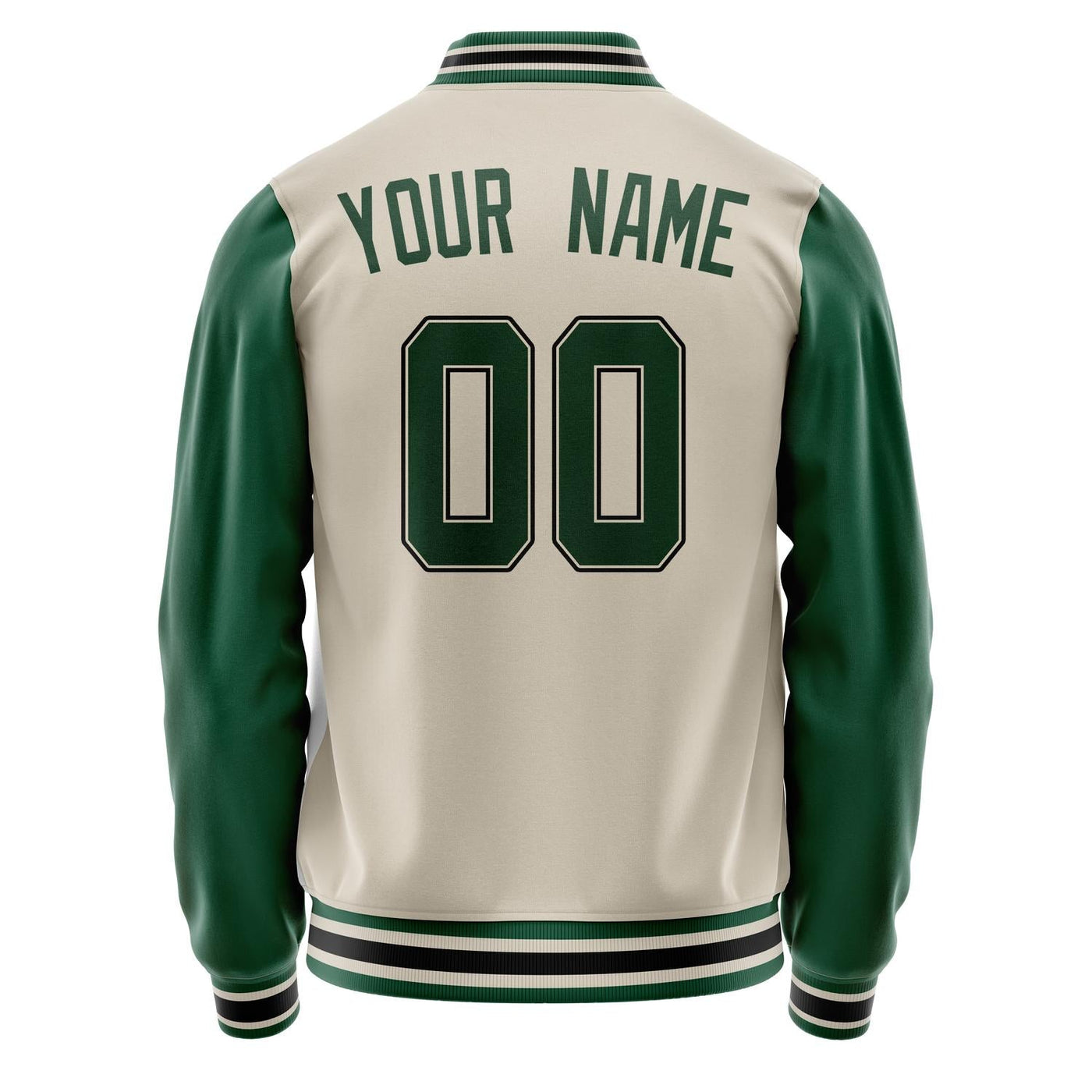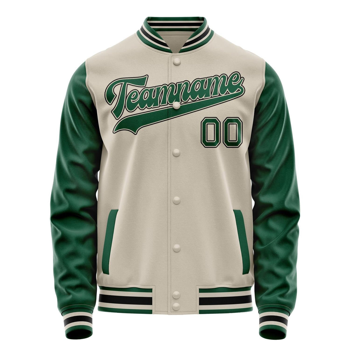 Custom Cream Kelly-Green Solid Color Varsity Letterman Jacket