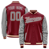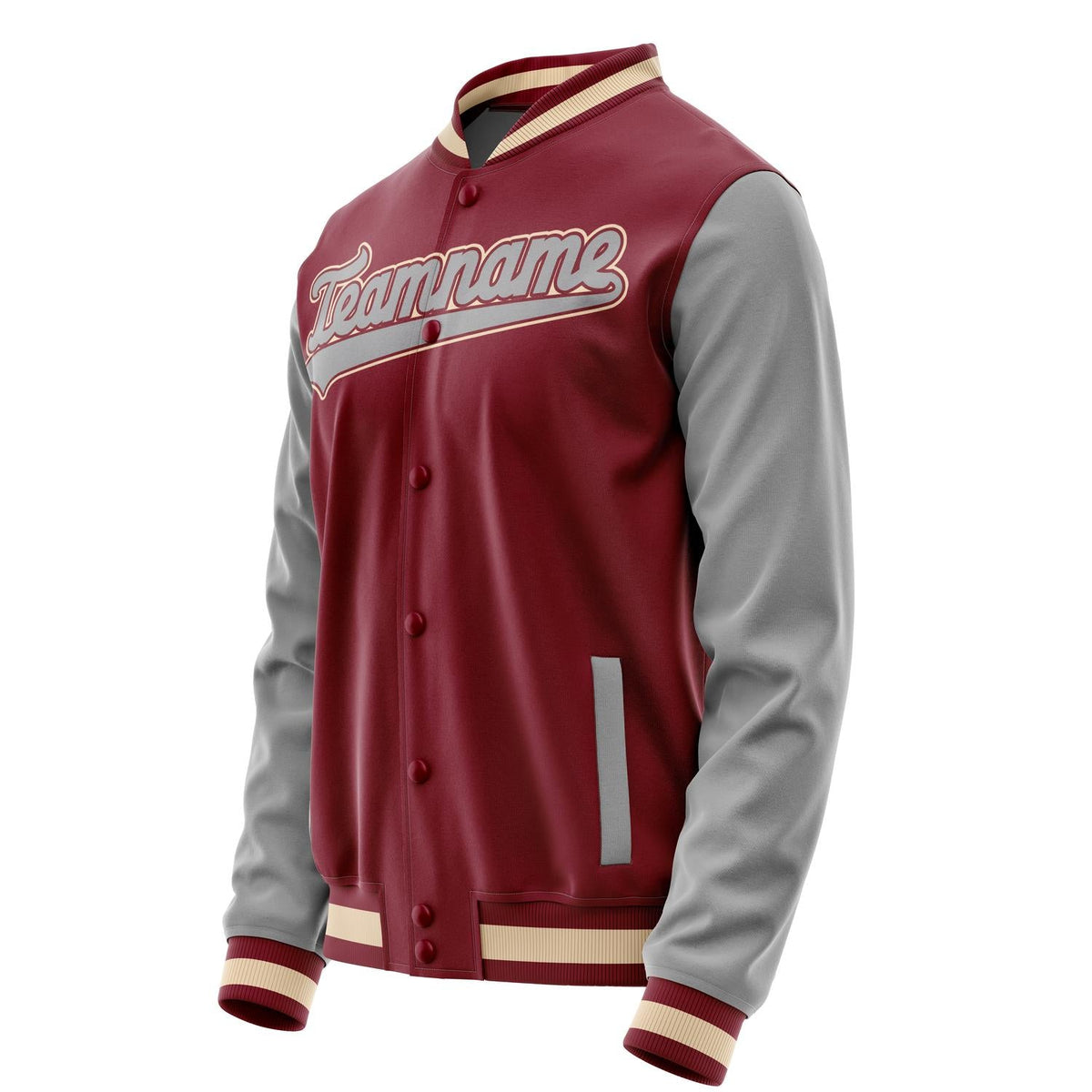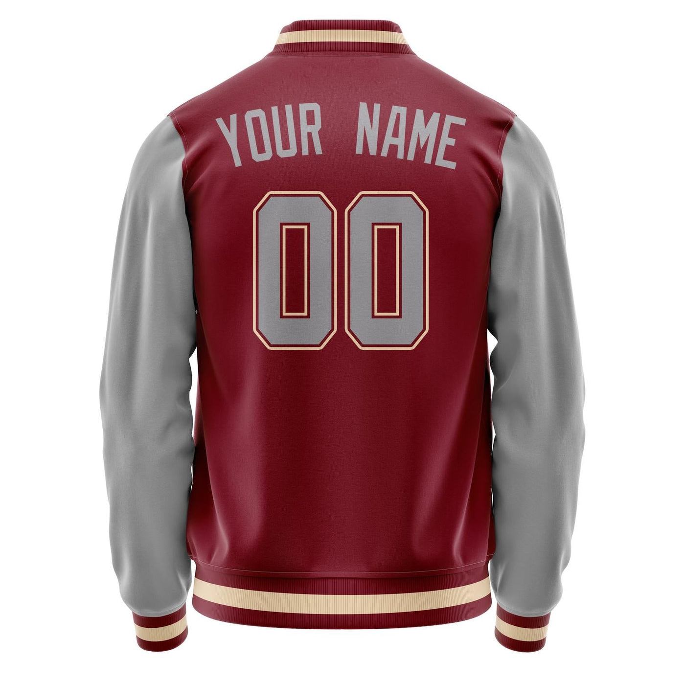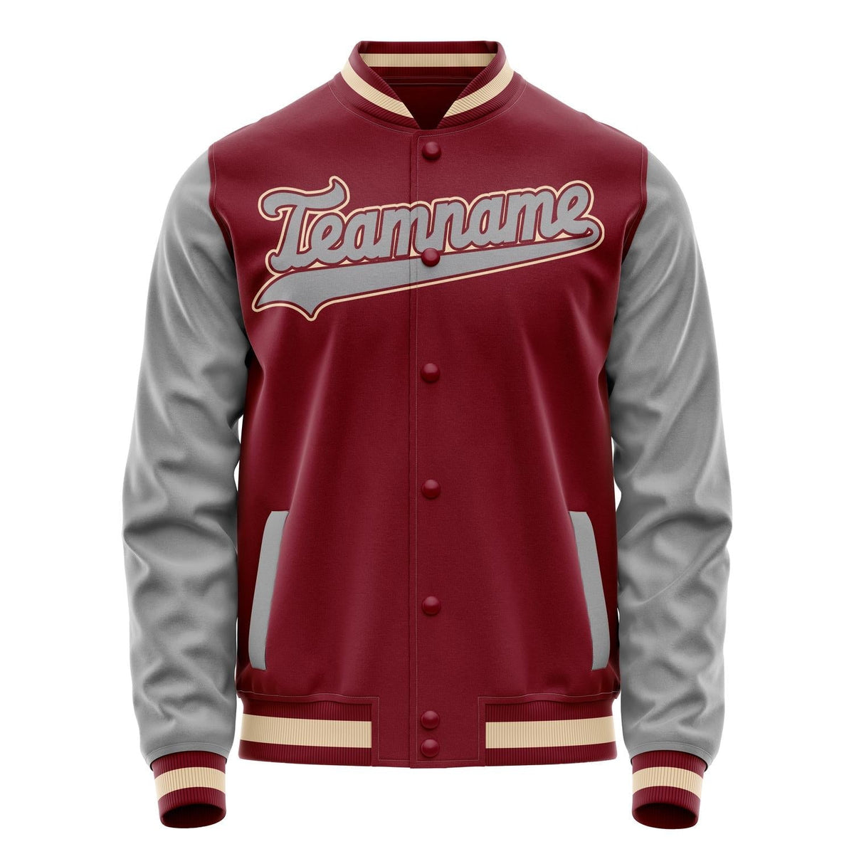 Custom Crimson Gray Solid Color Varsity Letterman Jacket