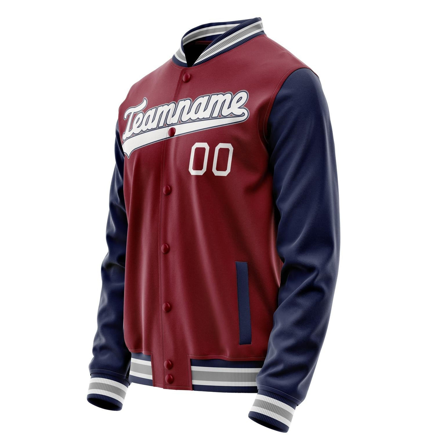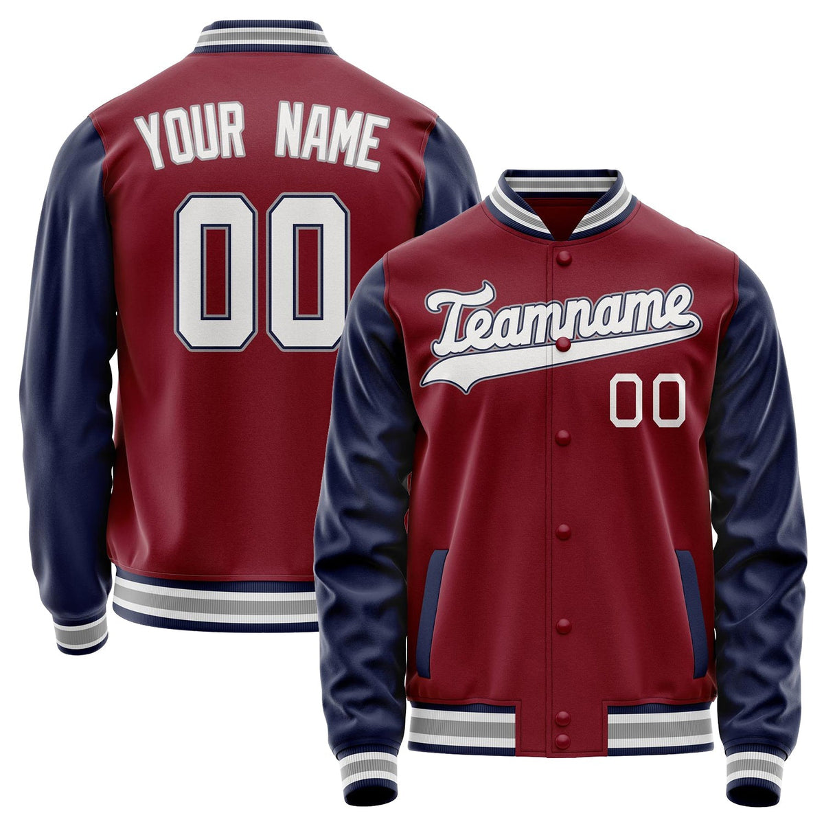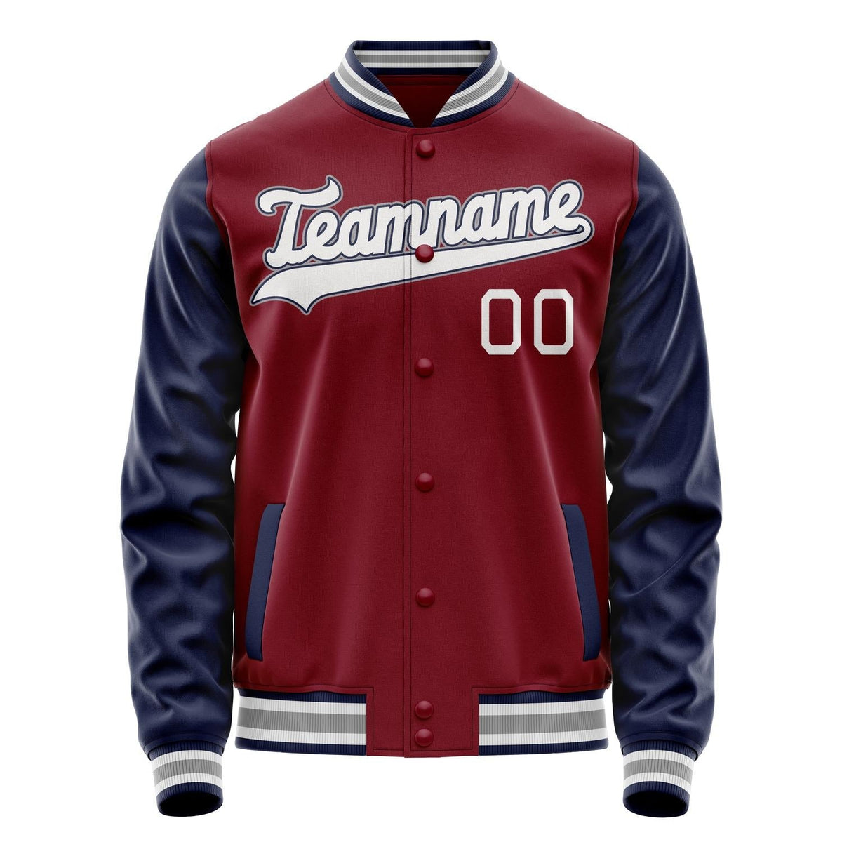 Custom Crimson Navy Solid Color Varsity Letterman Jacket