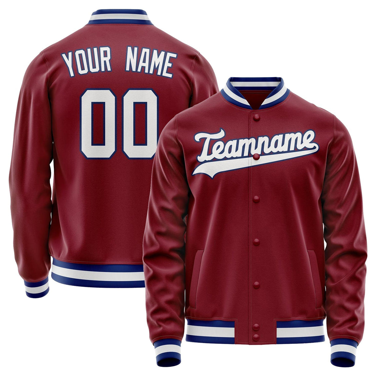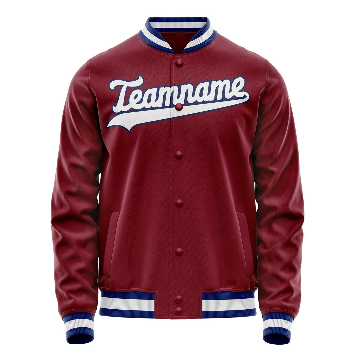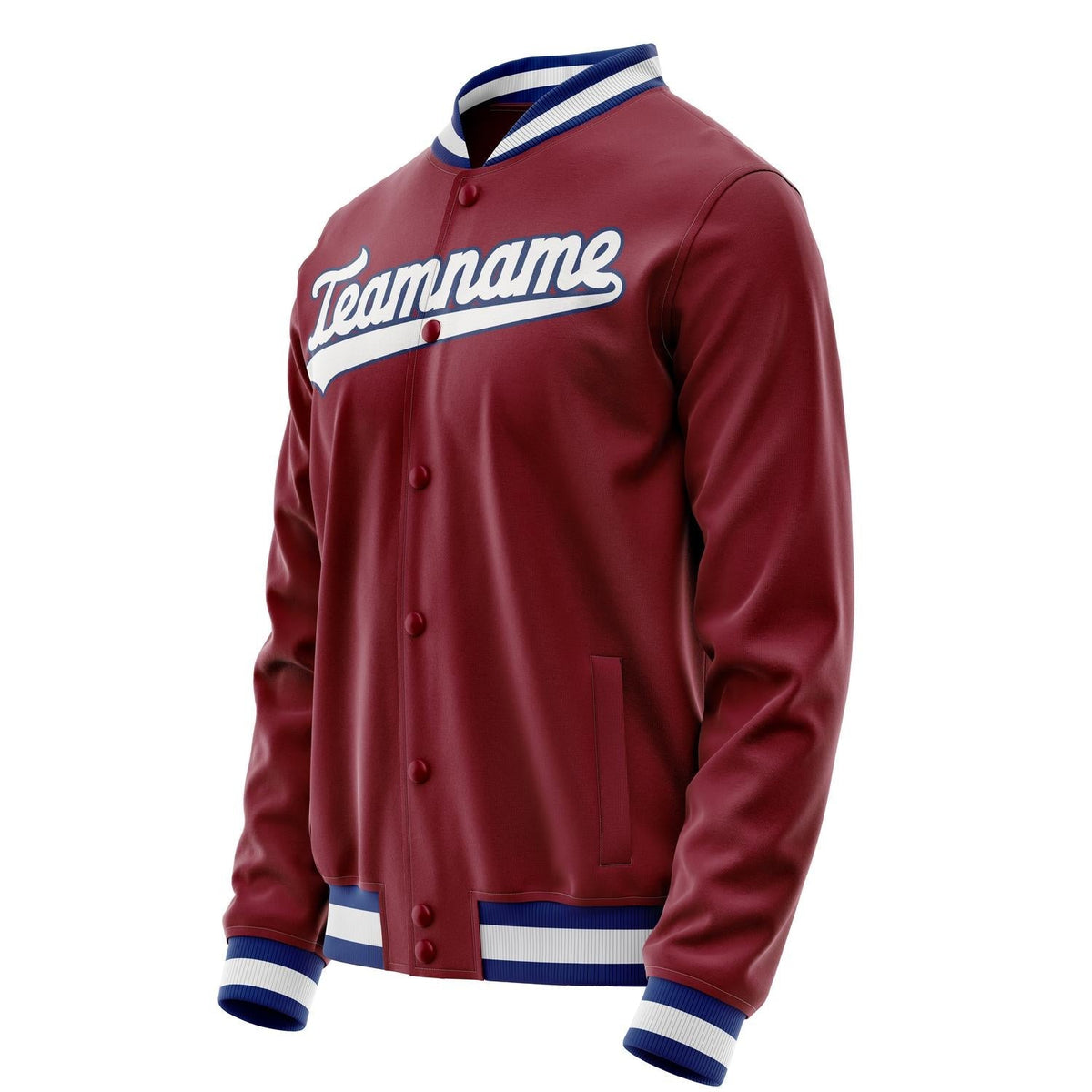 Custom Crimson White Solid Color Varsity Letterman Jacket