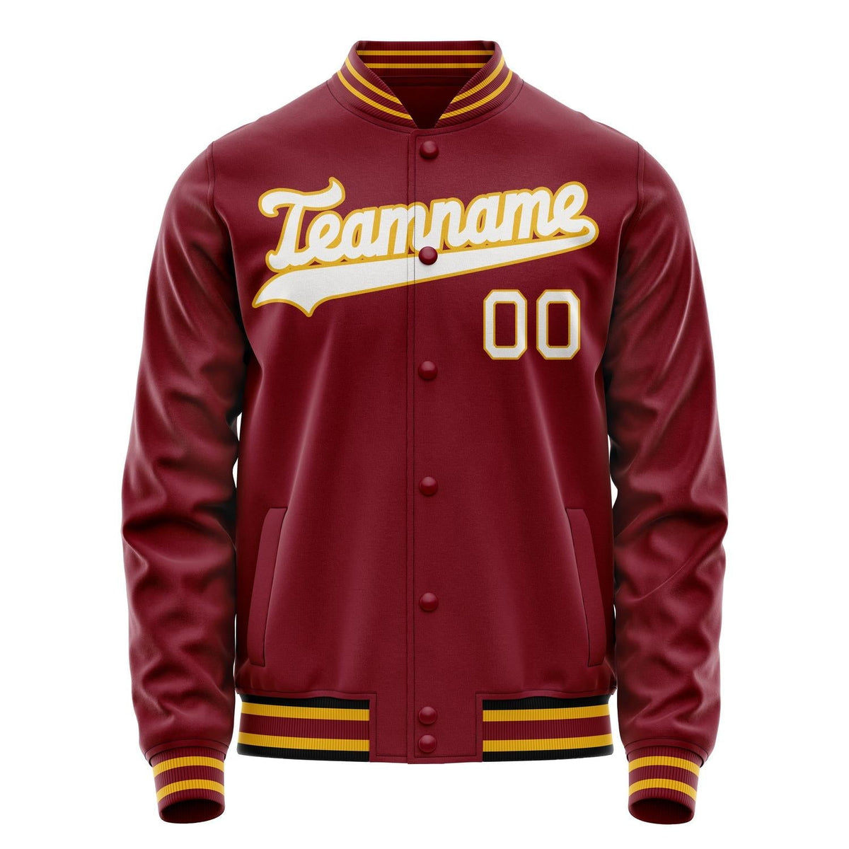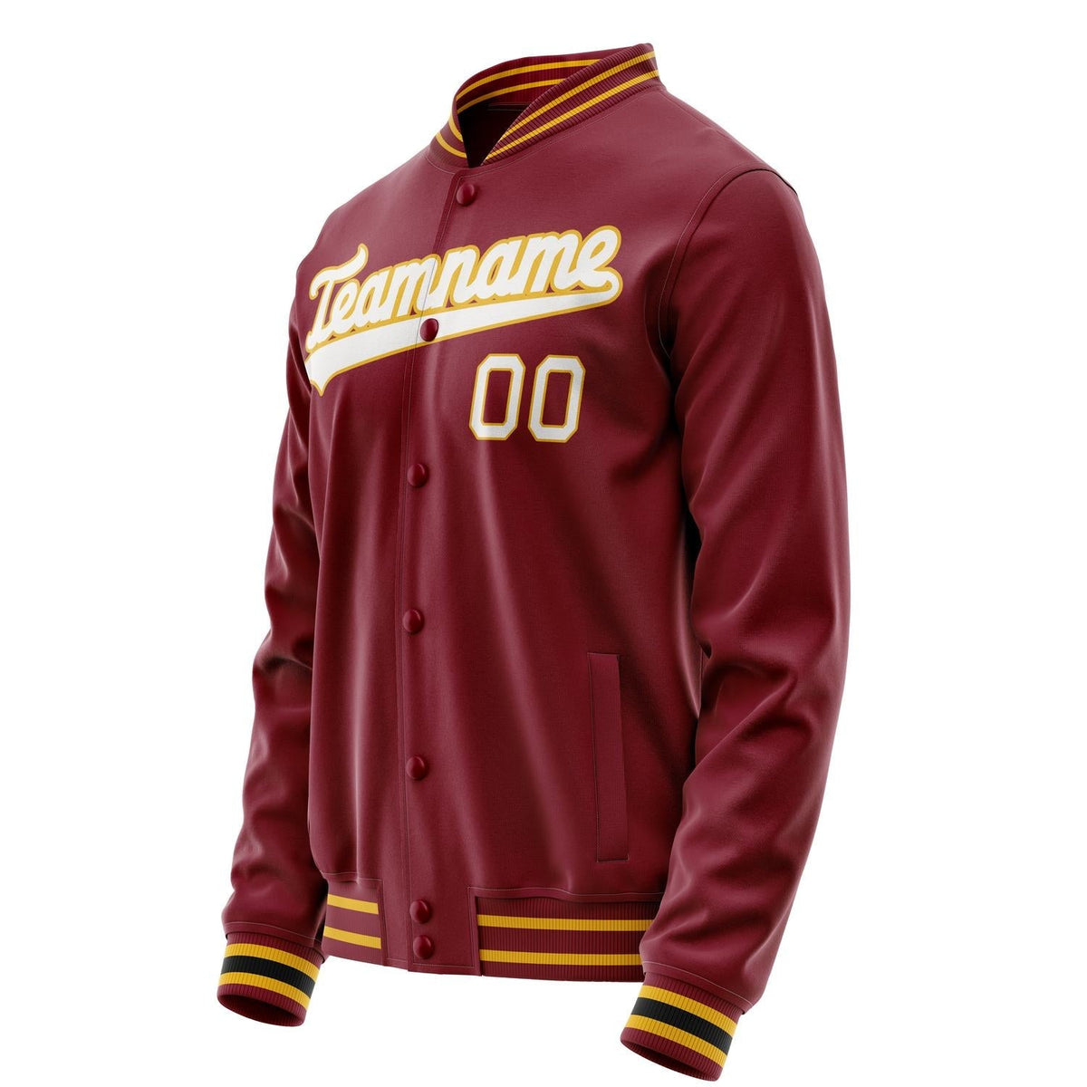 Custom Crimson White Solid Color Varsity Letterman Jacket