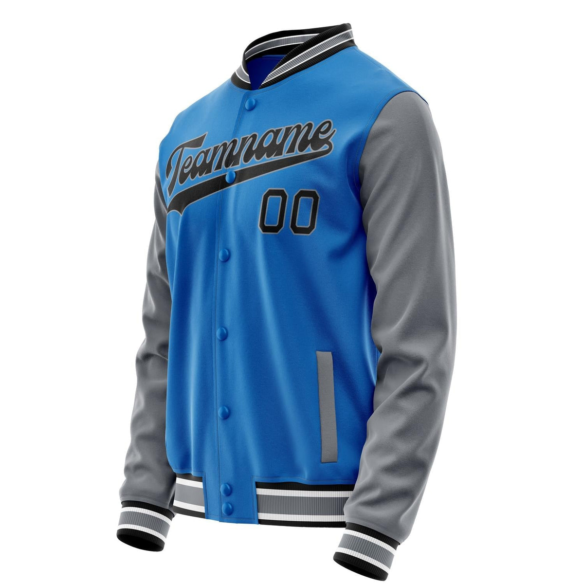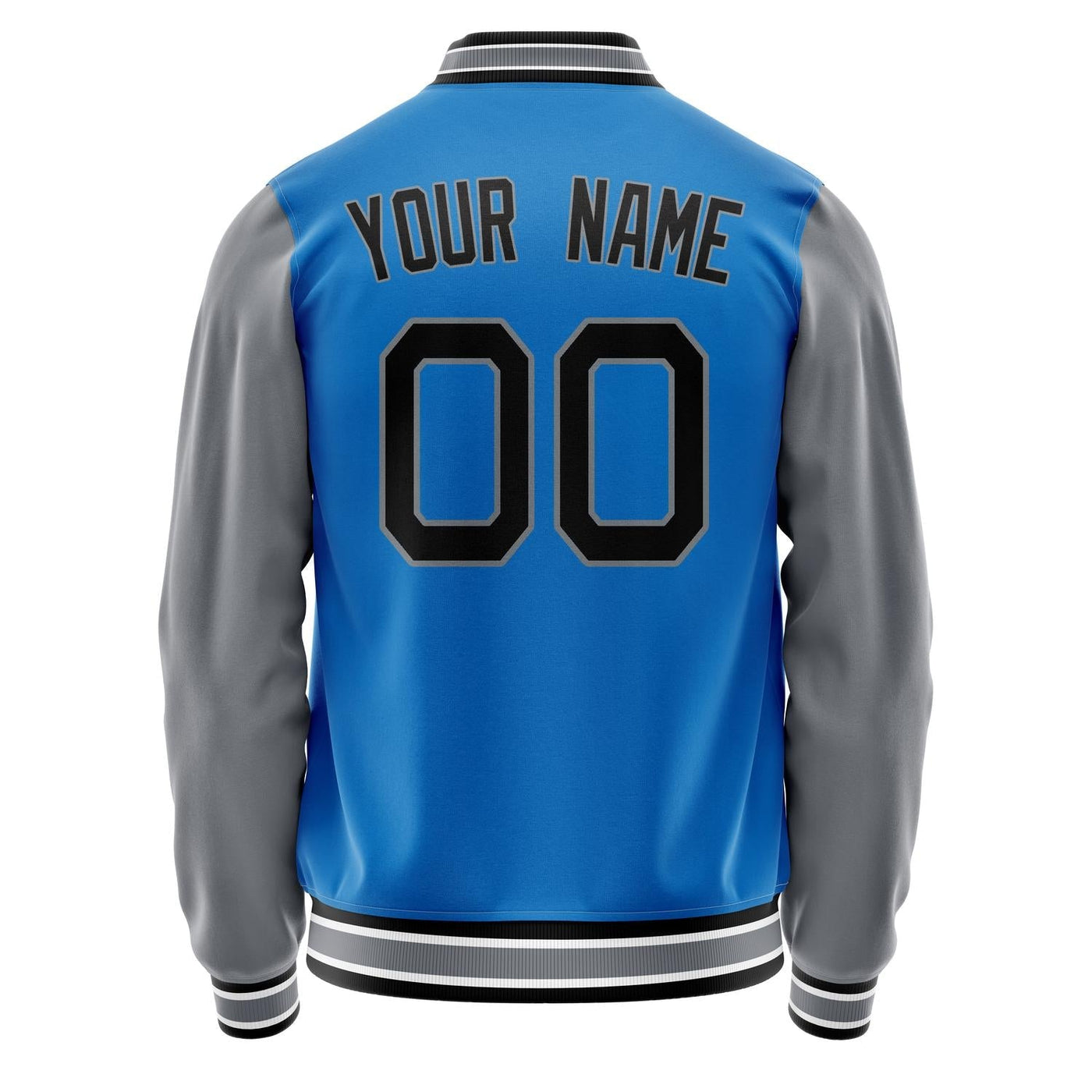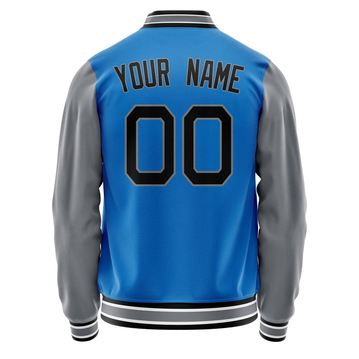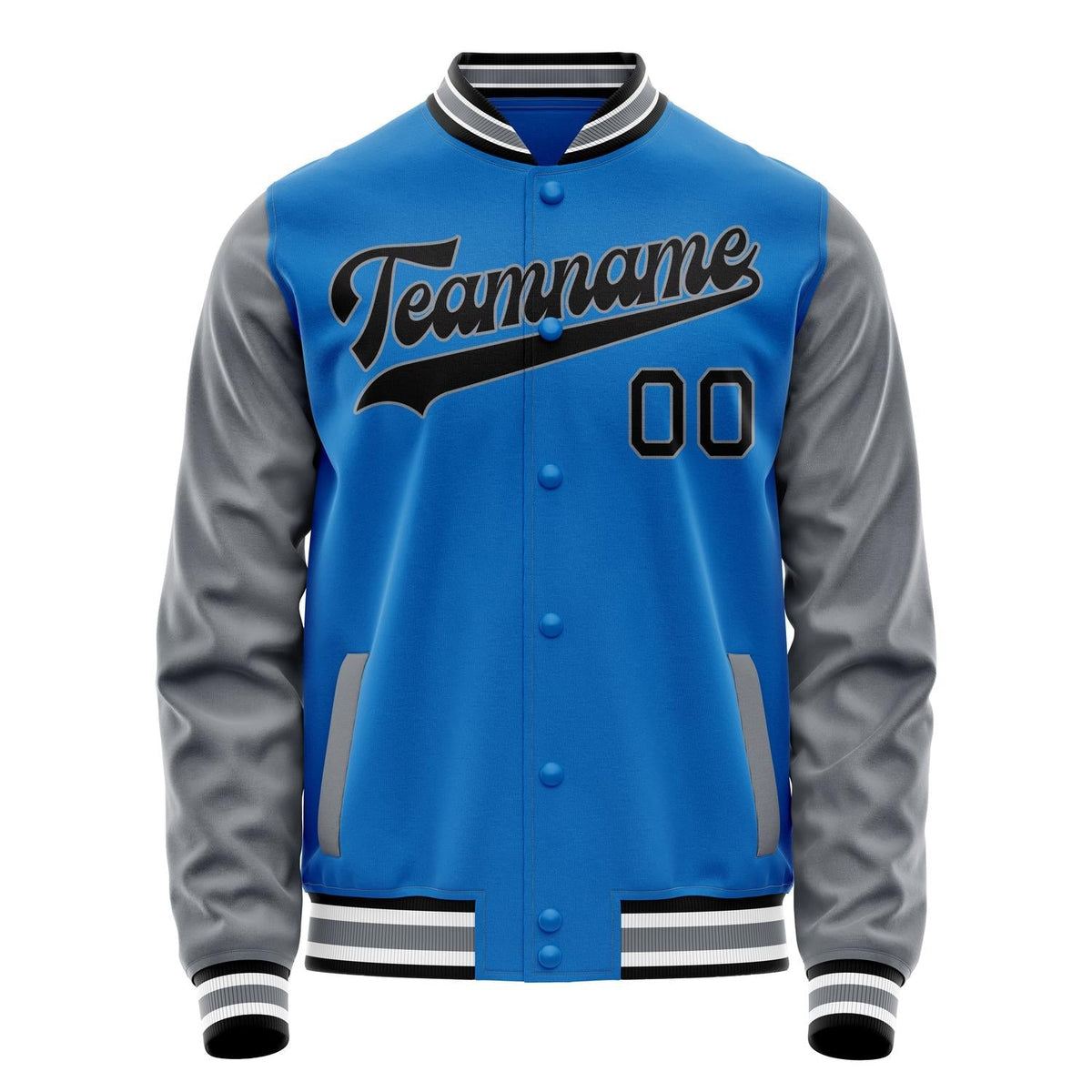 Custom Electric-Blue Gray Solid Color Varsity Letterman Jacket