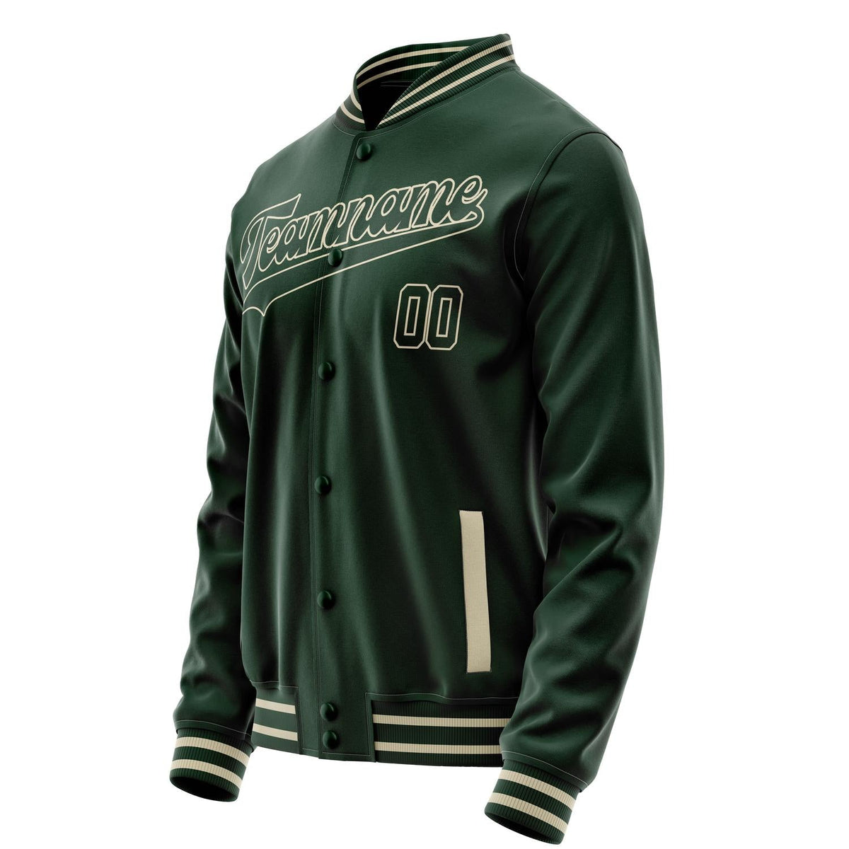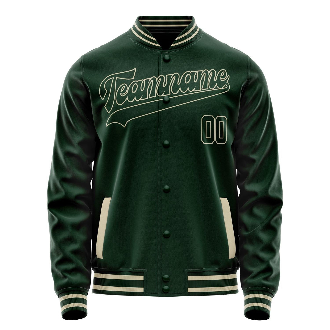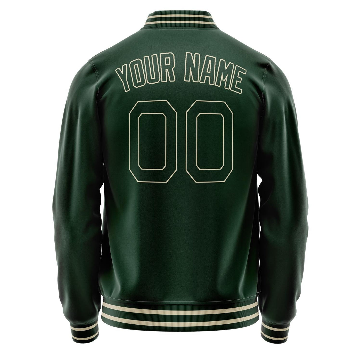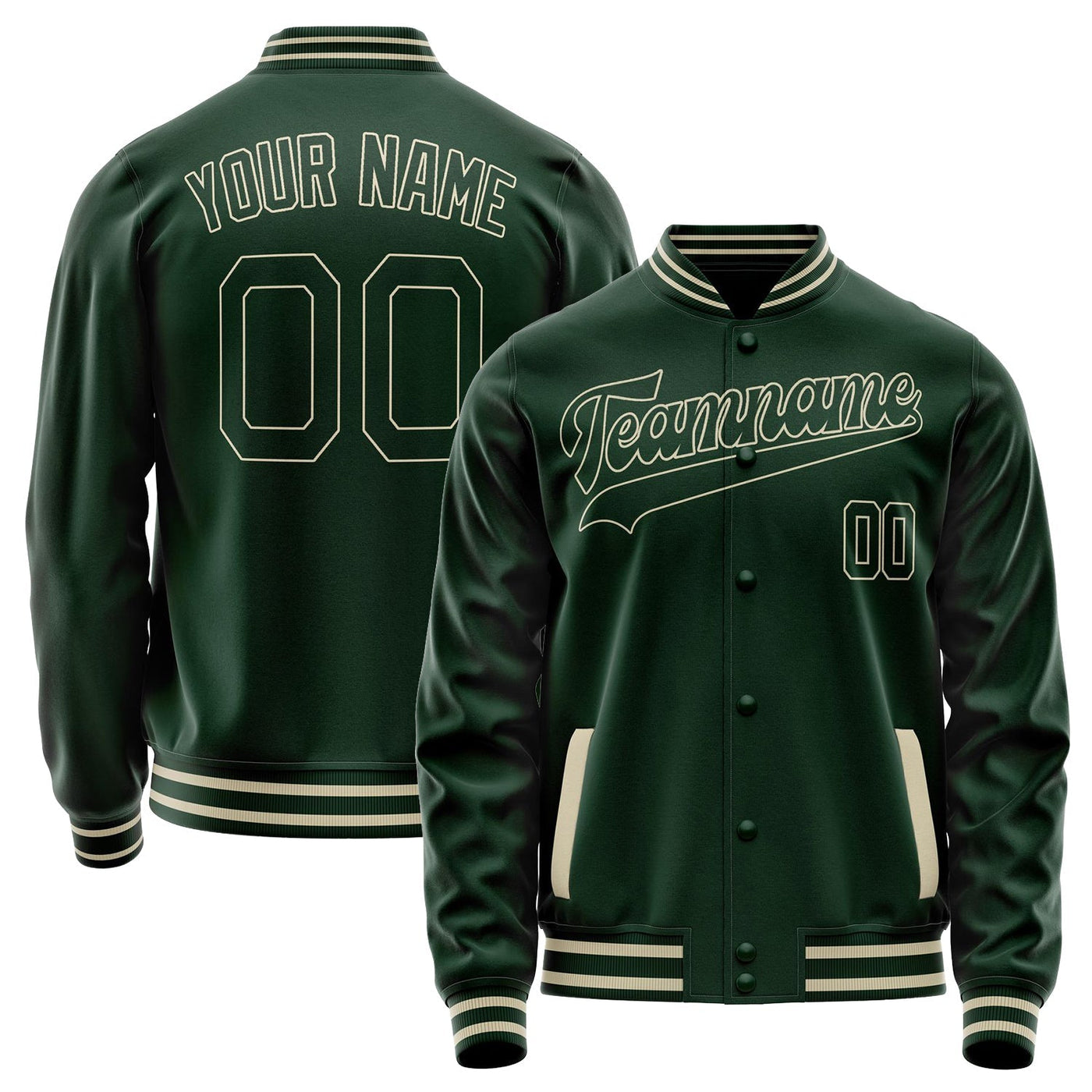 Custom Green Cream Solid Color Varsity Letterman Jacket