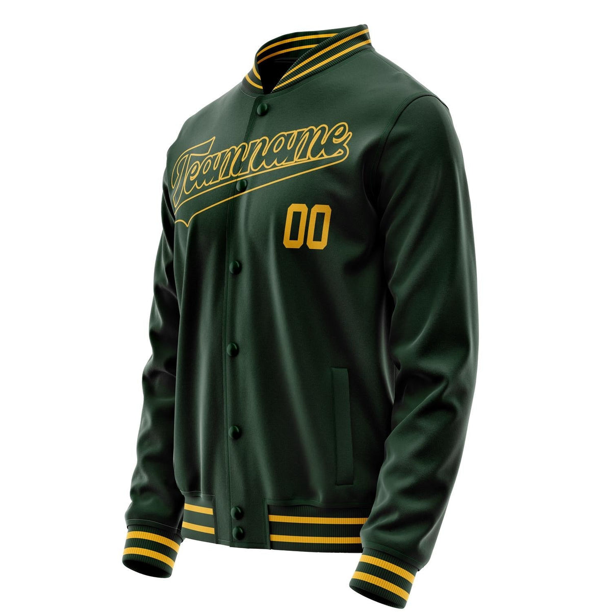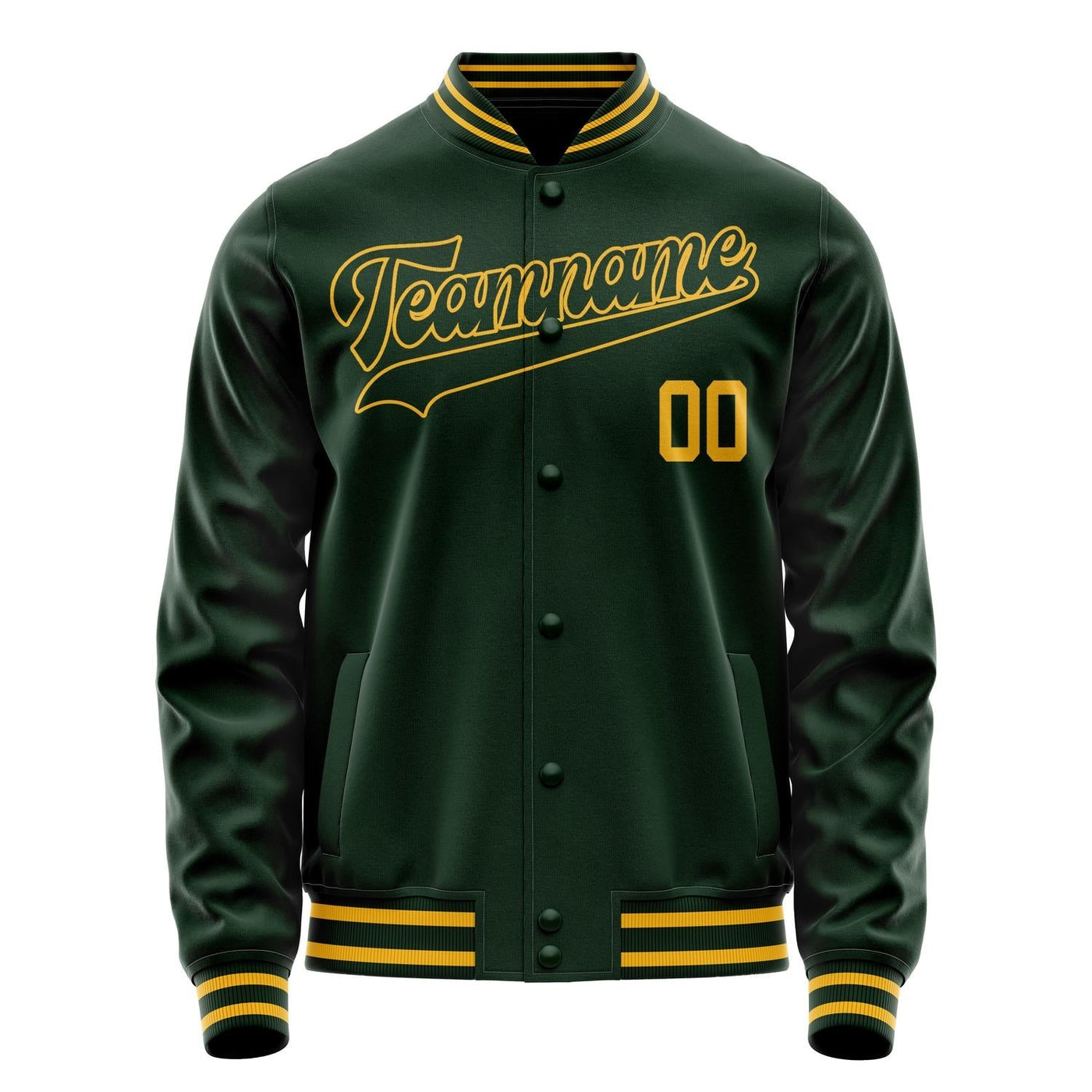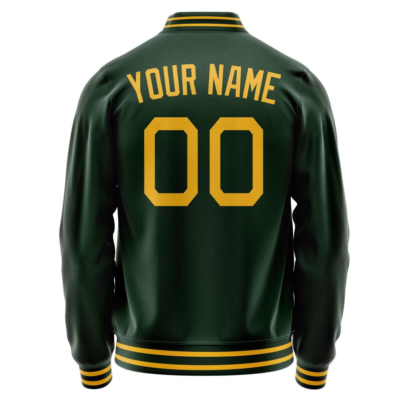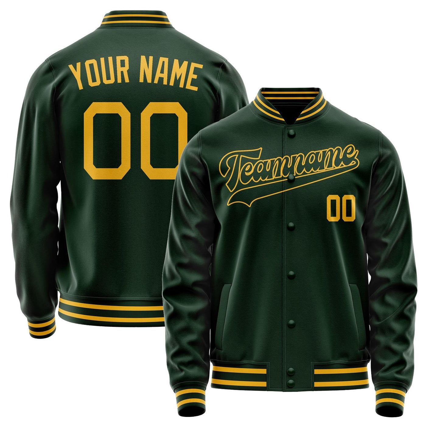Custom Green Gold Solid Color Varsity Letterman Jacket
