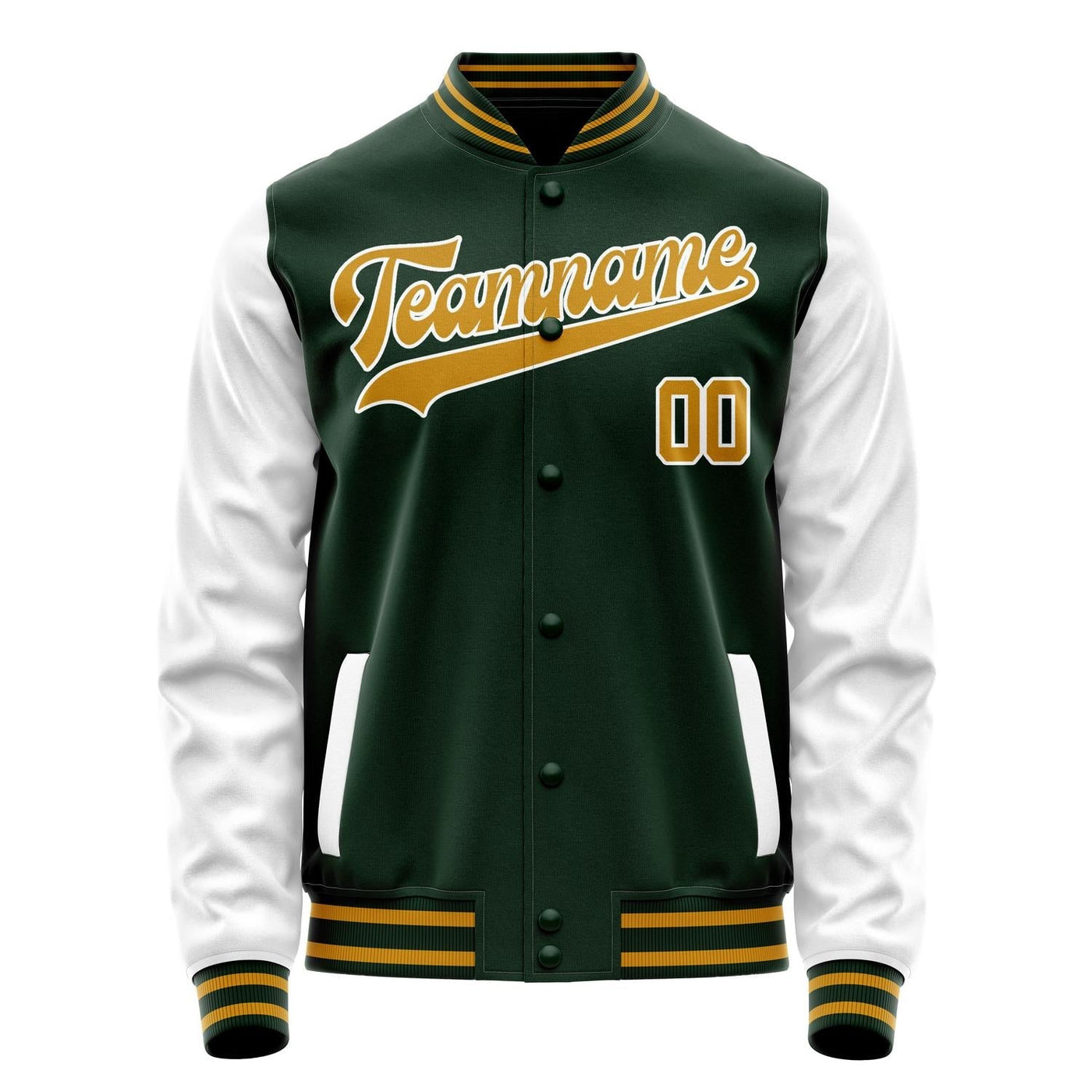 Custom Green Gold Solid Color Varsity Letterman Jacket
