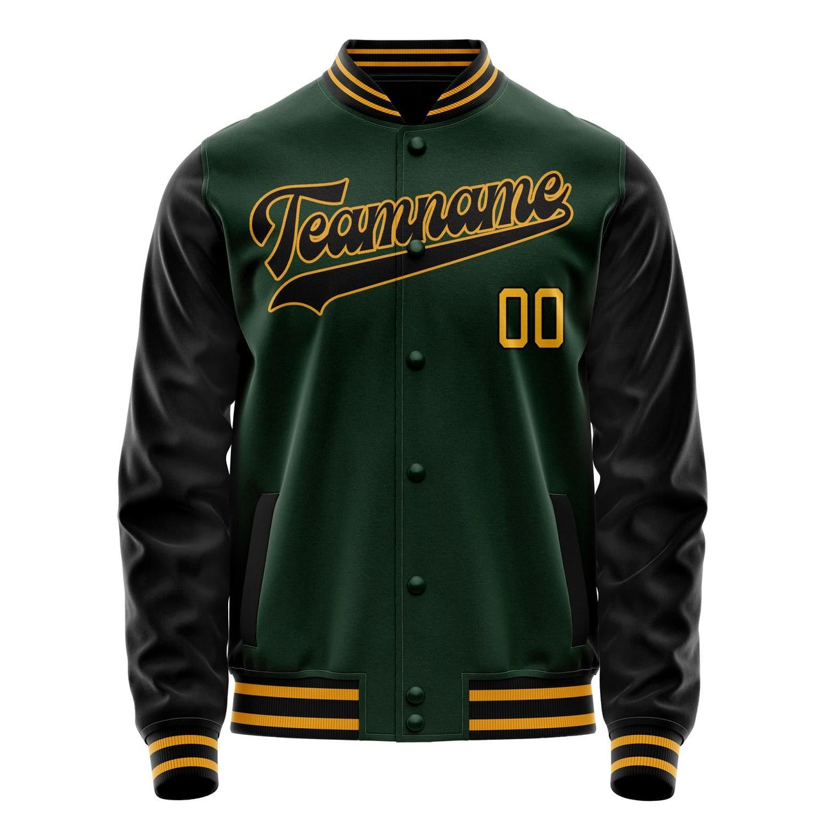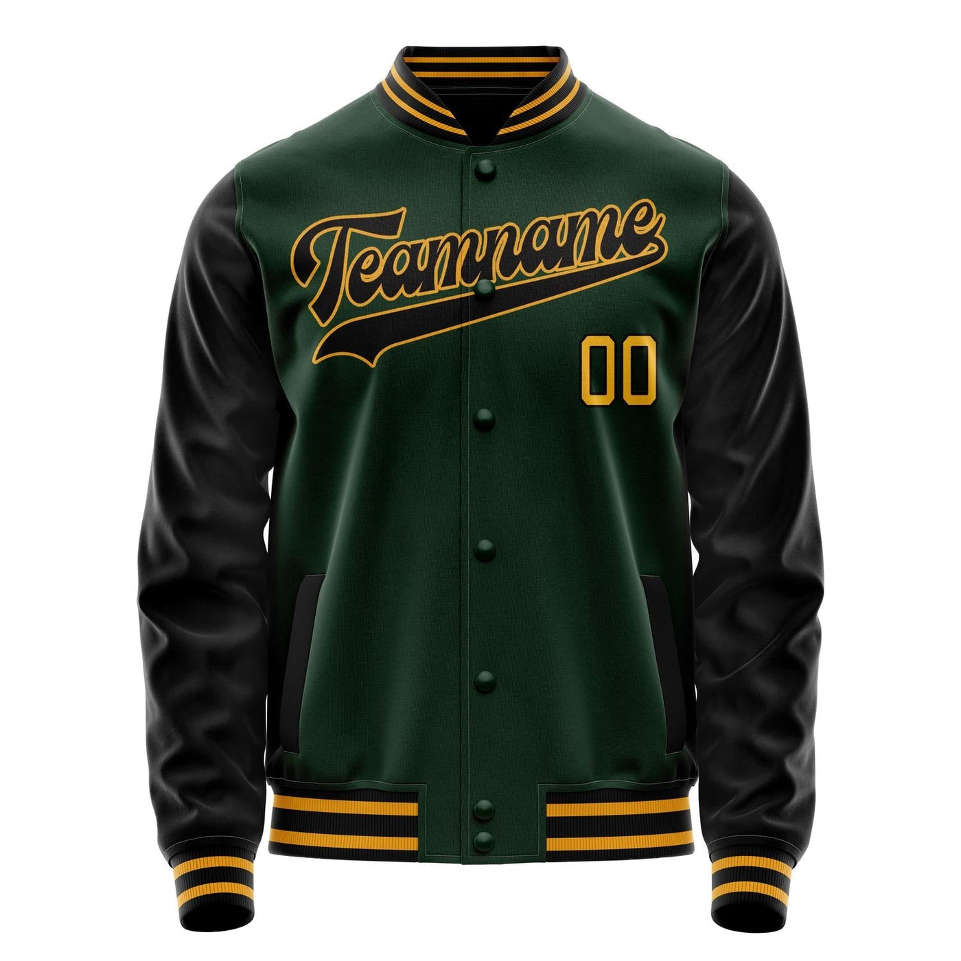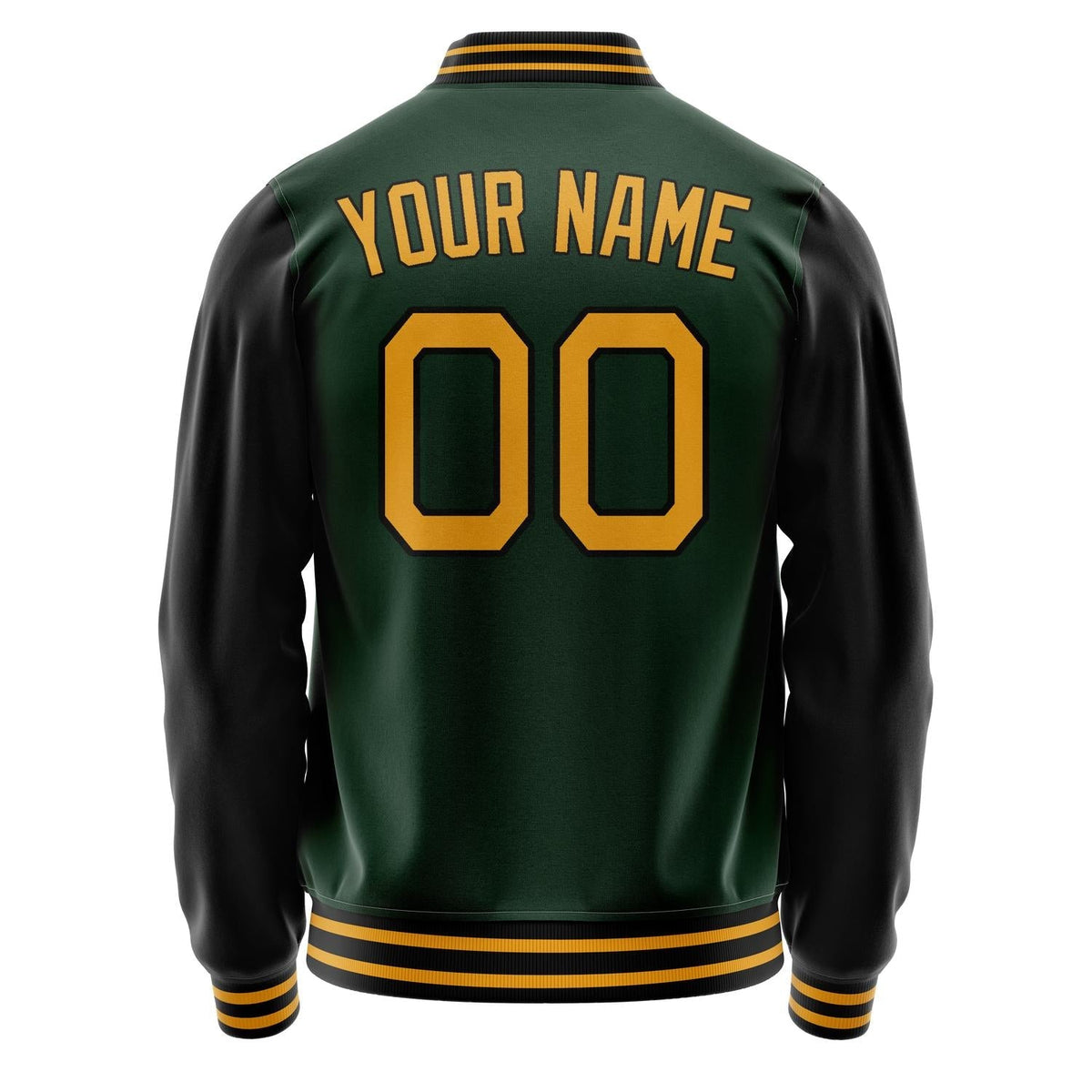 Custom Green Gold Solid Color Varsity Letterman Jacket
