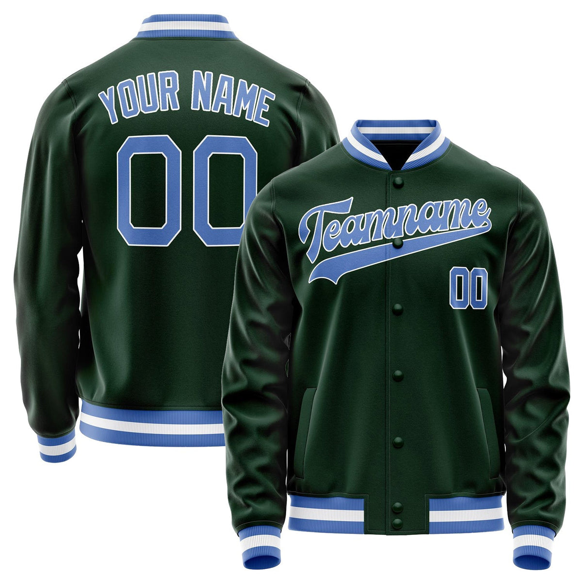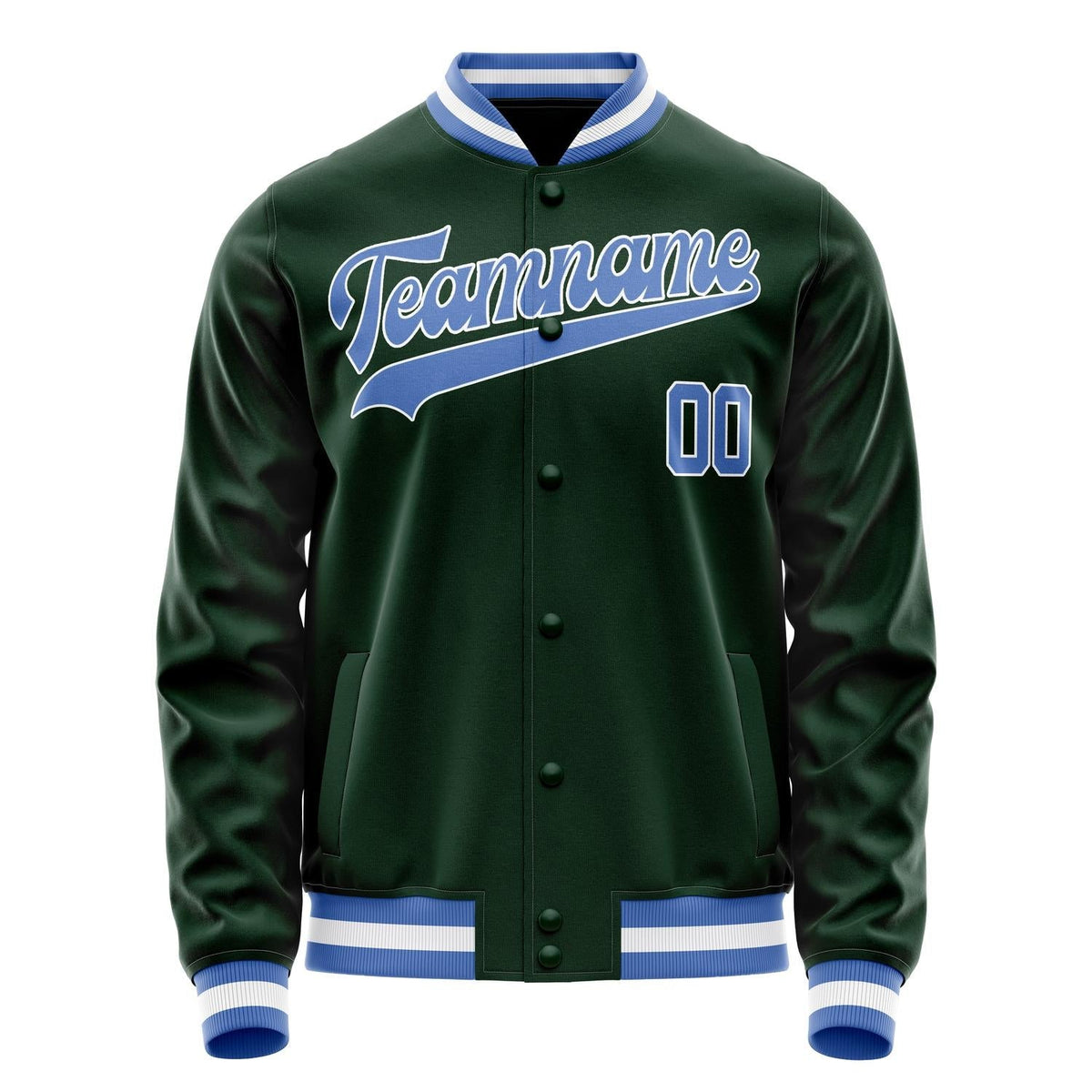 Custom Green Light-Blue Solid Color Varsity Letterman Jacket