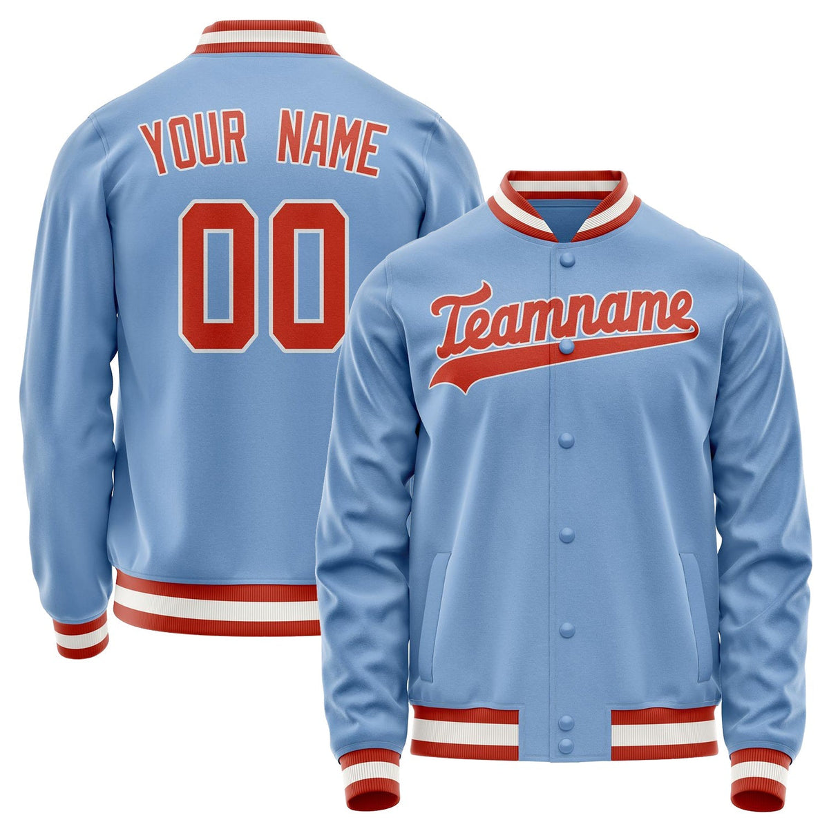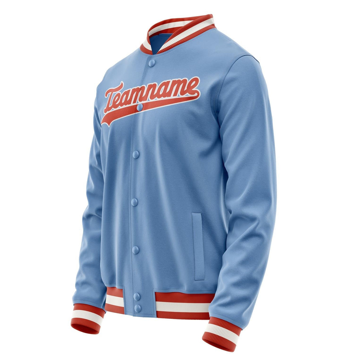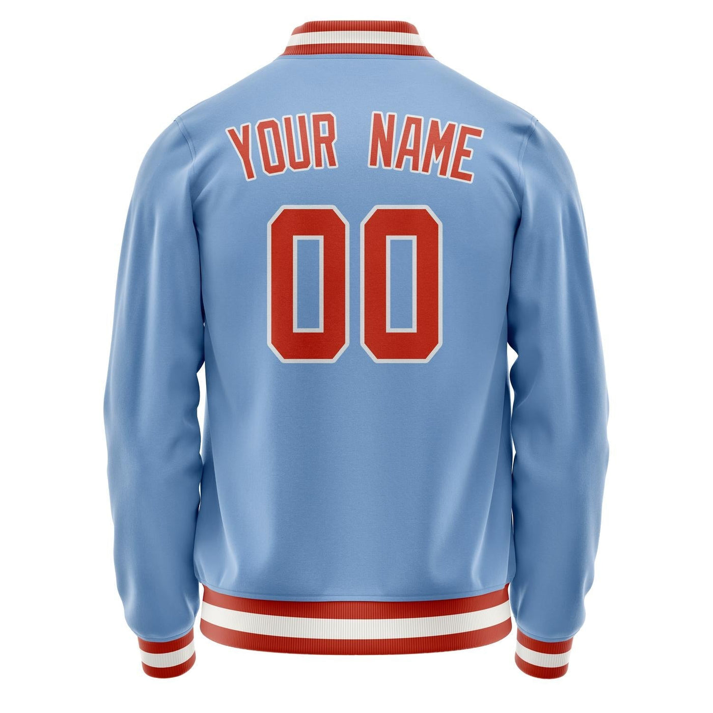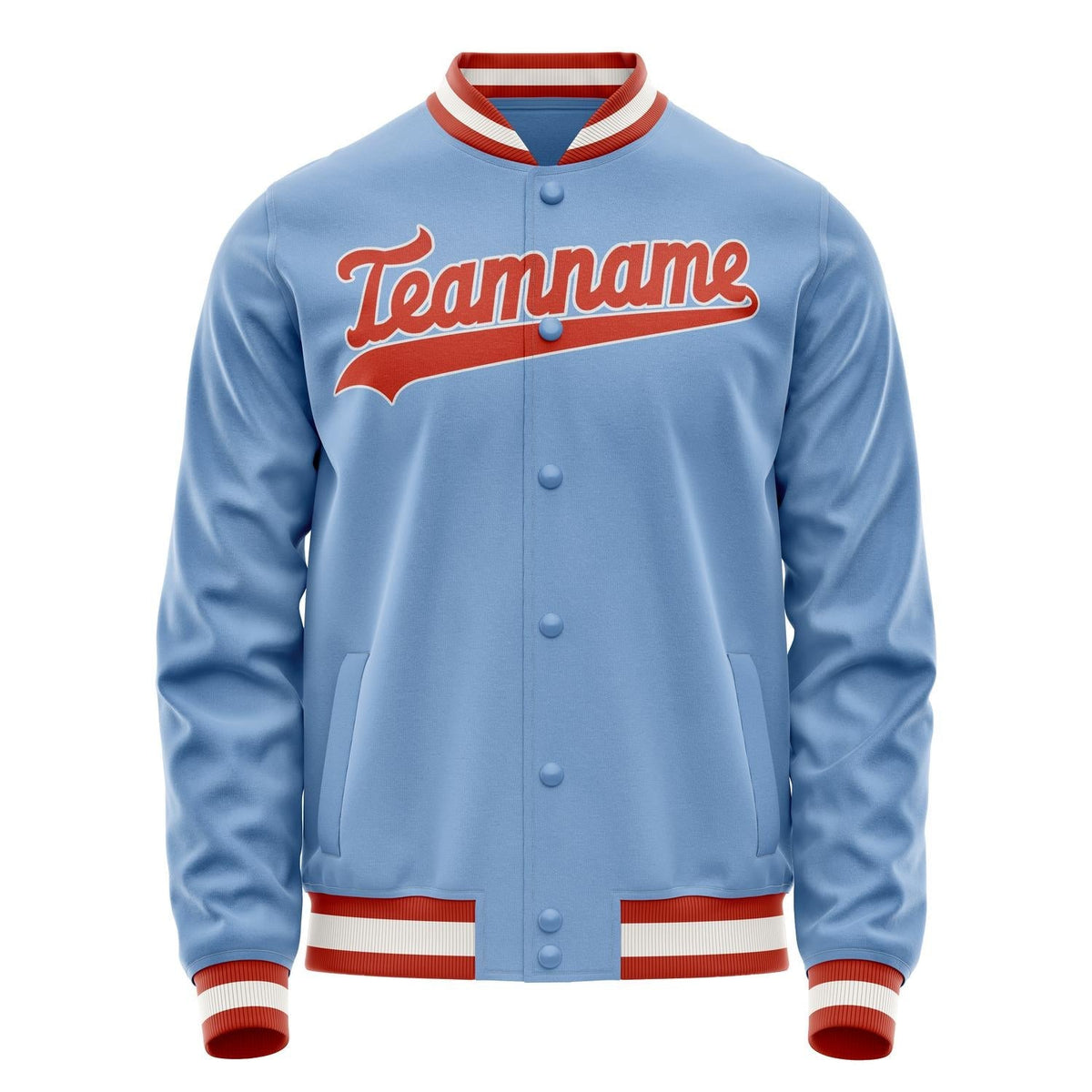 Custom Light-Blue Orange Solid Color Varsity Letterman Jacket