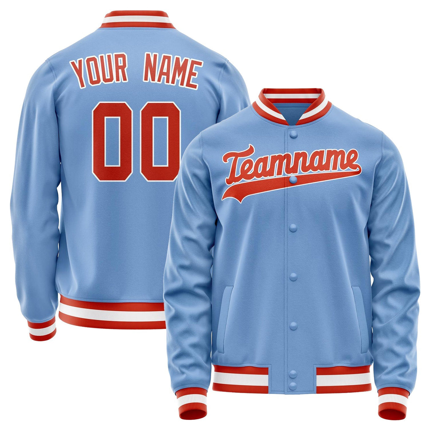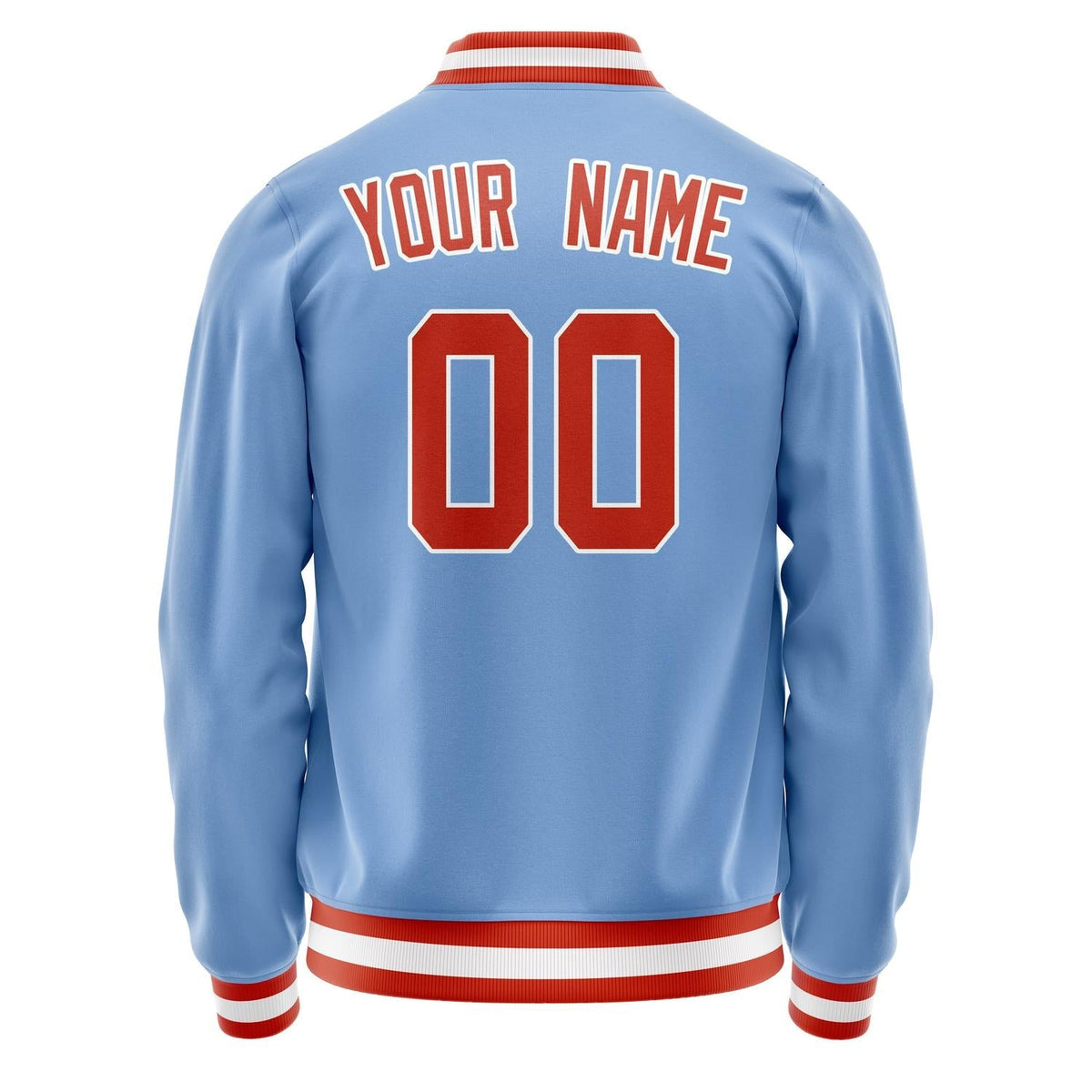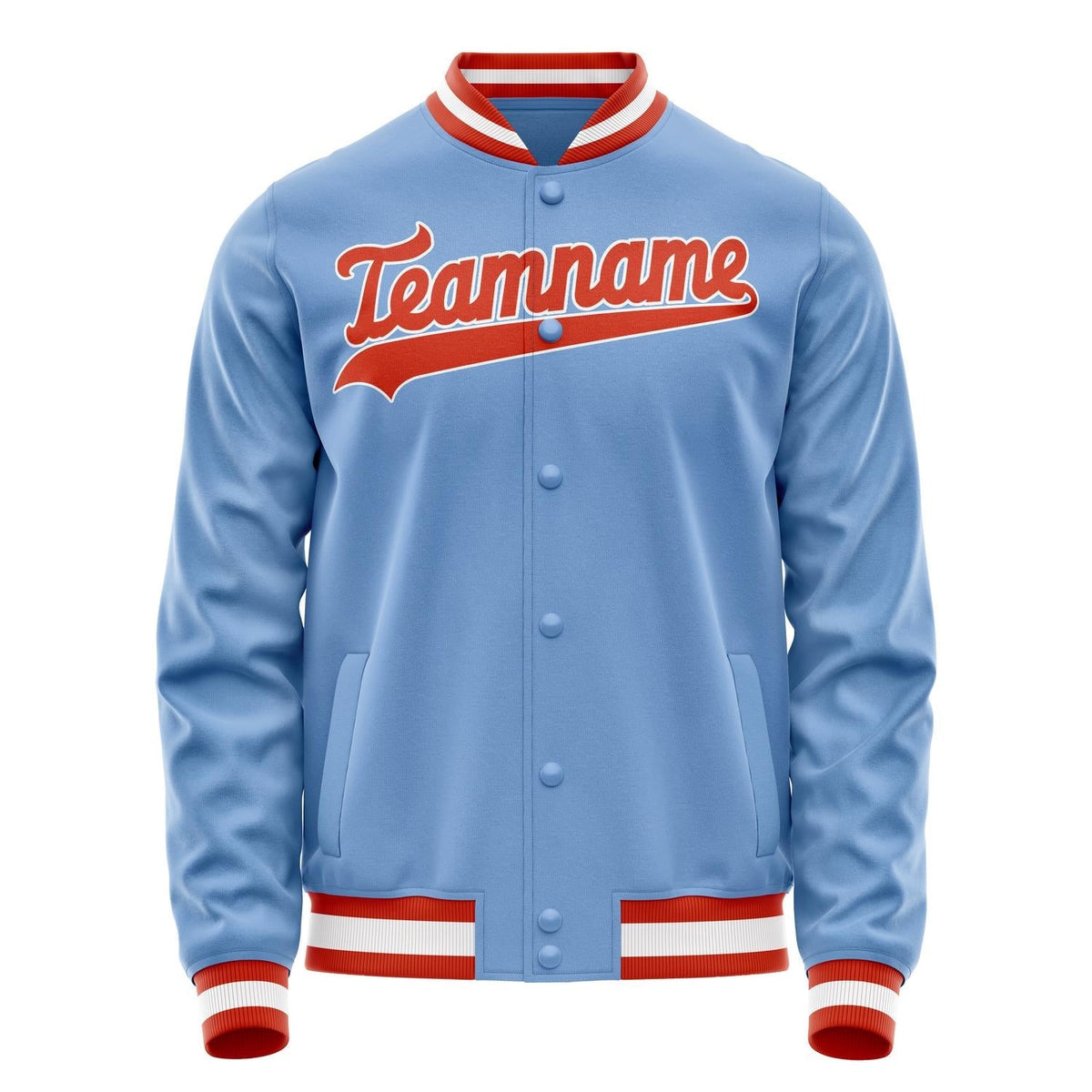 Custom Light-Blue Orange Solid Color Varsity Letterman Jacket