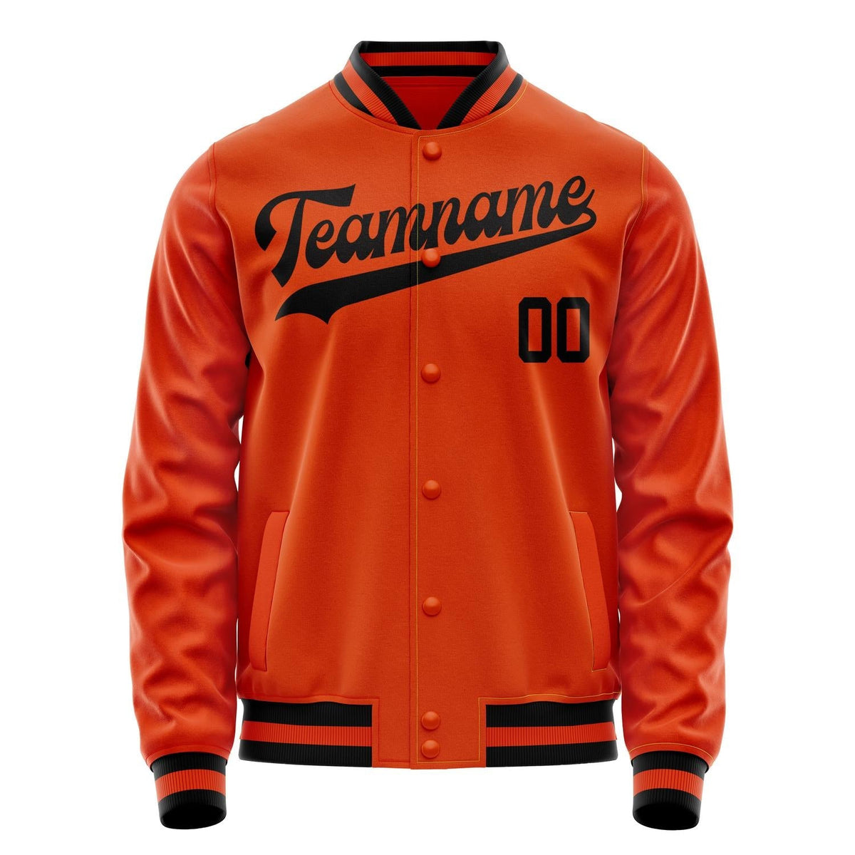 Custom Orange Black Solid Color Varsity Letterman Jacket