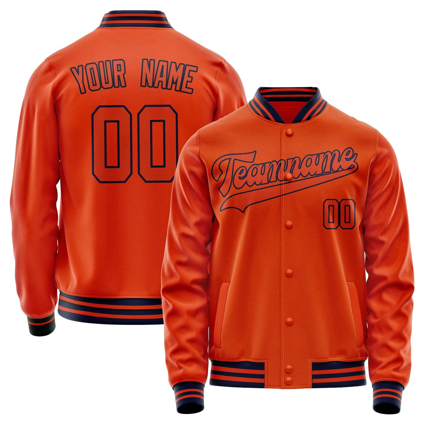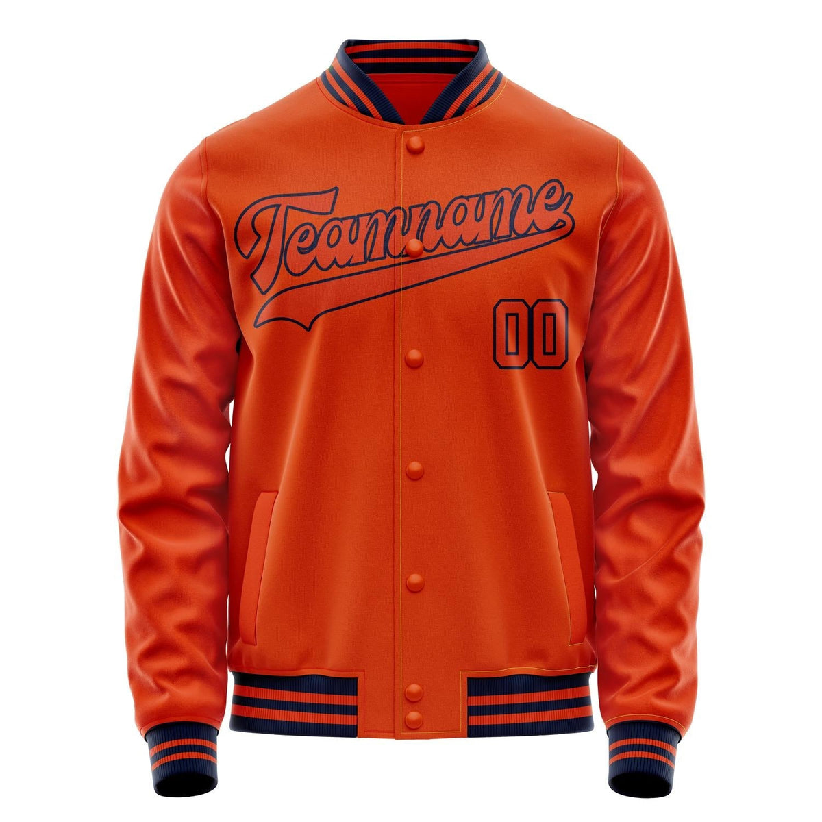 Custom Orange Black Solid Color Varsity Letterman Jacket