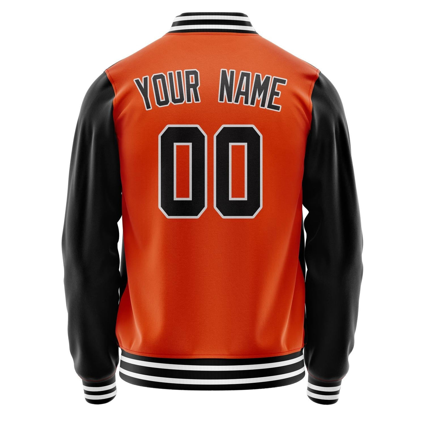 Custom Orange Black Solid Color Varsity Letterman Jacket