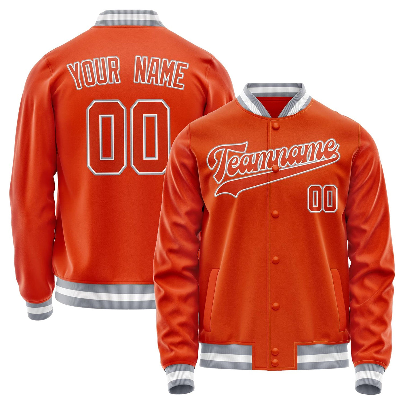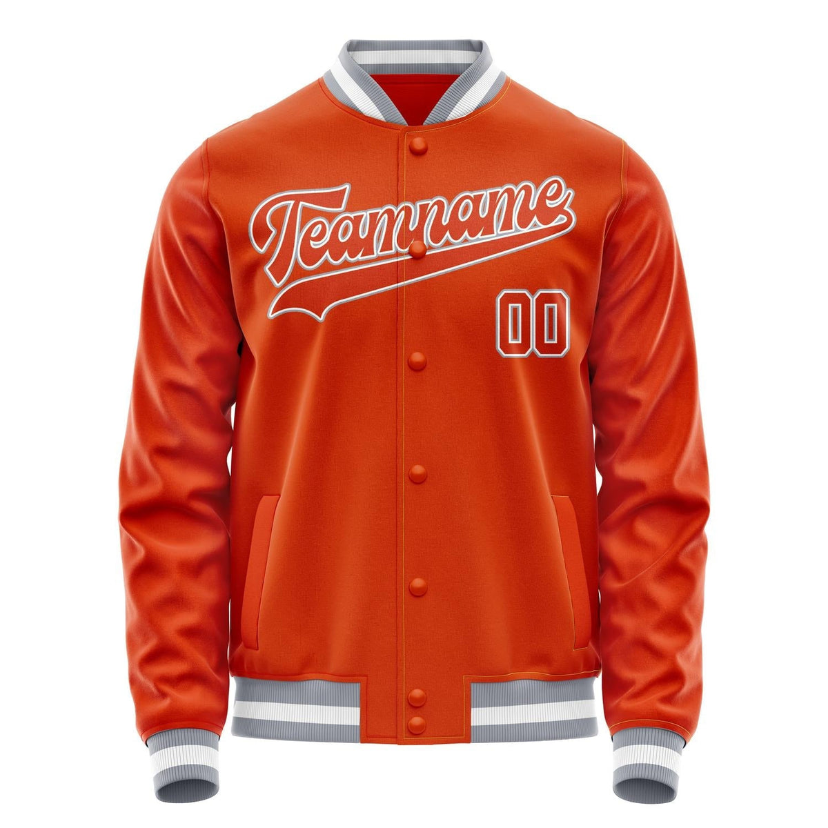 Custom Orange Gray Solid Color Varsity Letterman Jacket