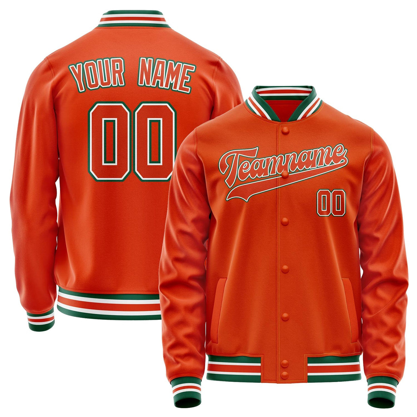 Custom Orange White Solid Color Varsity Letterman Jacket
