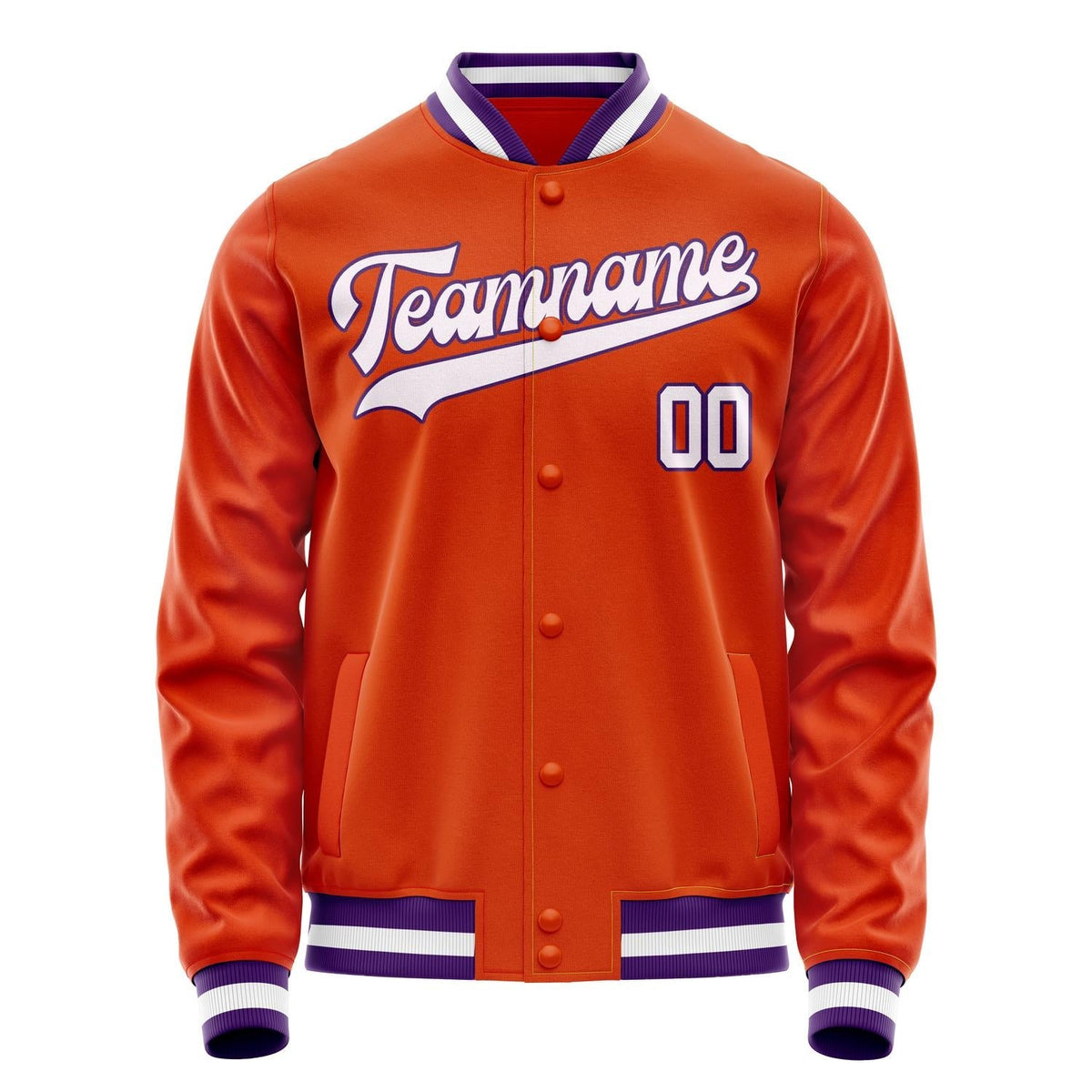 Custom Orange White Solid Color Varsity Letterman Jacket