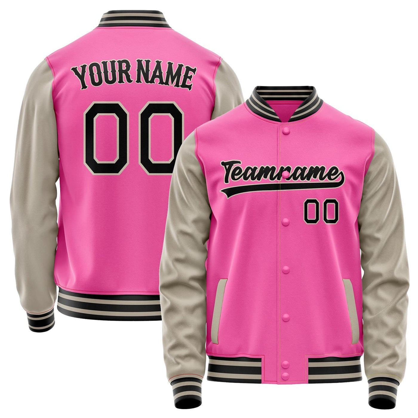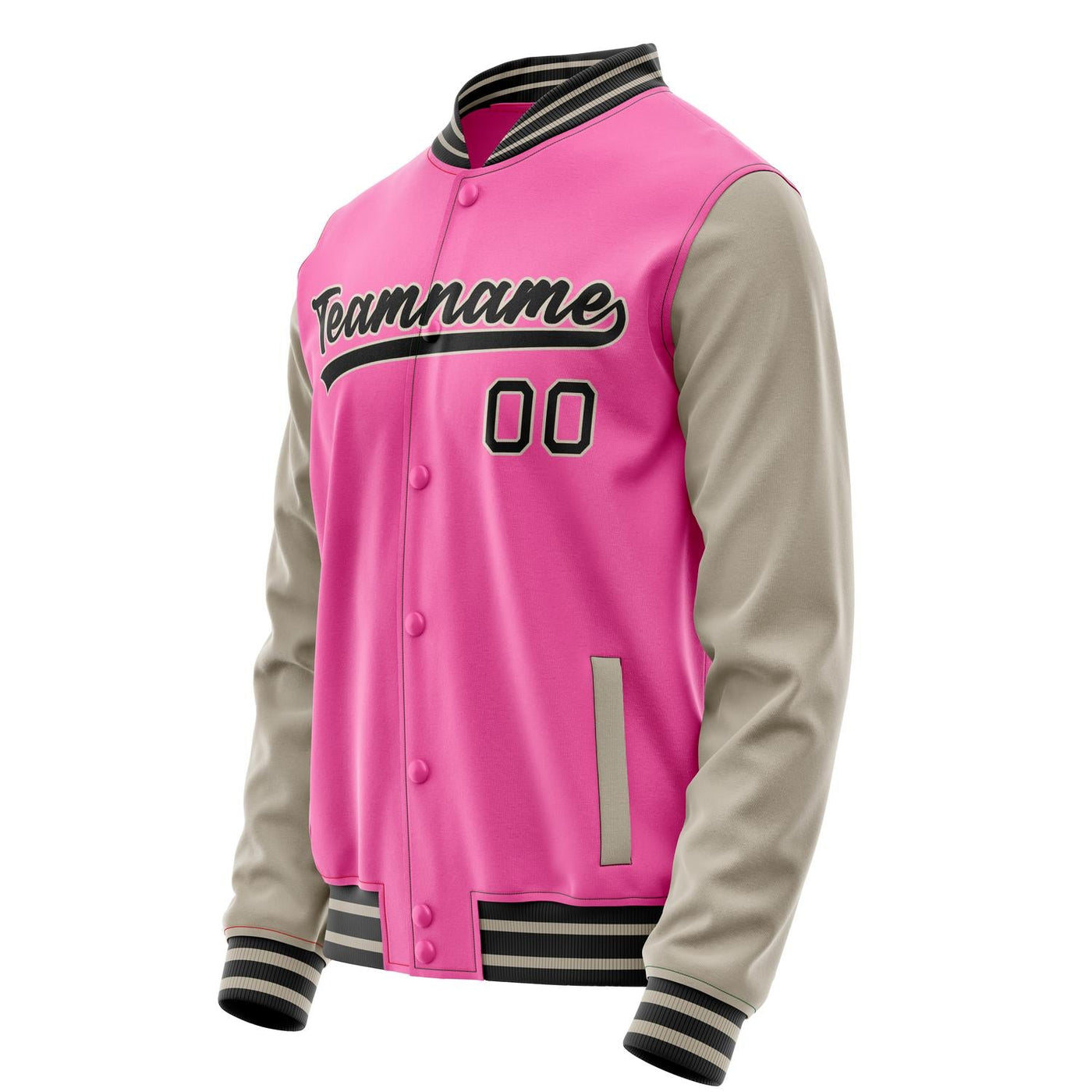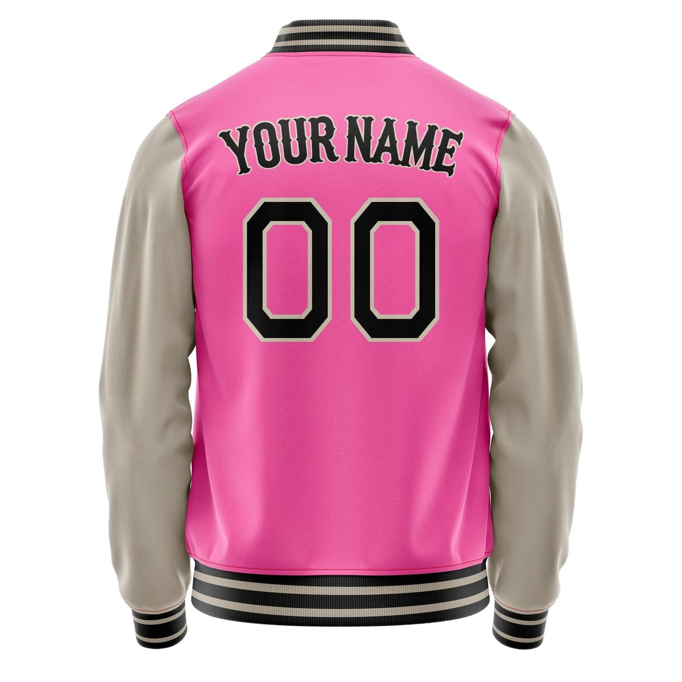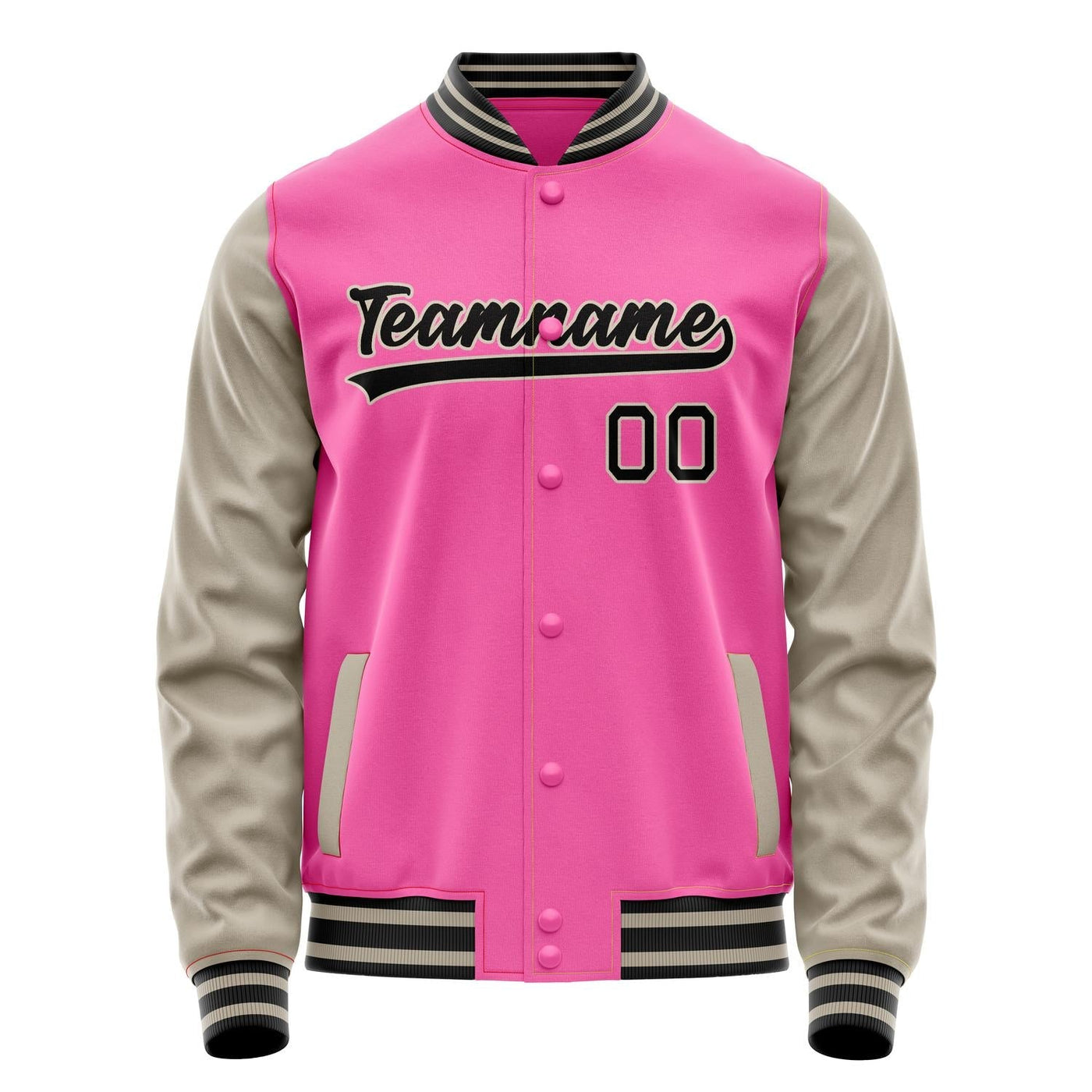 Custom Pink Cream Solid Color Varsity Letterman Jacket