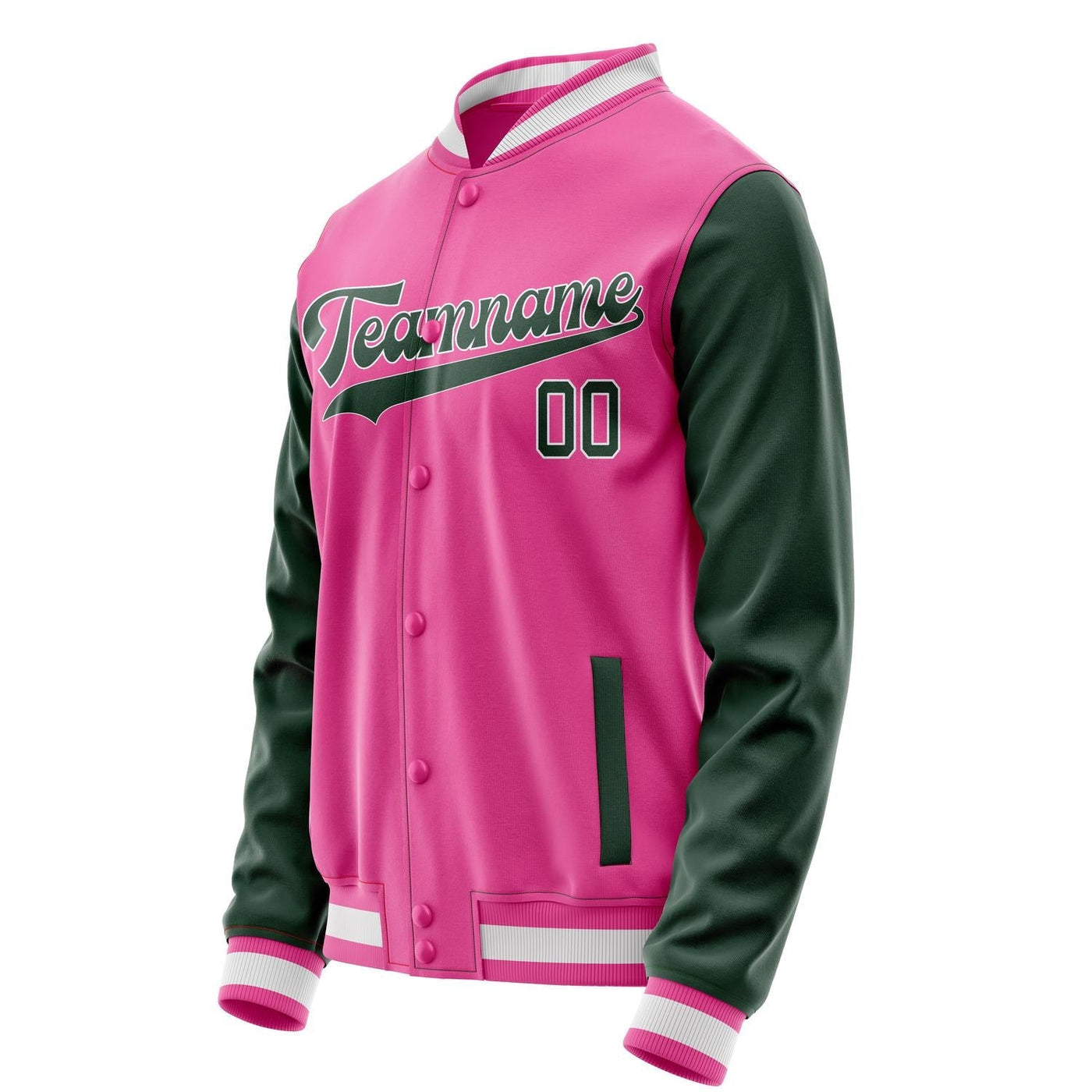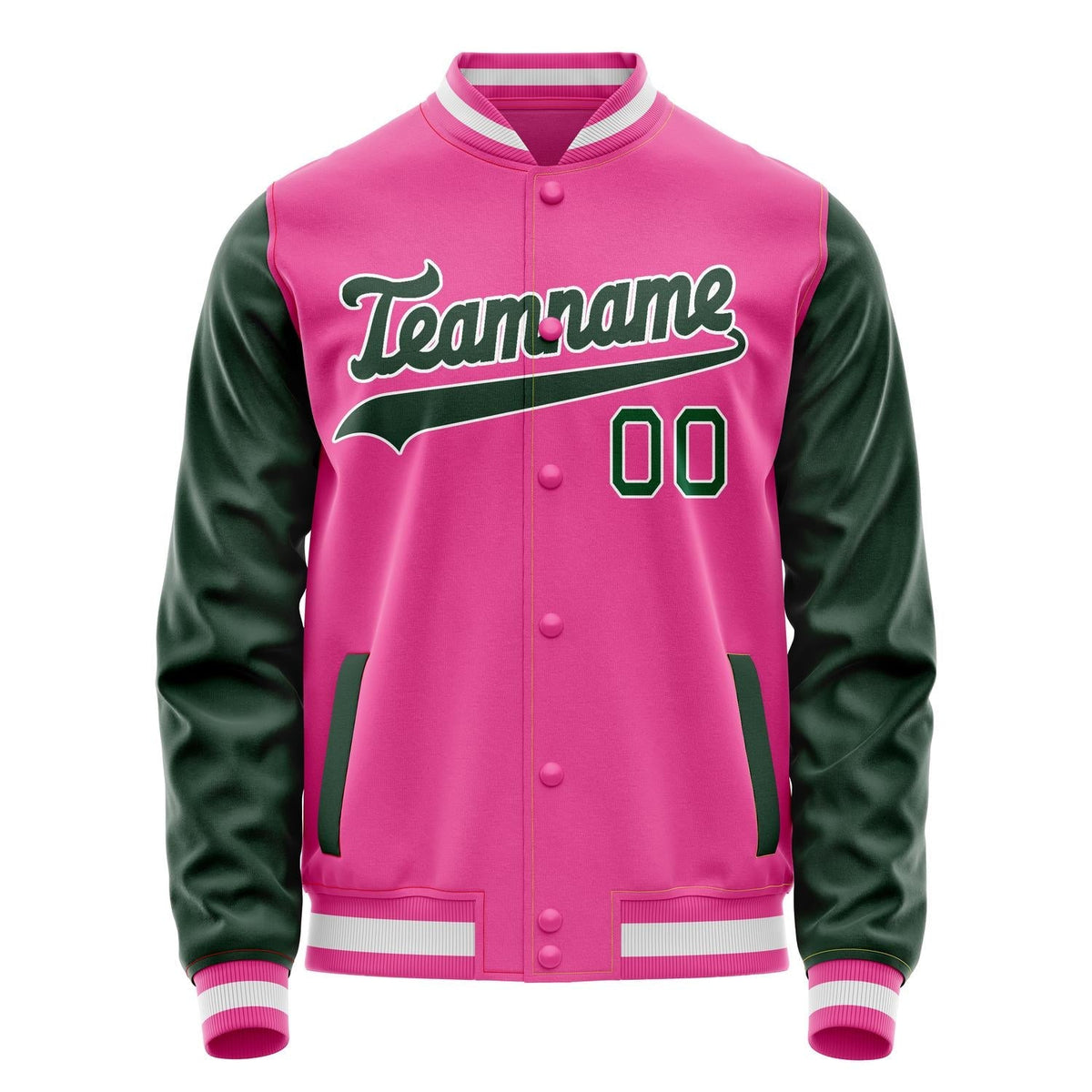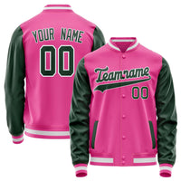 Custom Pink Kelly-Green Solid Color Varsity Letterman Jacket