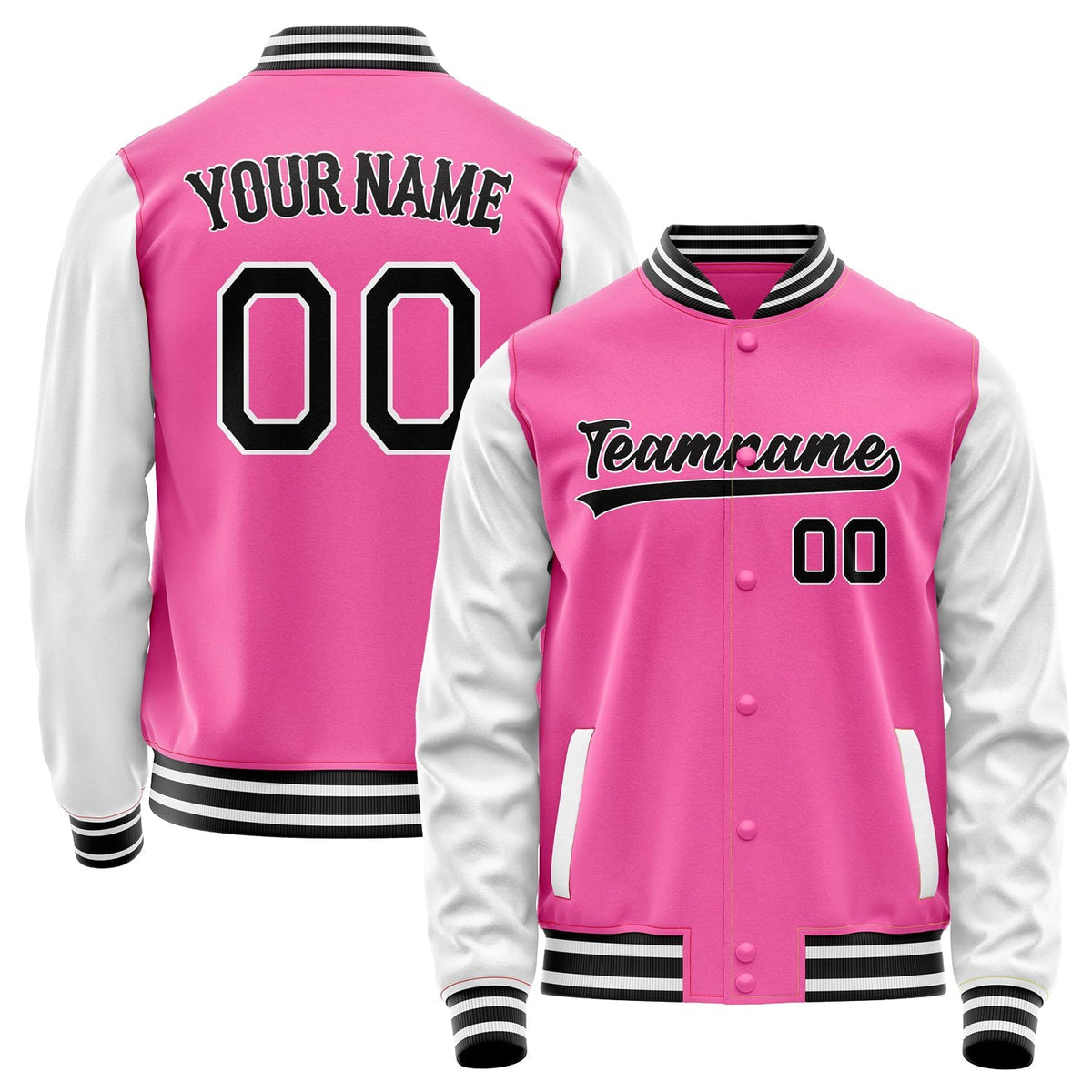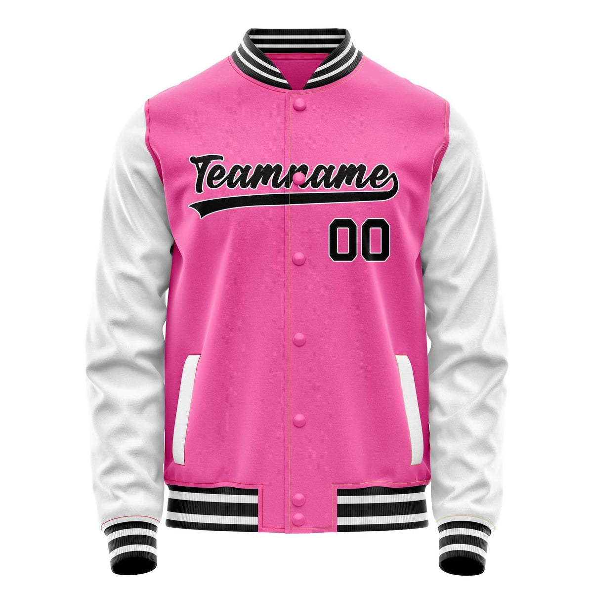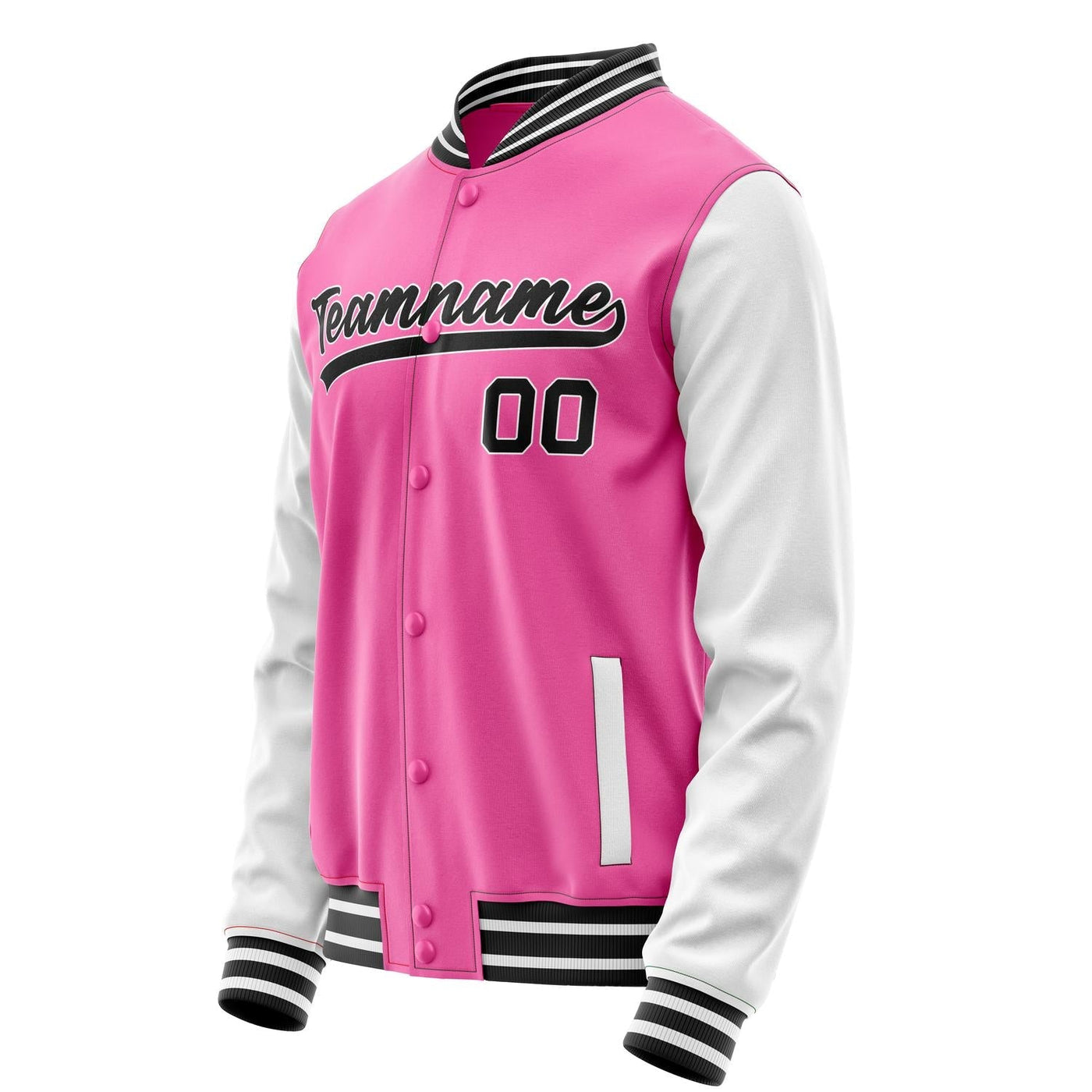 Custom Pink White Solid Color Varsity Letterman Jacket