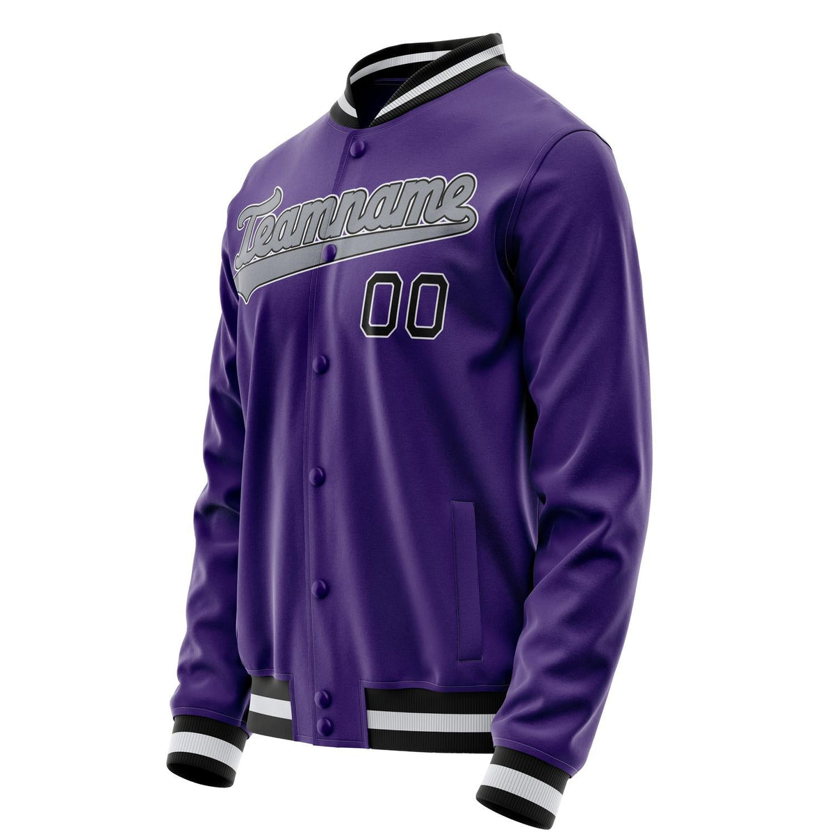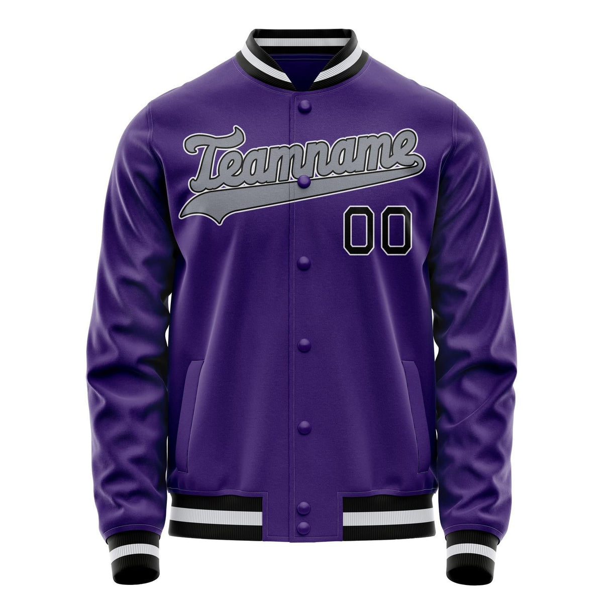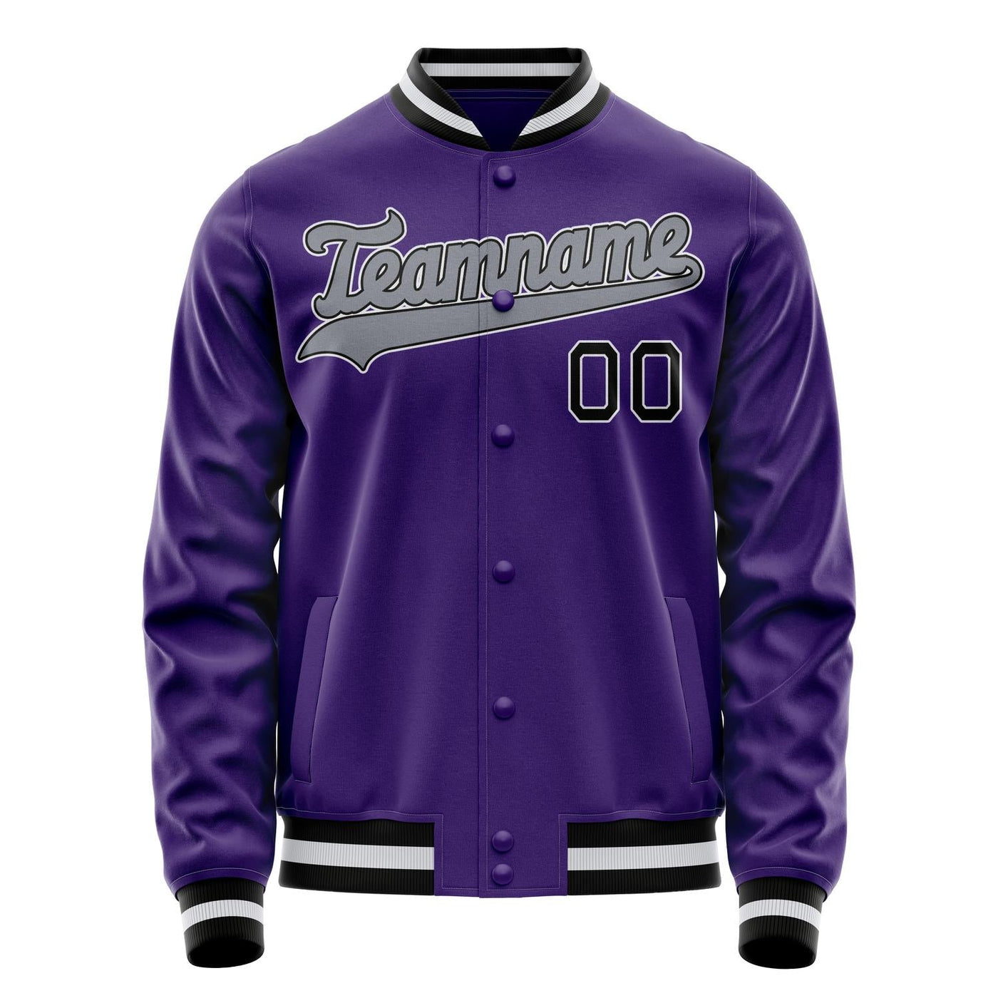 Custom Purple Black Solid Color Varsity Letterman Jacket