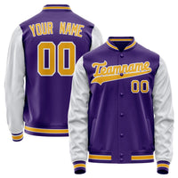 Custom Purple White Solid Color Varsity Letterman Jacket